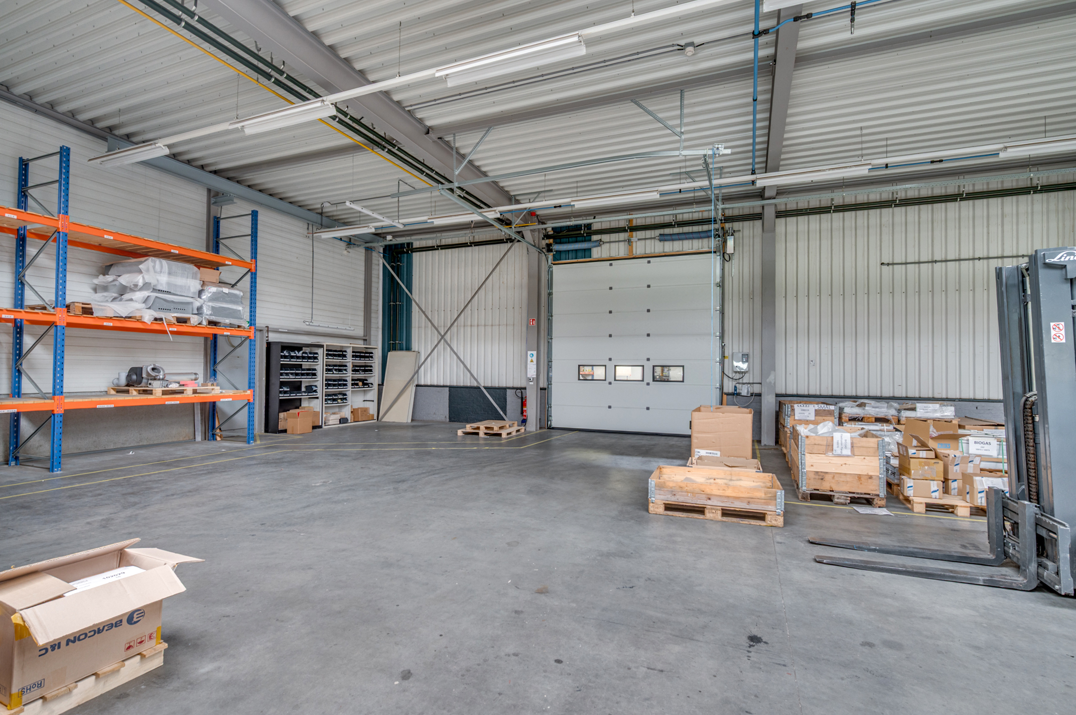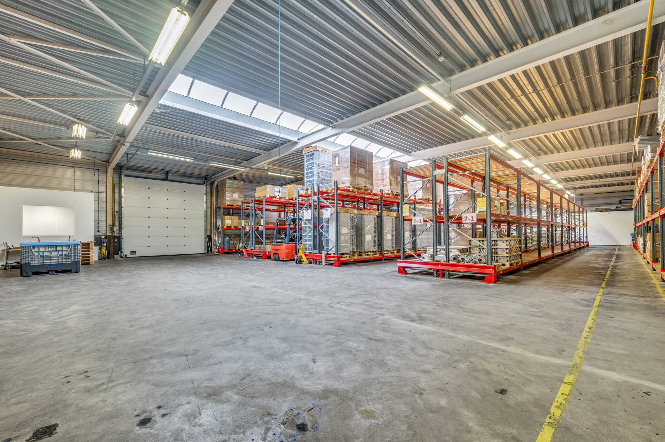 Hal I: 2 heaters, 2 elektrisch bediende rolpoorten en lichtstraten.