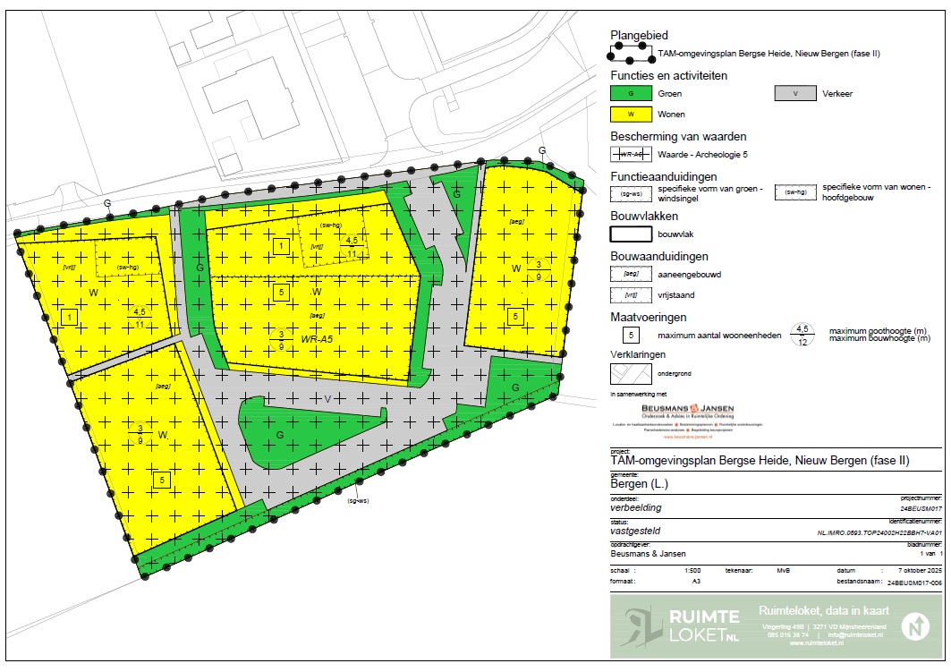 Aan de locatie Bergse Heide 7 te Bergen wordt een nieuwbouwplan met in totaal 15 woningen. Het woonhof behelst 10 levensloopwoningen, 5 starterswoningen en 2 vrije sector kavels. Daarnaast is er voldoende ruimte voor parkeergelegenheid, groen en waterberging.In samenwerking met Van Plan is een stedenbouwkundig ontwerp gemaakt voor dit woonhof. Het stedenbouwkundige ontwerp voor dit woningbouwplan is geïnspireerd op het erfwonen. Om aan te sluiten bij dit erfwonen streven we in de architectuur en de openbare ruimte een landelijke sfeer na, ontworpen vanuit een eigentijdse visie. Dit past goed bij de Bergse Heide en bij deze specifieke locatie, grenzend aan het buitengebied.