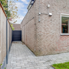 Keurig aangelegde voor-en achtertuin (’24). De voortuin is onderhoudsvrij aangelegd met beklinkerde oprit en voorzien van plantenbakken.