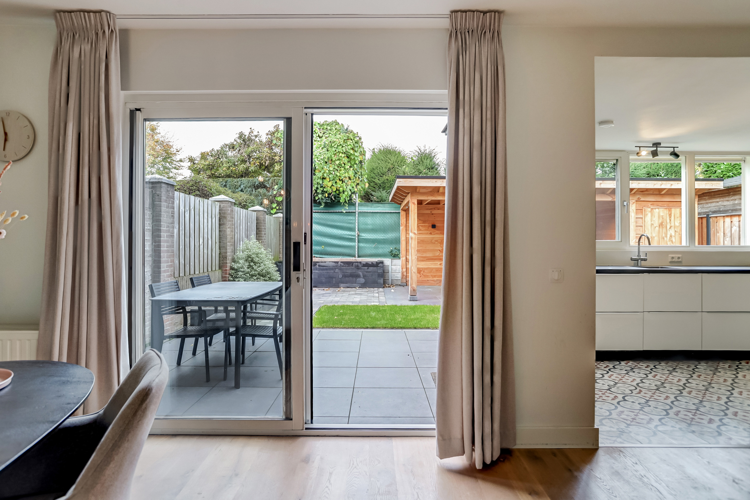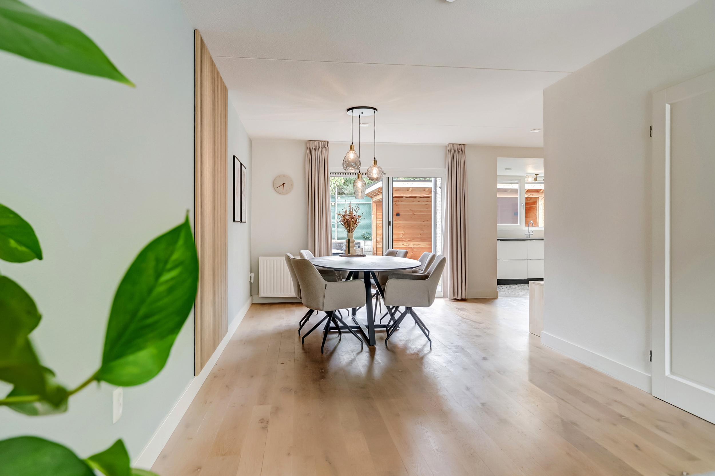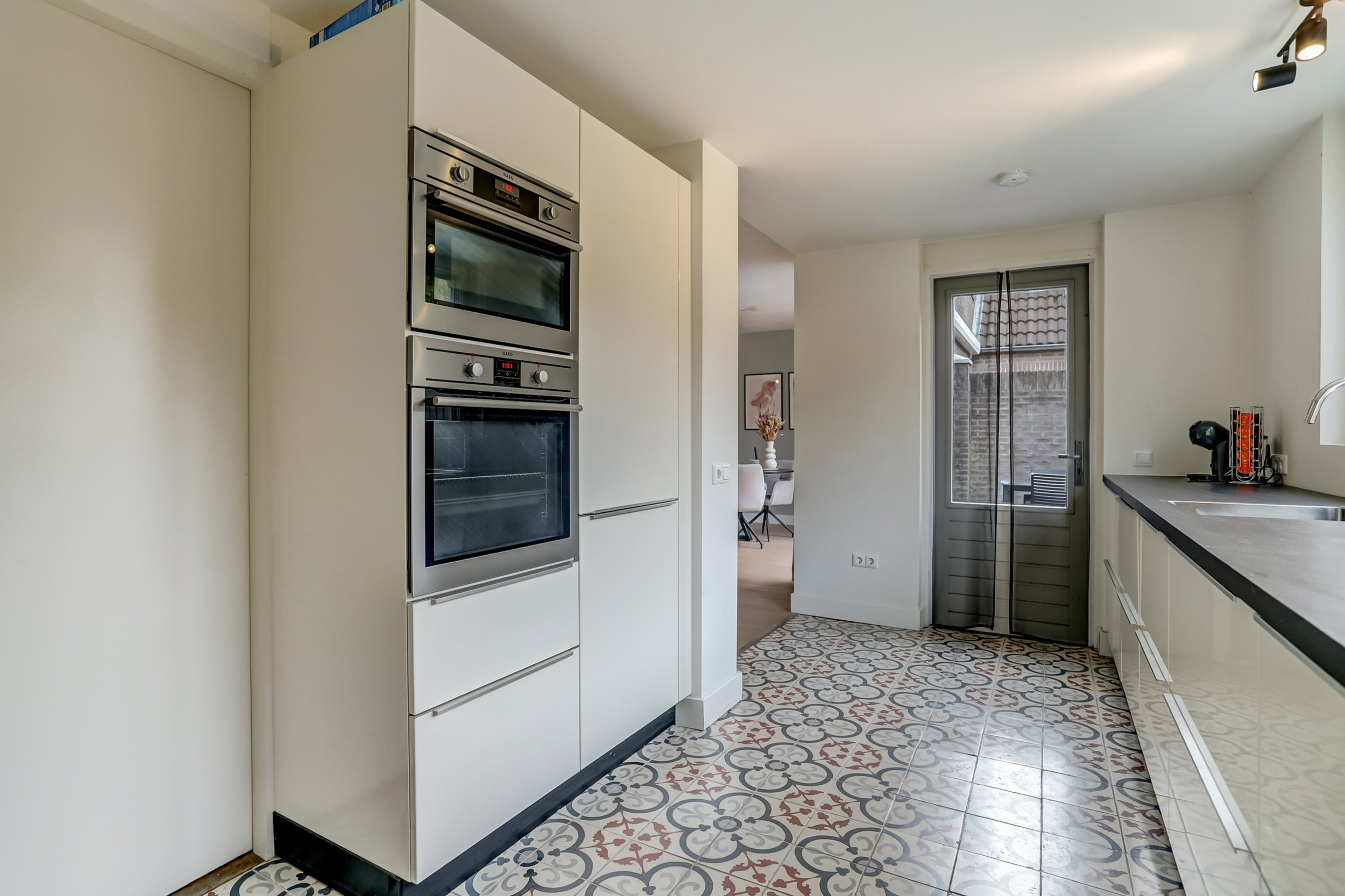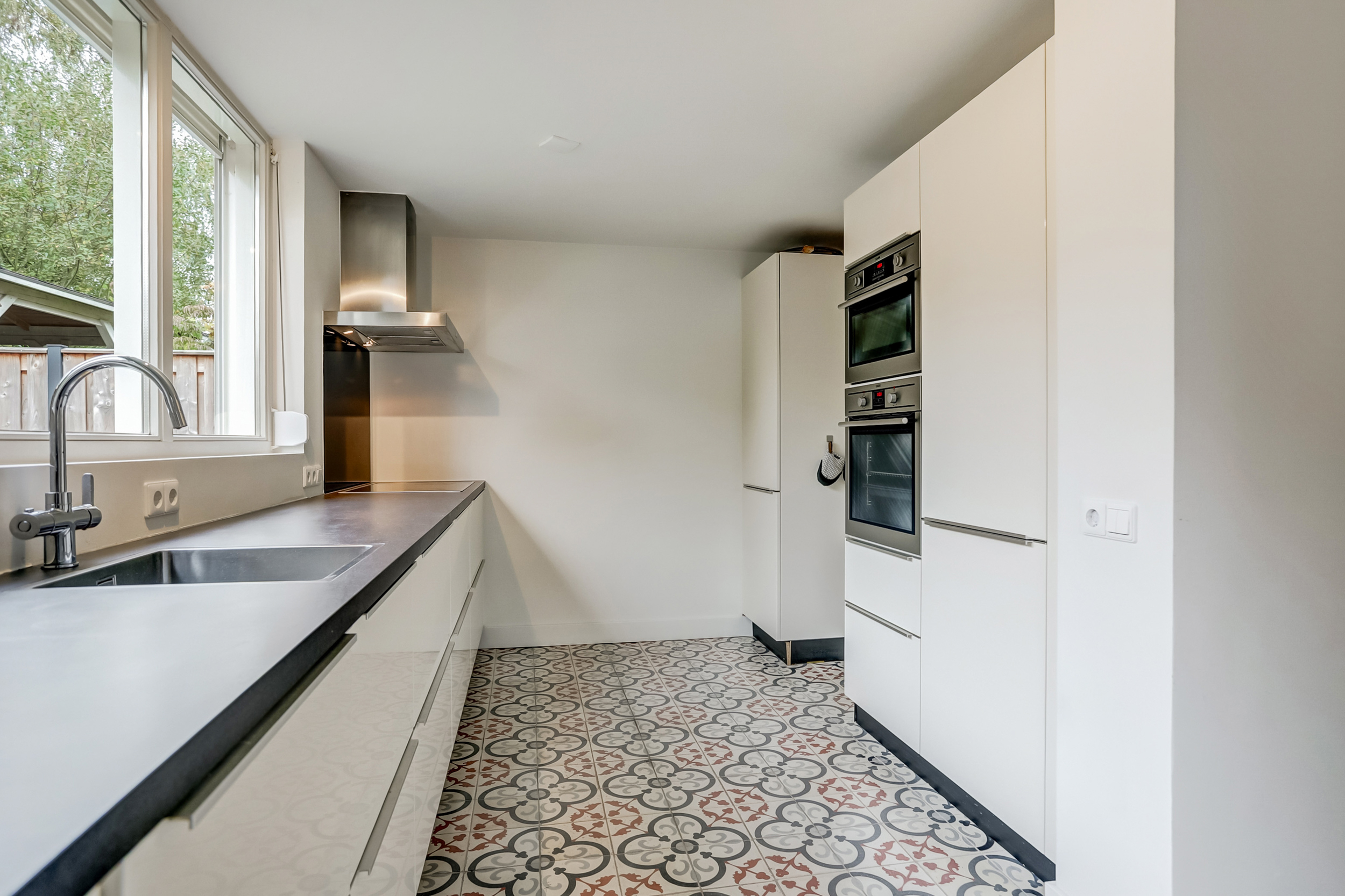 Ruime zitkamer aan de voorzijde, sfeervol, licht en modern geheel! De eetkamer aan de achterzijde staat in verbinding met de keuken en is voorzien van pui naar het terras en de tuin. Lichte keuken met ruim werkblad en uitzicht op de tuin. De keuken (2016) is voorzien van Portugese tegelvloer met vloerverwarming, vele bergruimte en diverse inbouwapparatuur; inductiekookplaat, afzuigkap, spoelbak, combi-oven, oven en koelkast.