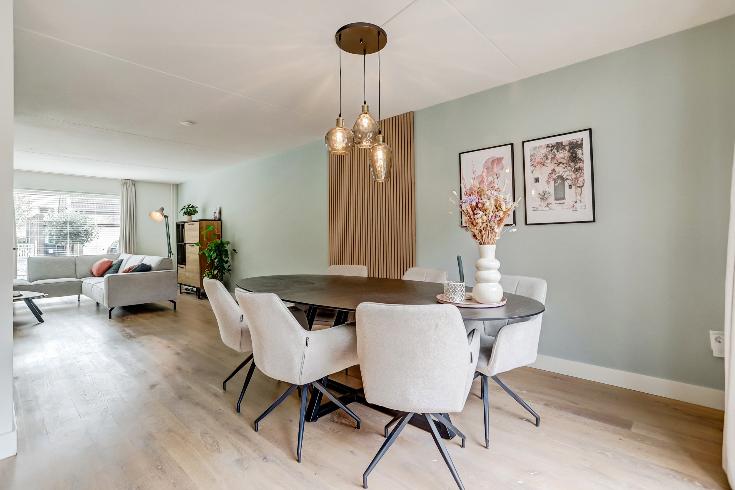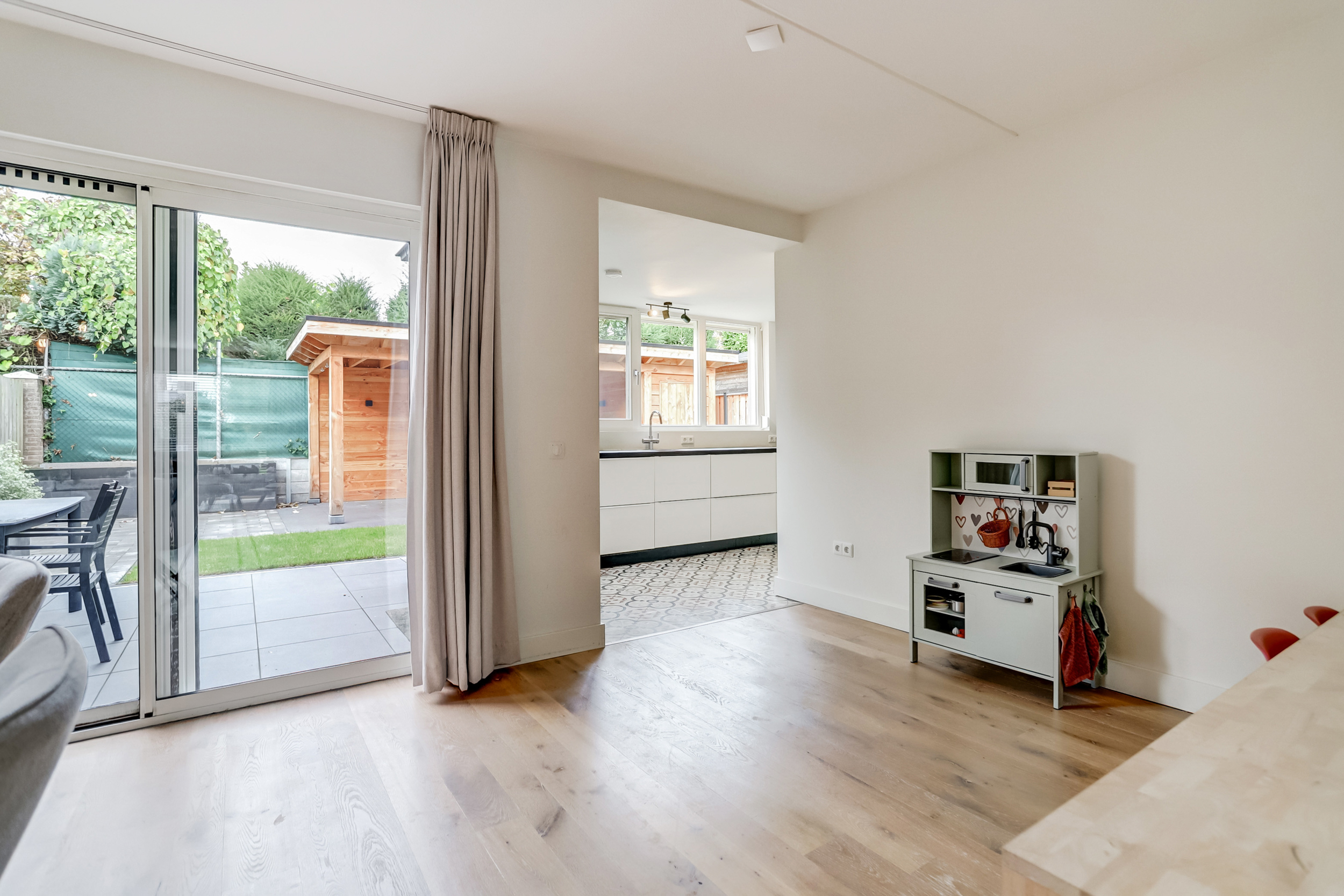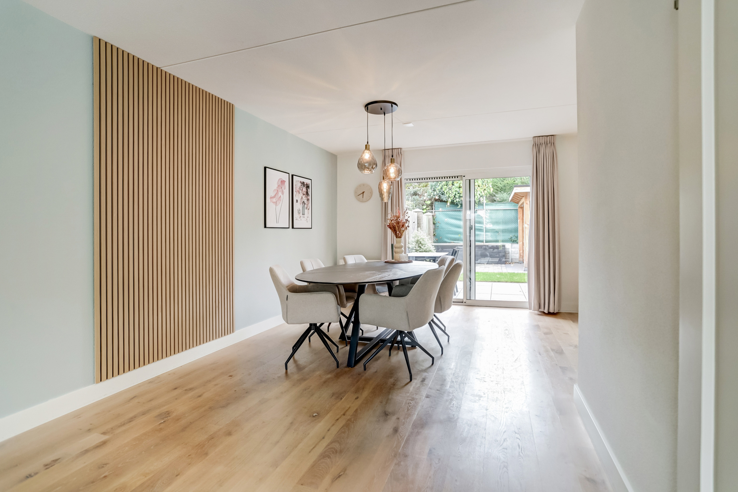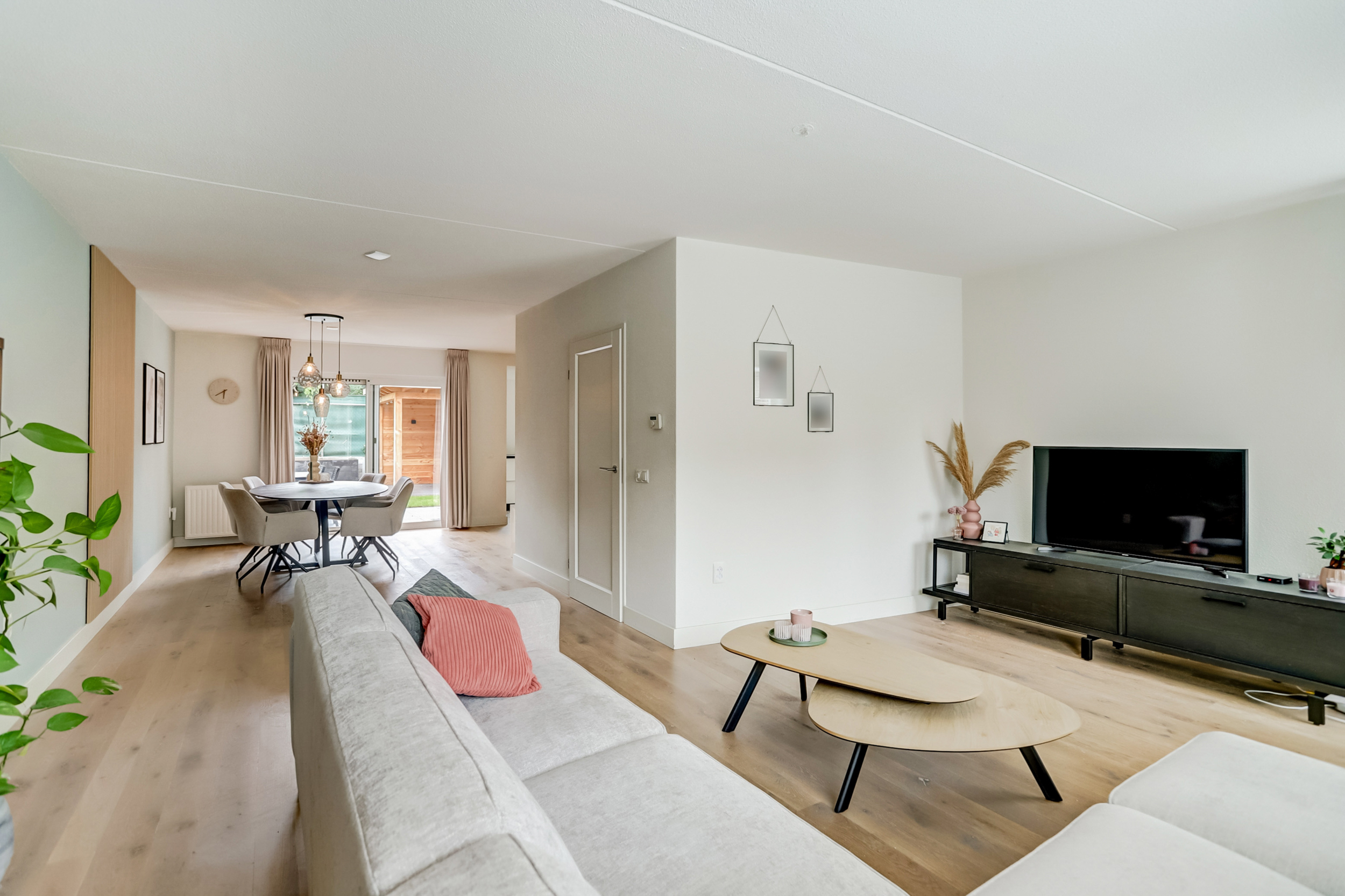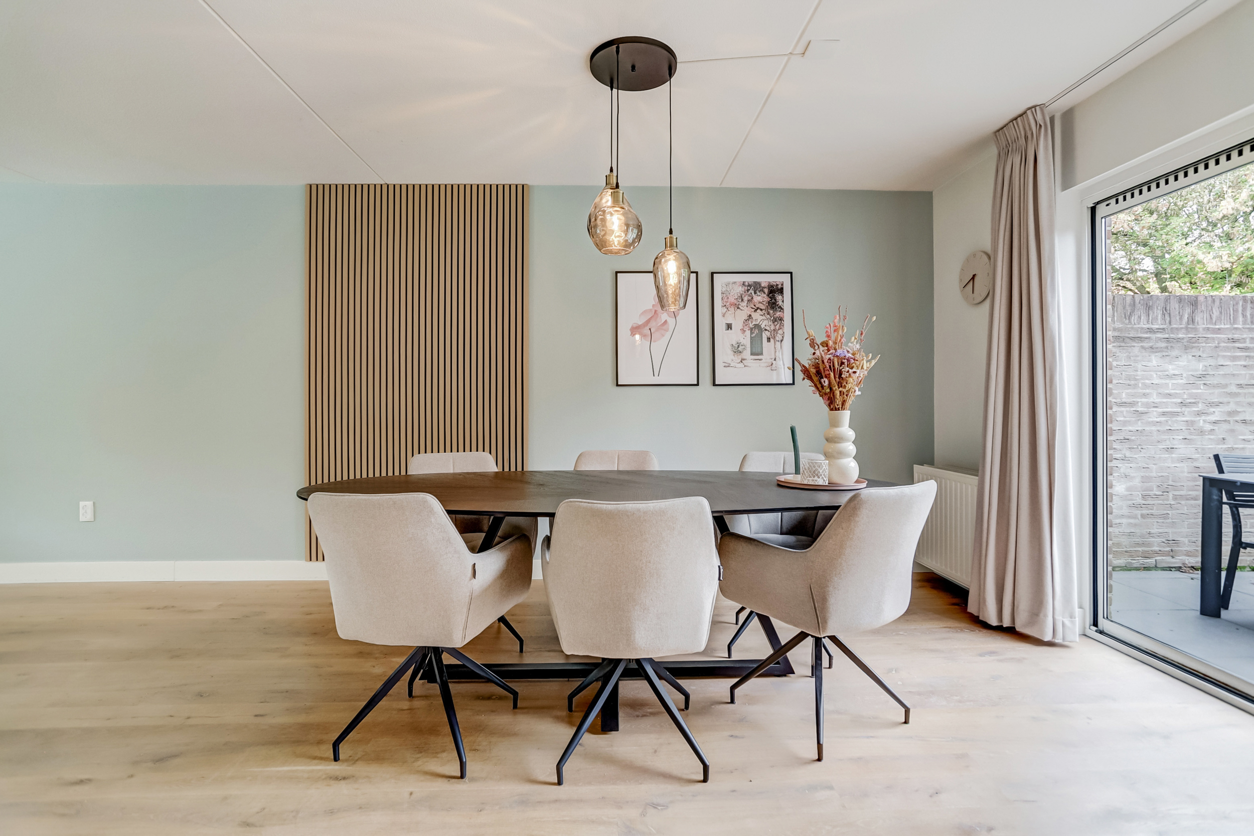 Ruime zitkamer aan de voorzijde, sfeervol, licht en modern geheel! De eetkamer aan de achterzijde staat in verbinding met de keuken en is voorzien van pui naar het terras en de tuin. Lichte keuken met ruim werkblad en uitzicht op de tuin. De keuken (2016) is voorzien van Portugese tegelvloer met vloerverwarming, vele bergruimte en diverse inbouwapparatuur; inductiekookplaat, afzuigkap, spoelbak, combi-oven, oven en koelkast.