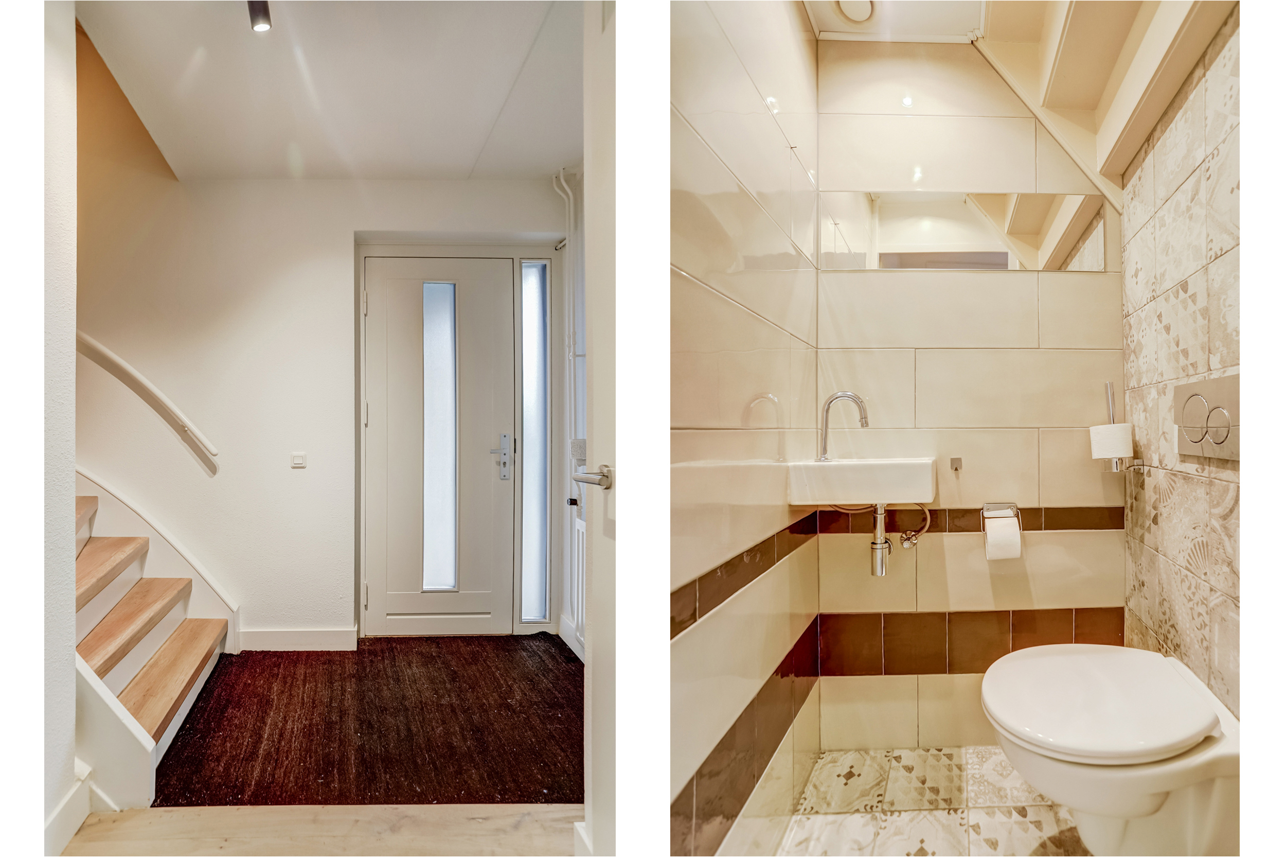 Portiek, entree, meterkast (glasvezel), toilet met fonteintje (’21) en trapopgang.