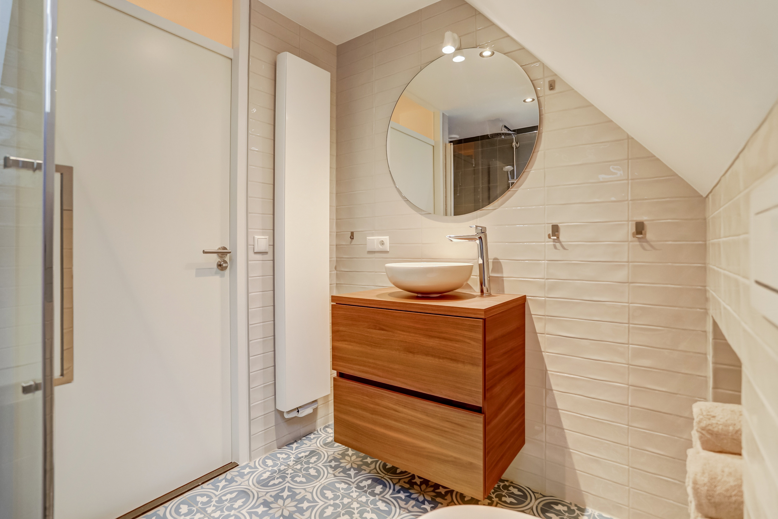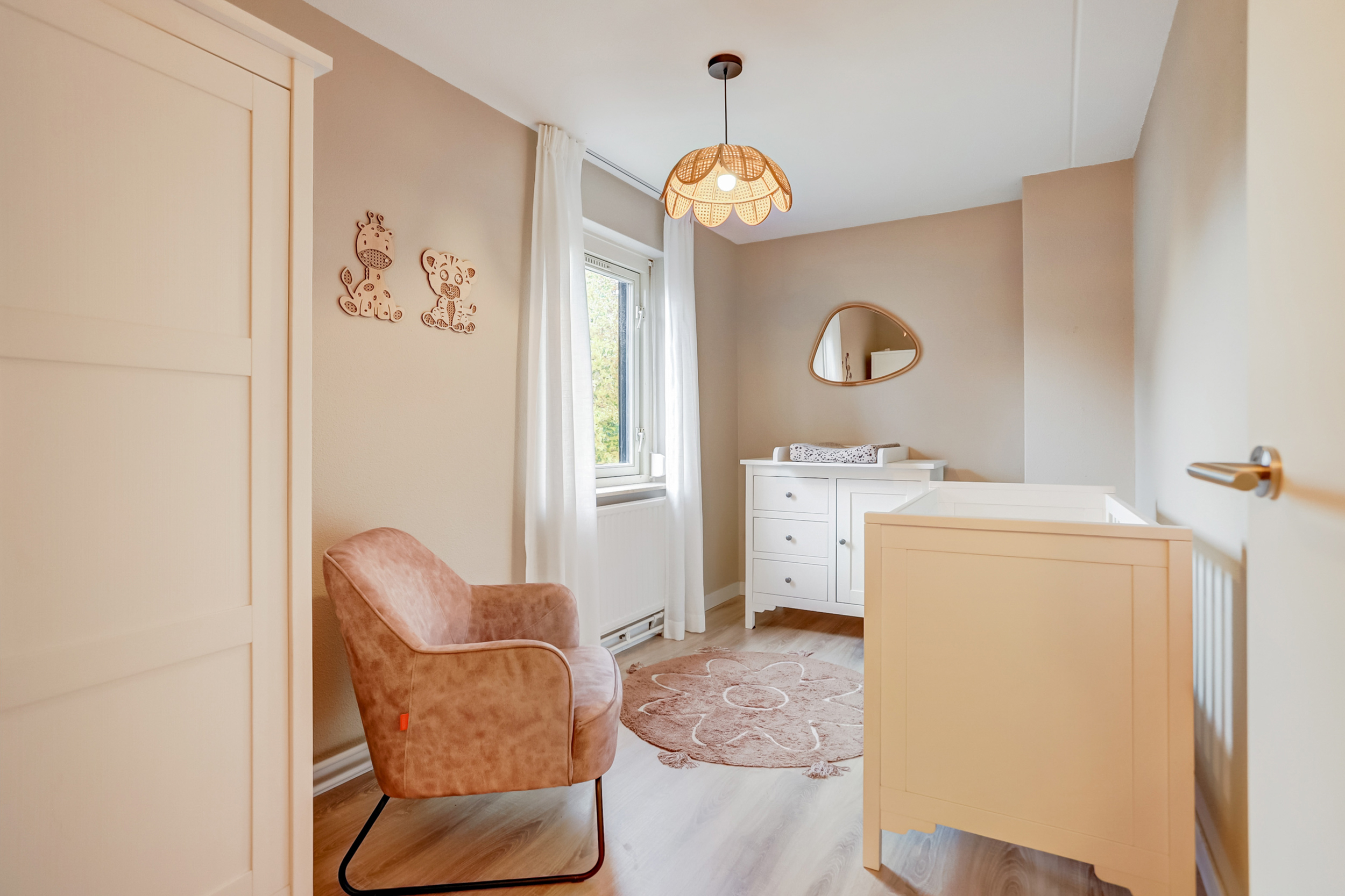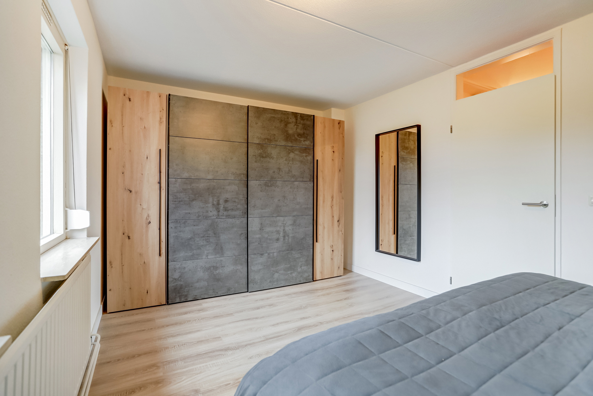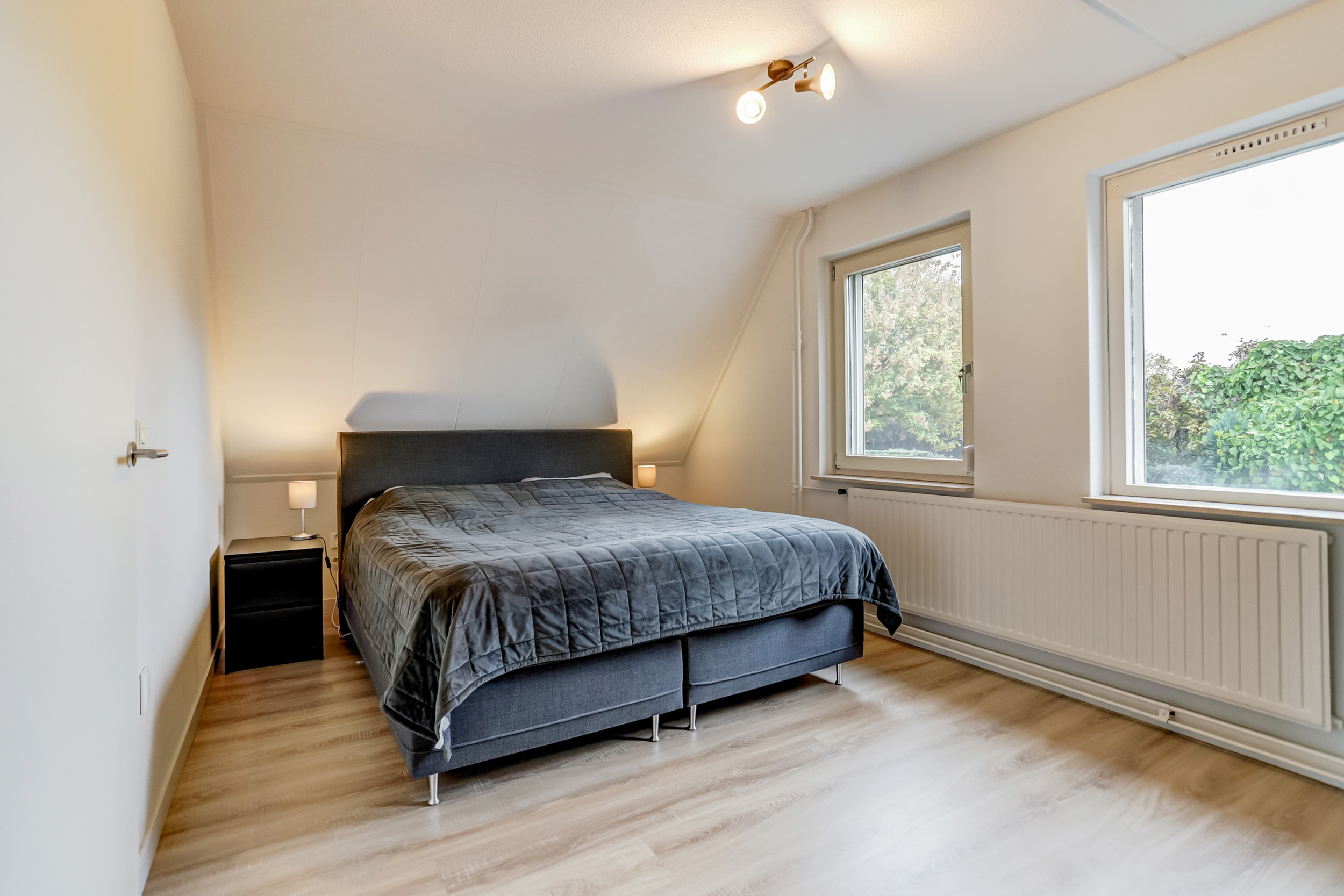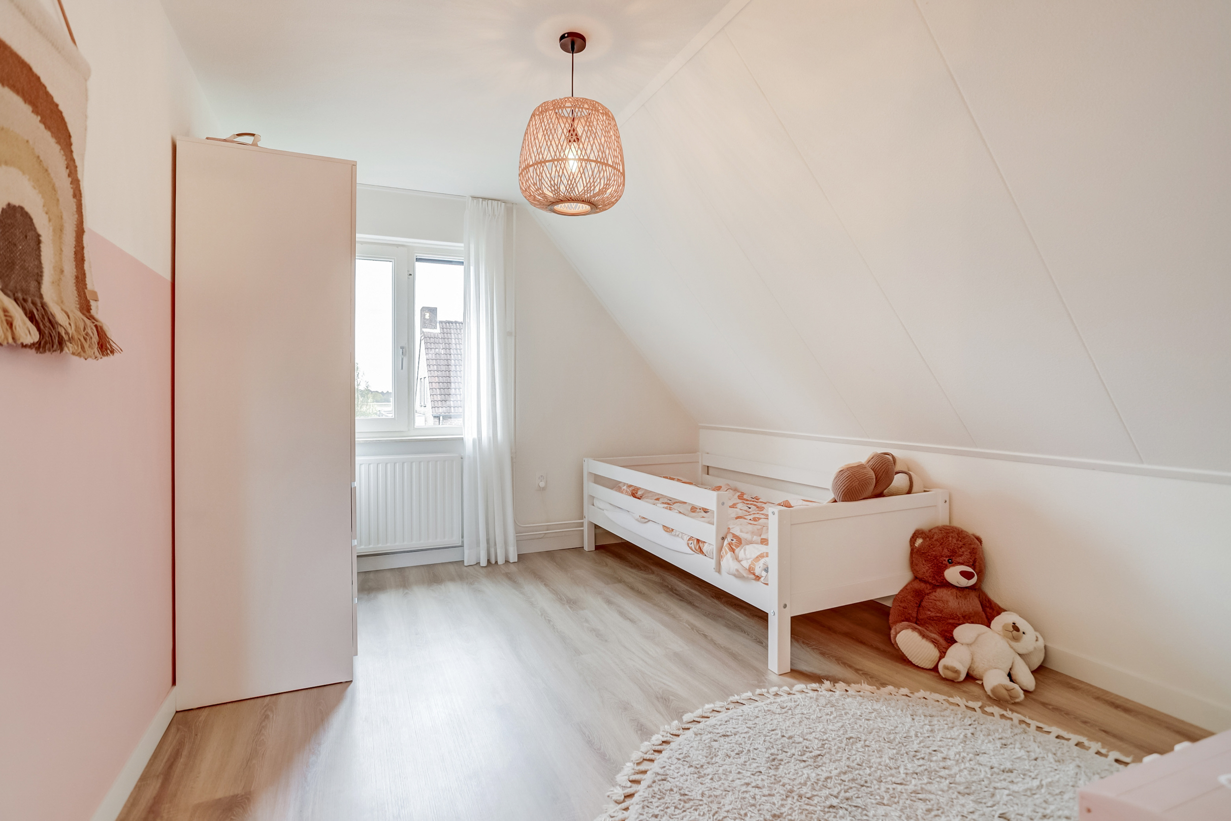 Overloop, 4 slaapkamers (ca. 14, 12, 11 en 9 m²) allen voorzien van laminaatvloer (’23), rolluiken (3 van de 4) en horren. De slaapkamer boven de berging heeft een schuin dak en is voorzien van dakkapel, aansluitend is er een bergruimte. De badkamer (’18) vormt een sfeervol geheel en is voorzien van wastafel met designerkom, toilet, inloopdouche en dakraam.