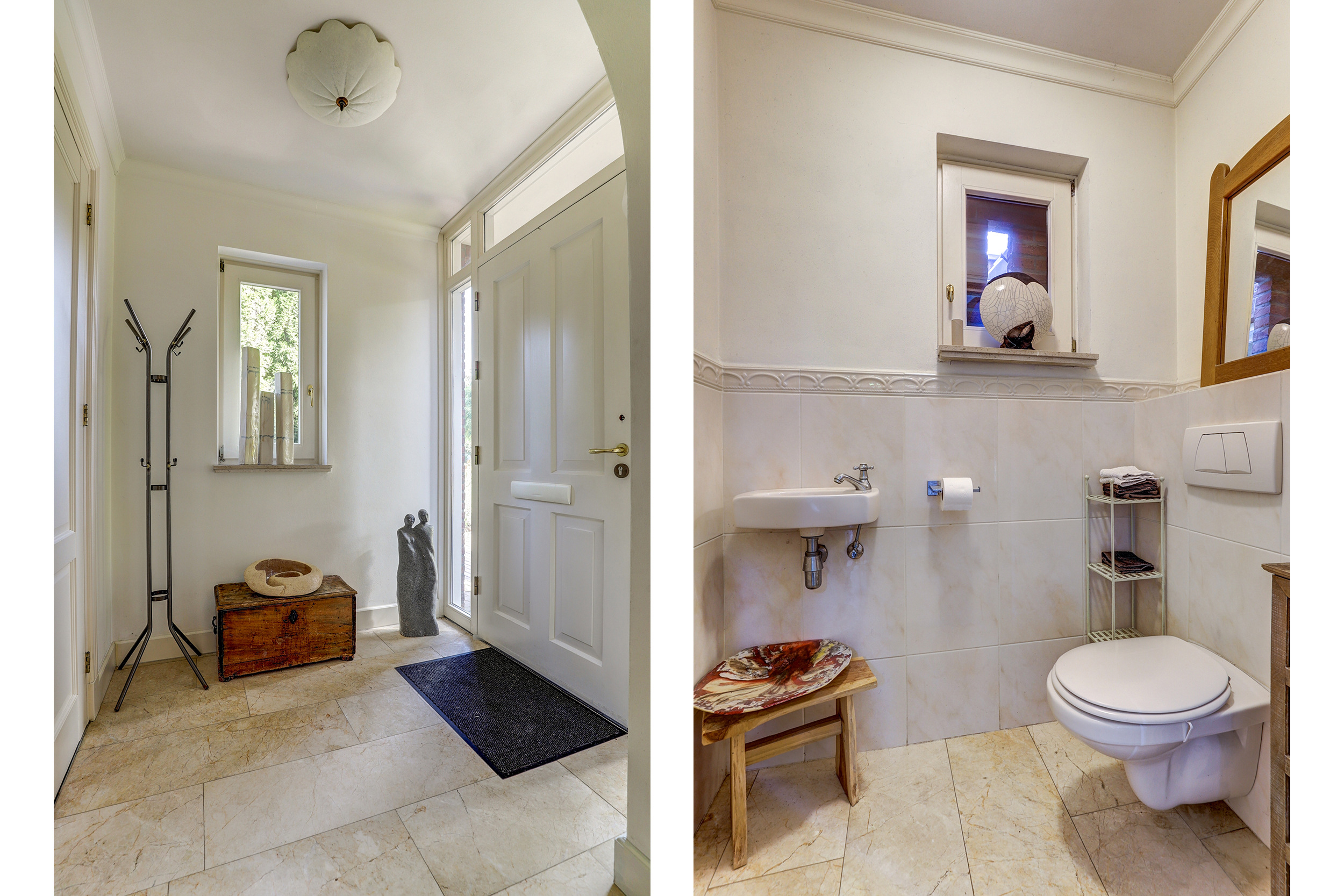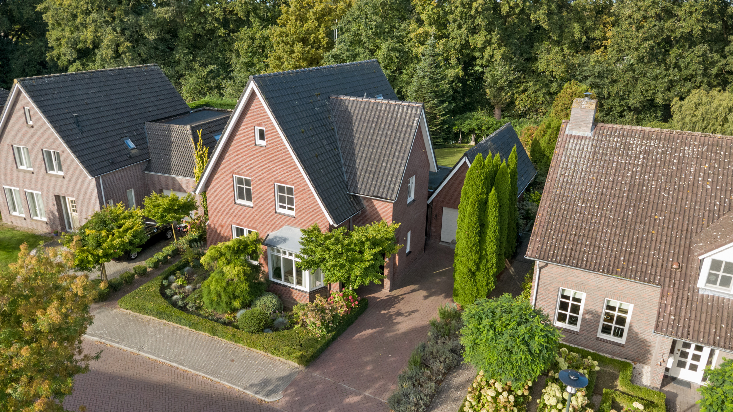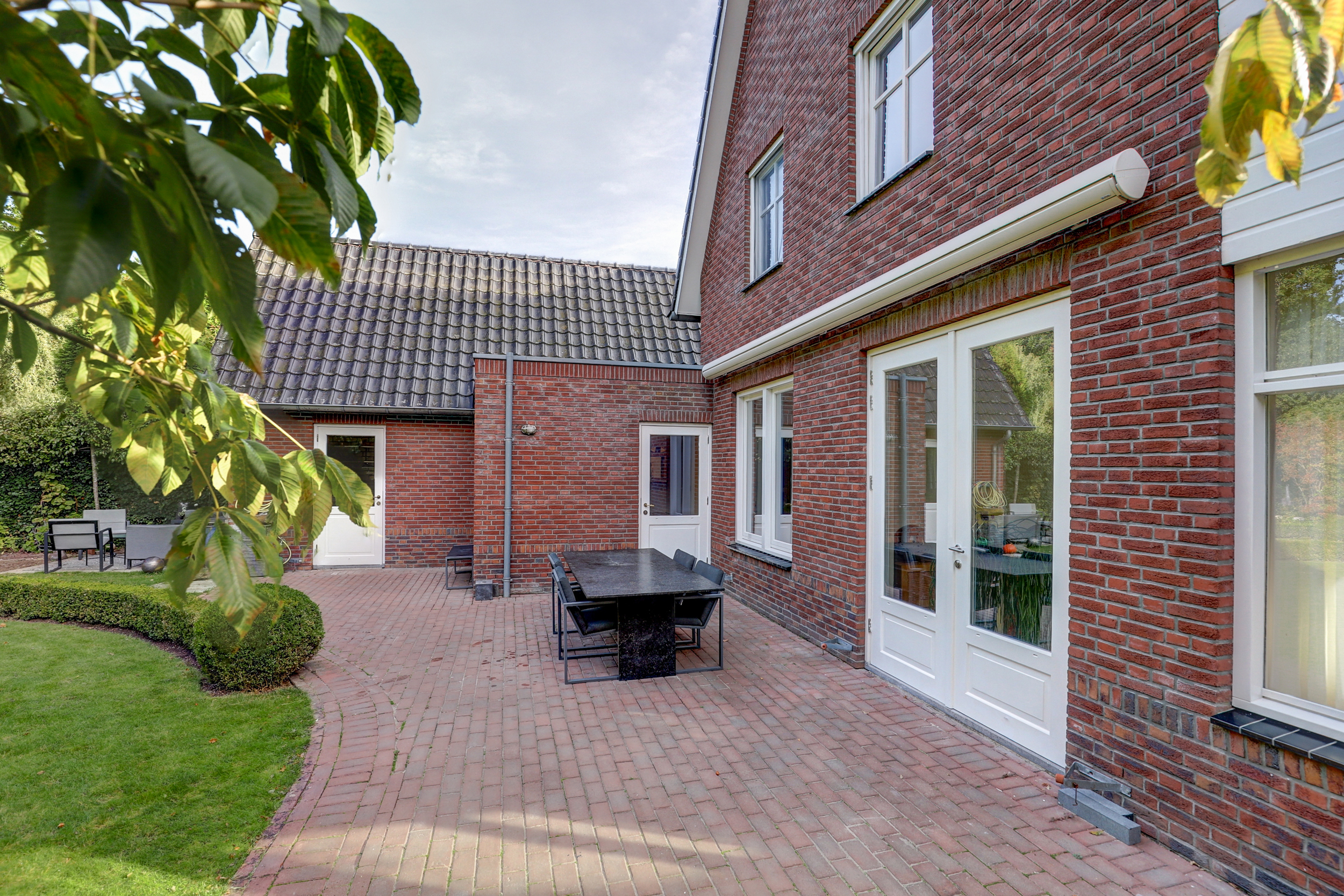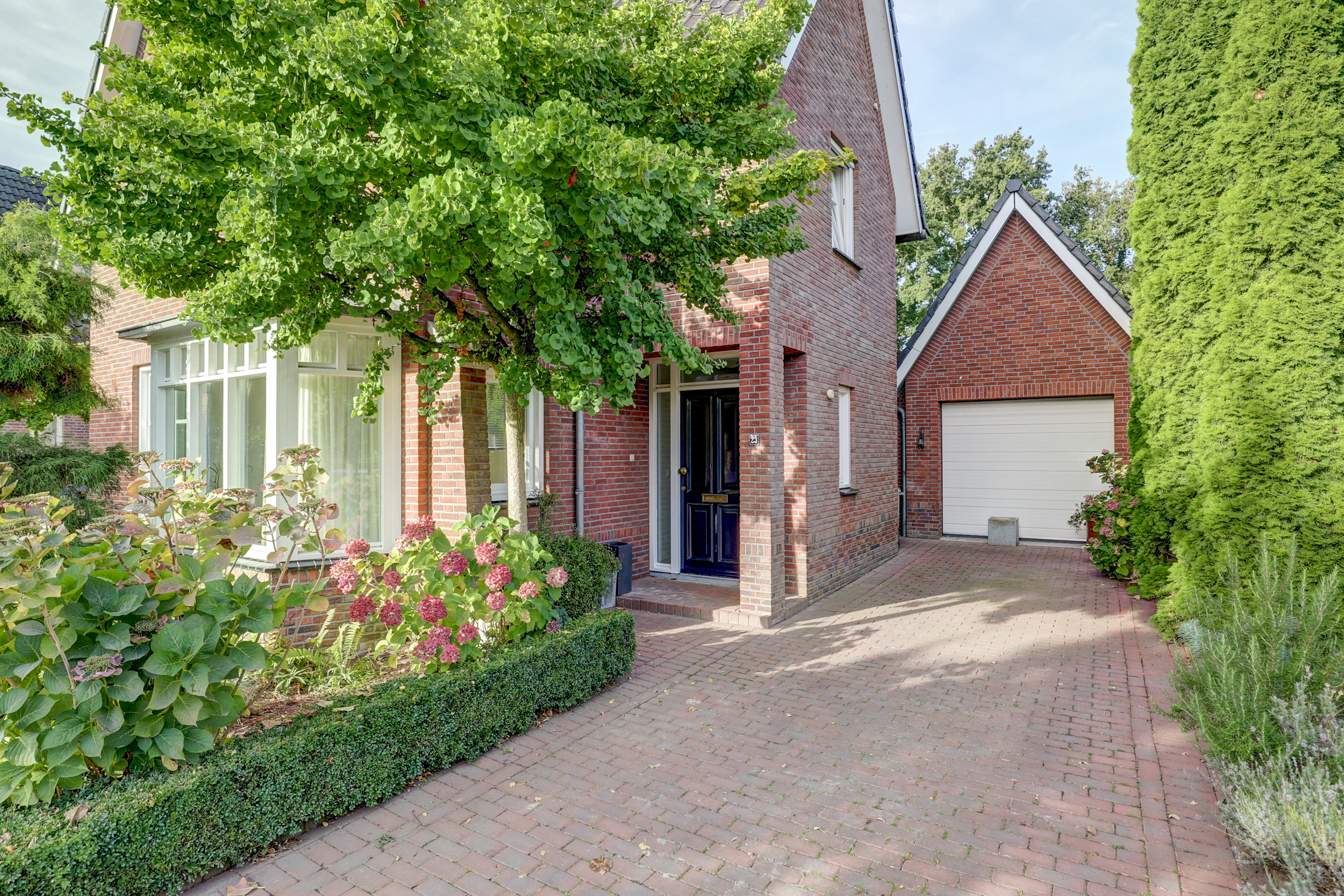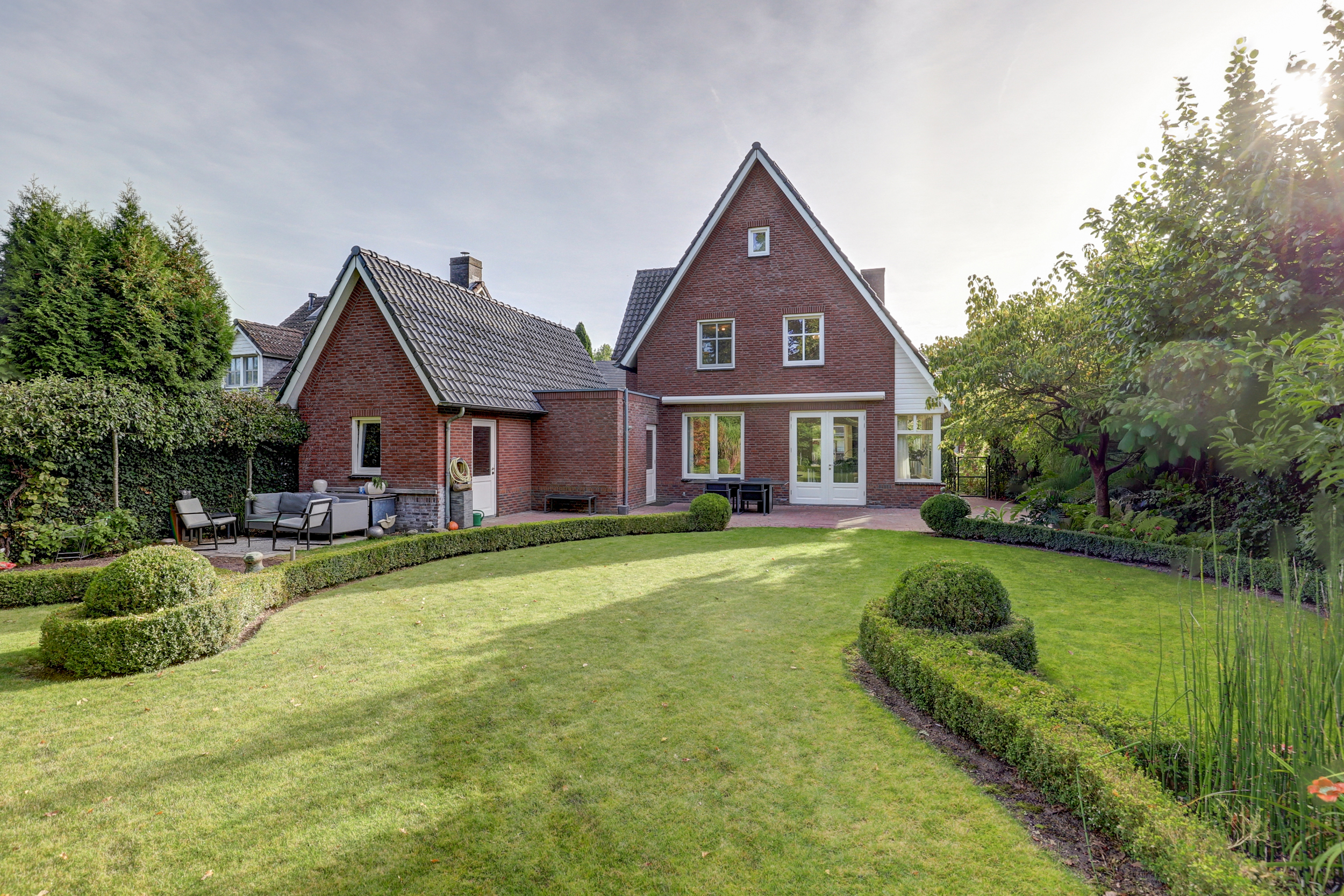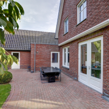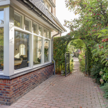 Bij aankomst valt direct de klassieke architectuur op: de karakteristieke kapvorm, de speelse gevel en de stijlvolle details in het metselwerk zorgen voor een warme, uitnodigende uitstraling.