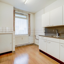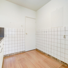 Entree, hal, zeer ruime en lichte woonkamer voorzien van parketvloer, en het balkon aan zonzijde. Vanuit de hal bereikt u de gesloten keuken met eenvoudig aanrechtblok. De doucheruimte is voorzien met douche en wastafel. Er is een aparte toiletruimte. Het appartement omvat 3 slaapkamers.