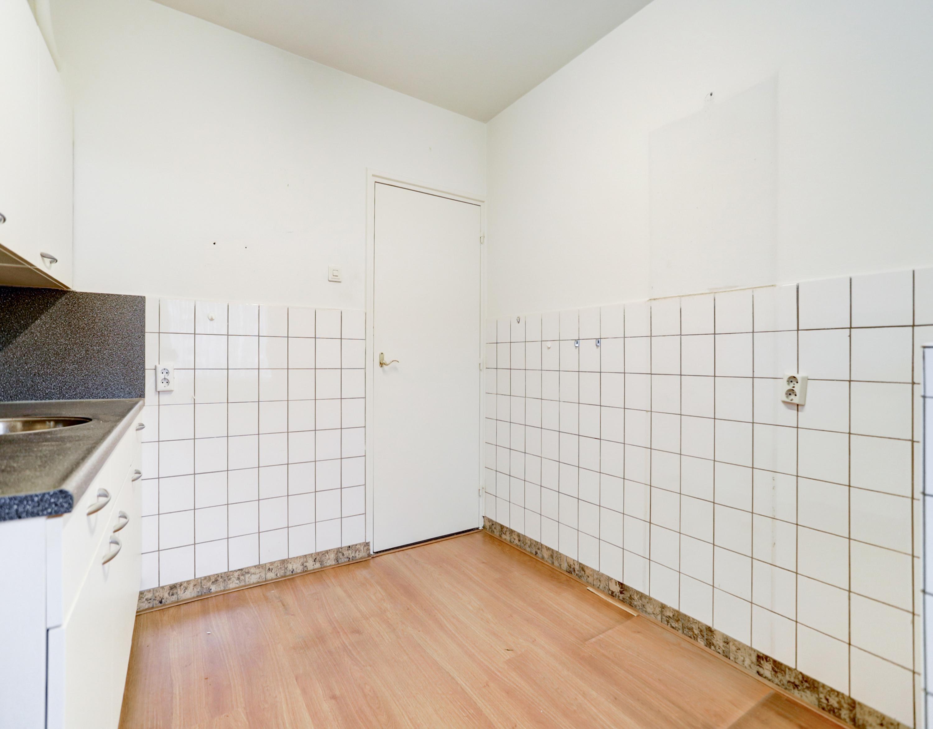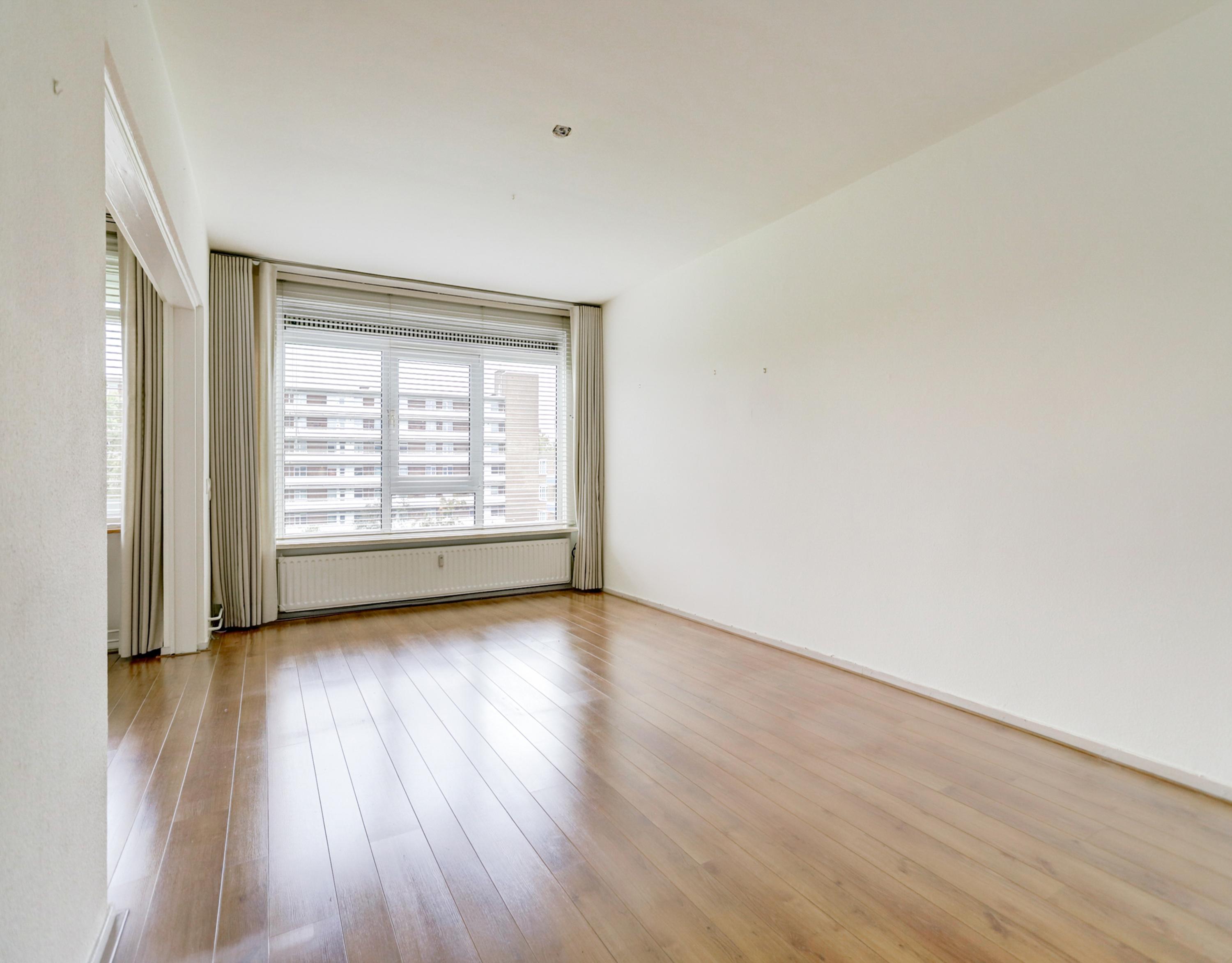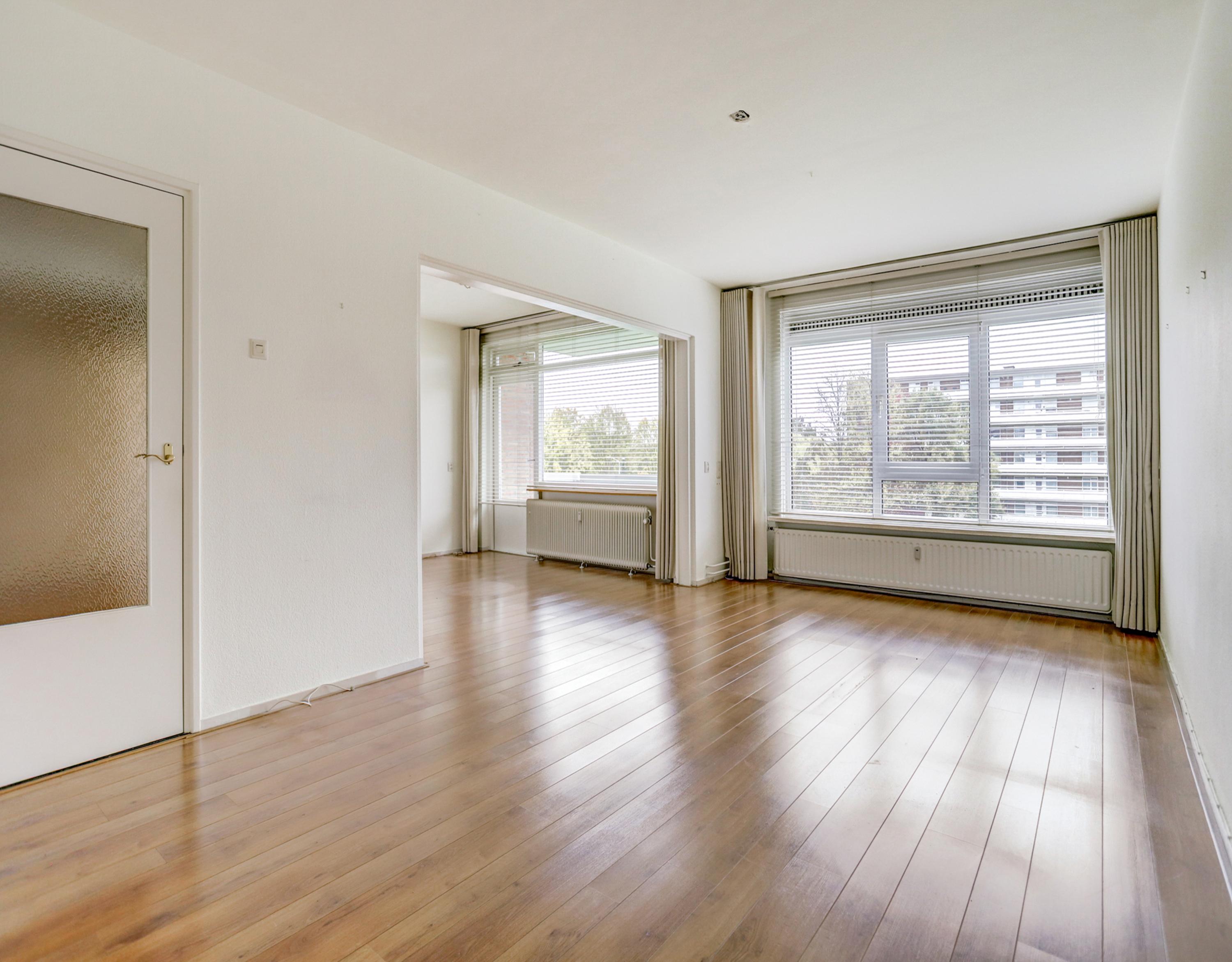 Entree, hal, zeer ruime en lichte woonkamer voorzien van parketvloer, en het balkon aan zonzijde. Vanuit de hal bereikt u de gesloten keuken met eenvoudig aanrechtblok. De doucheruimte is voorzien met douche en wastafel. Er is een aparte toiletruimte. Het appartement omvat 3 slaapkamers.