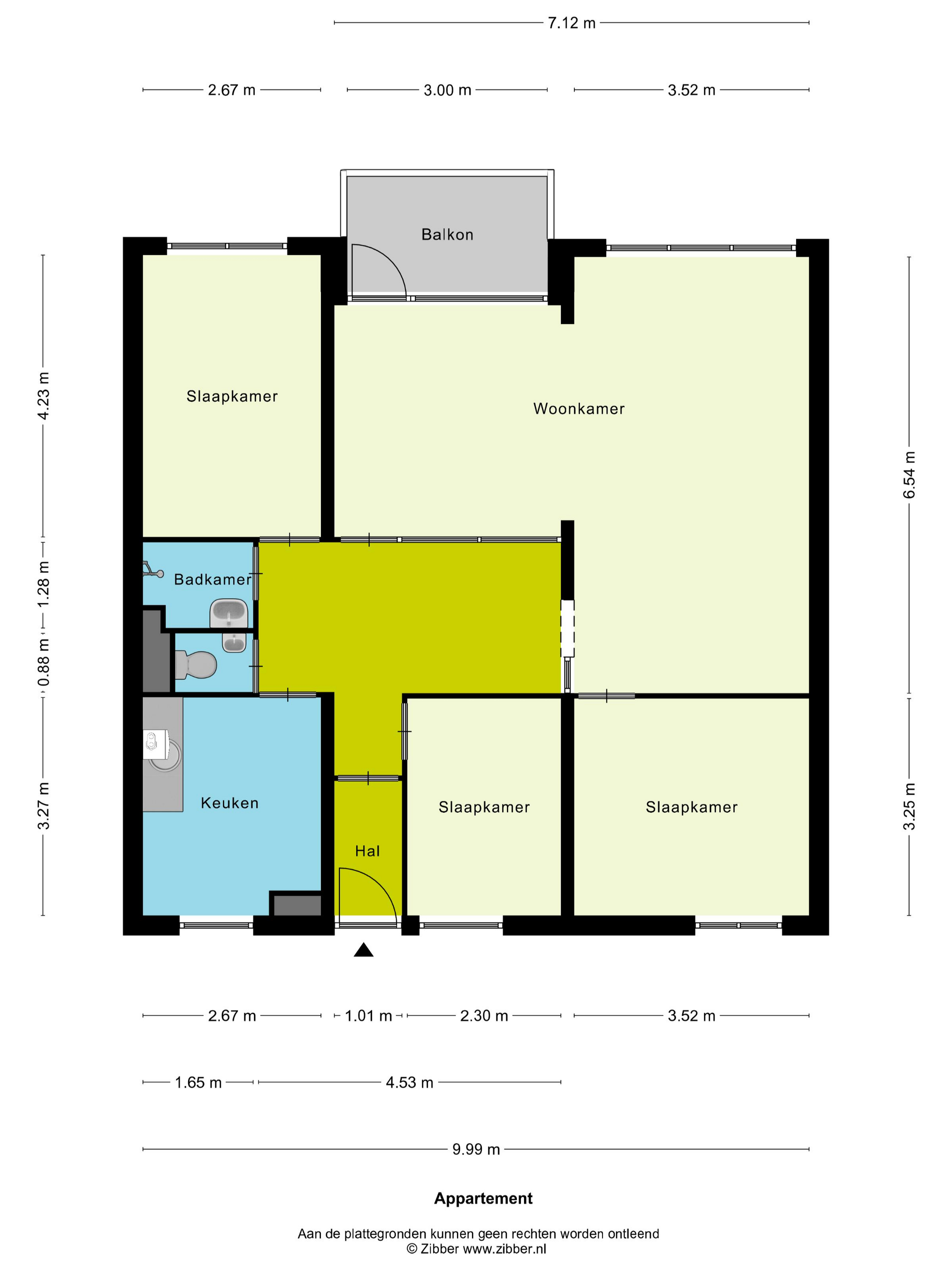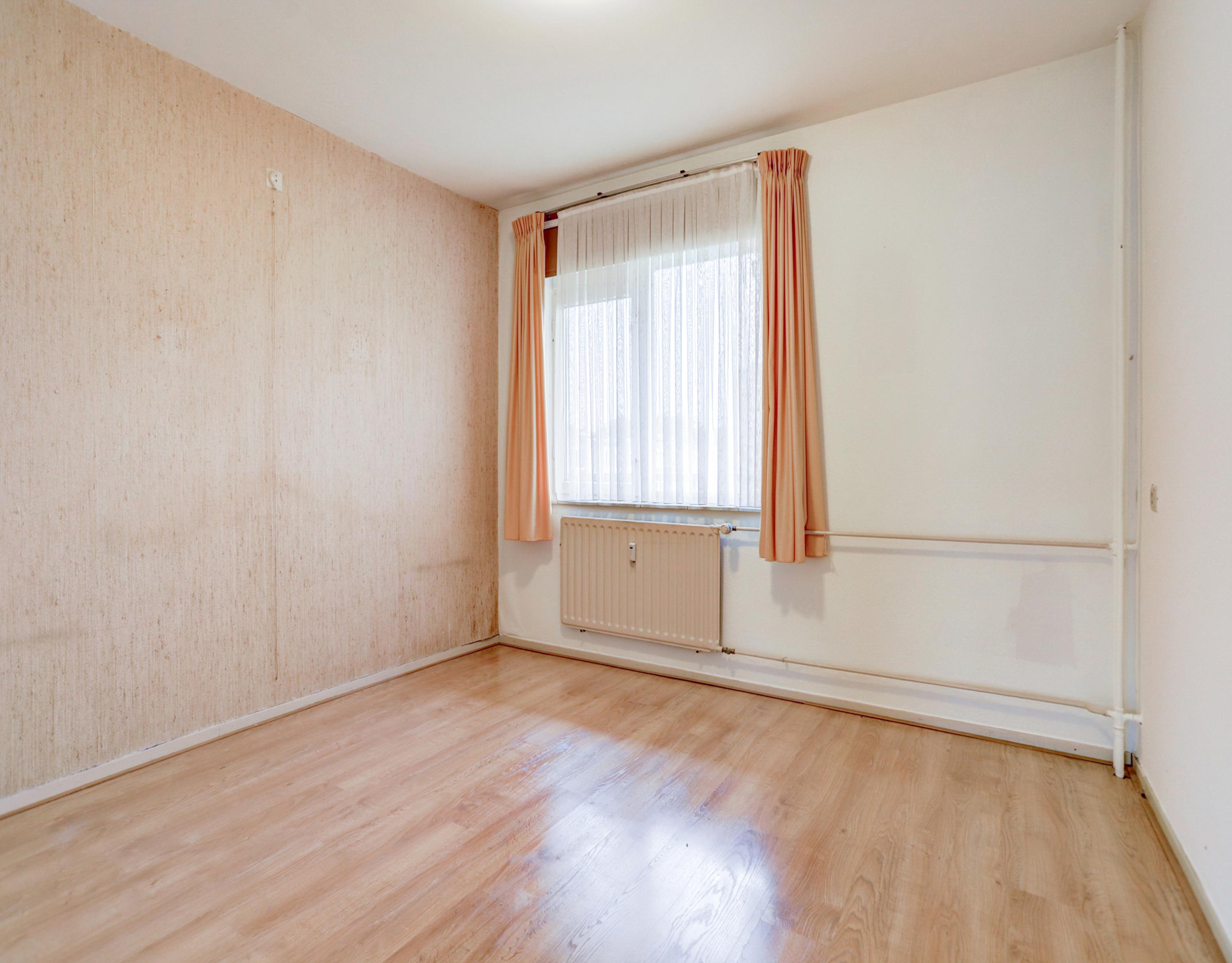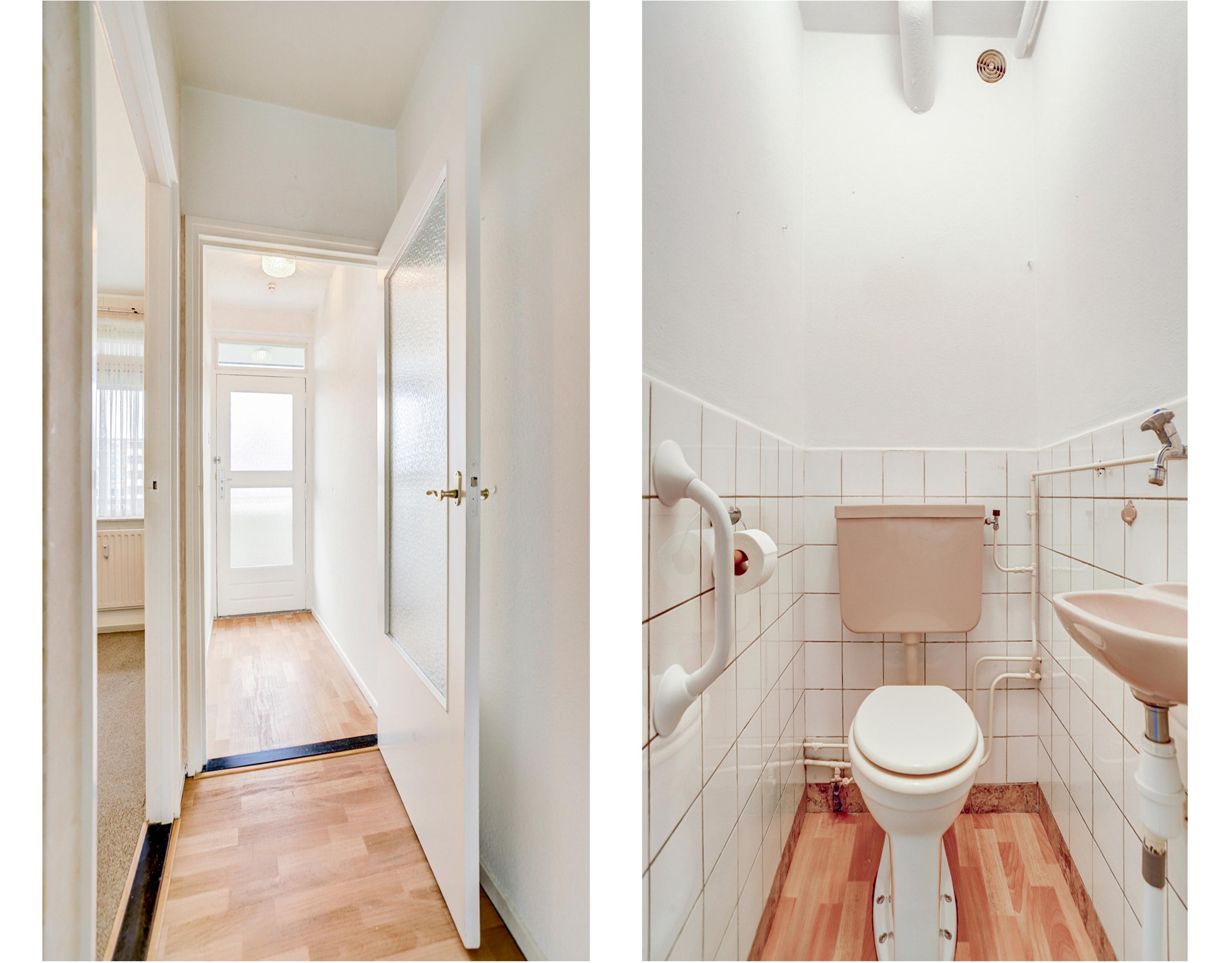 Entree, hal, zeer ruime en lichte woonkamer voorzien van parketvloer, en het balkon aan zonzijde. Vanuit de hal bereikt u de gesloten keuken met eenvoudig aanrechtblok. De doucheruimte is voorzien met douche en wastafel. Er is een aparte toiletruimte. Het appartement omvat 3 slaapkamers.
