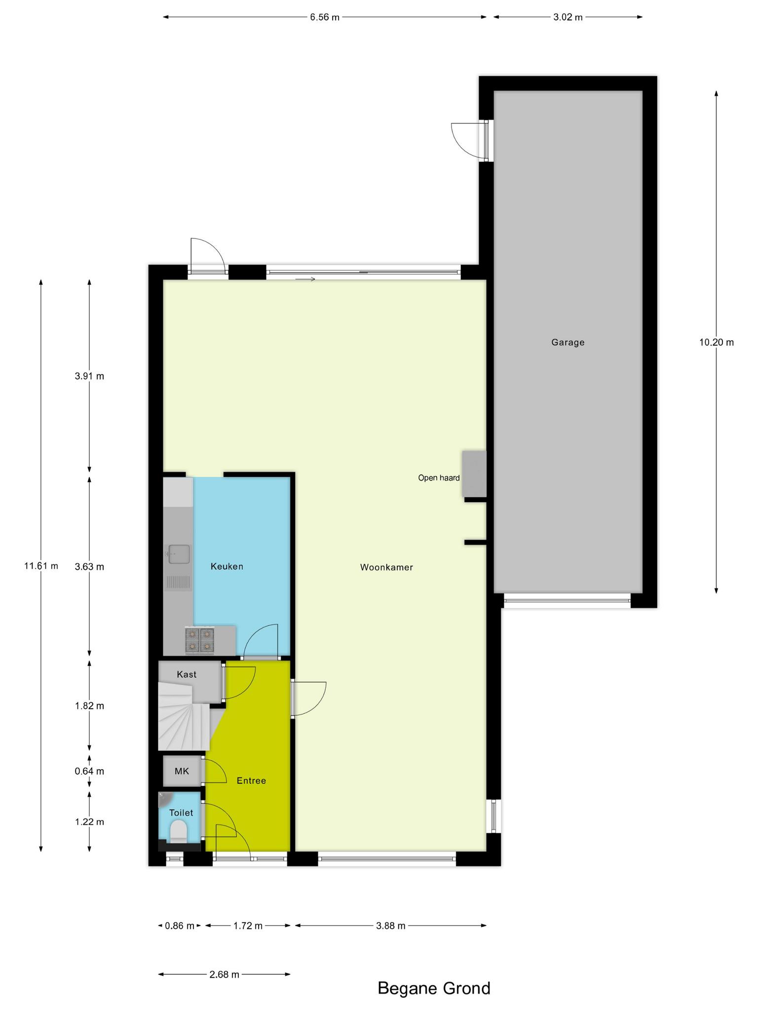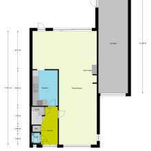 De extra lange garage (ca. 10,2m x 3m) is voorzien van elektrische poort en lichtkoepel.