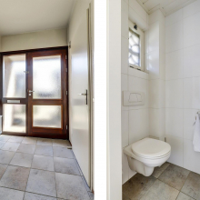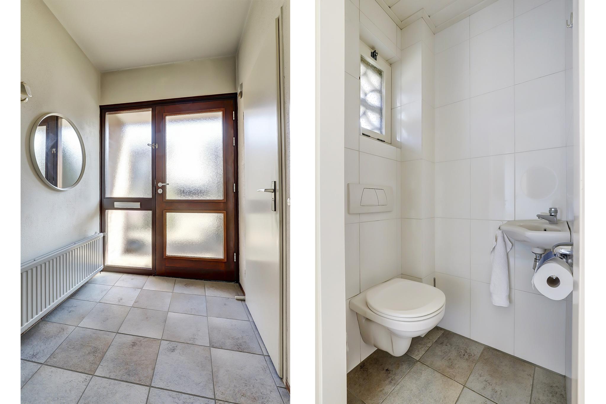 Entree, hal, toilet met fonteintje, meterkast, trapopgang en trapkast.