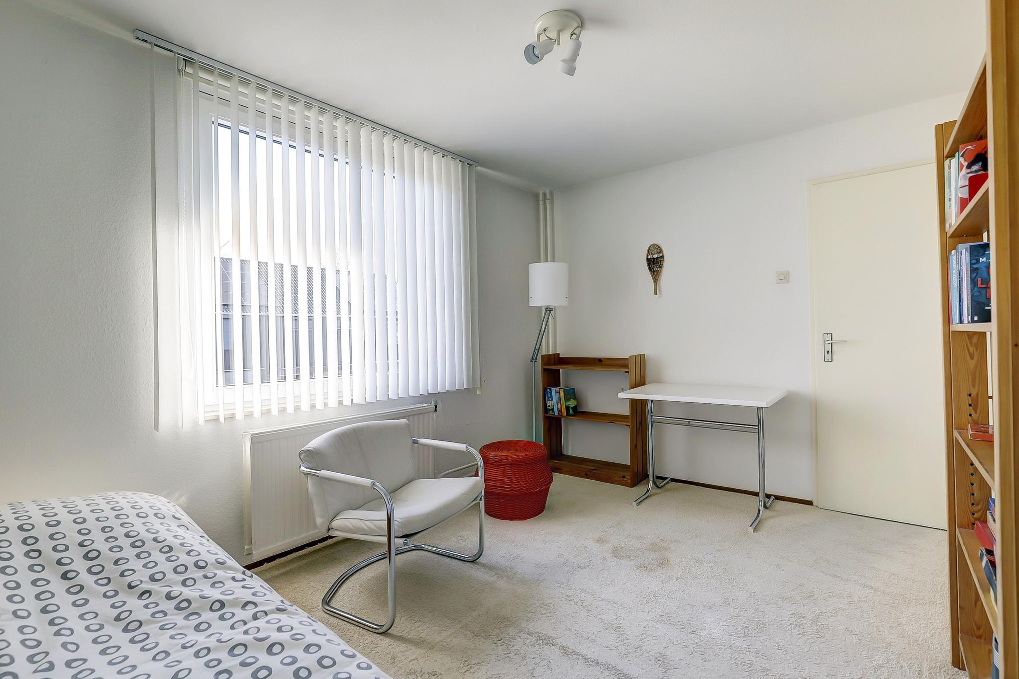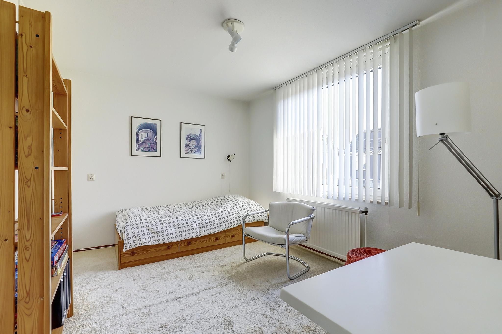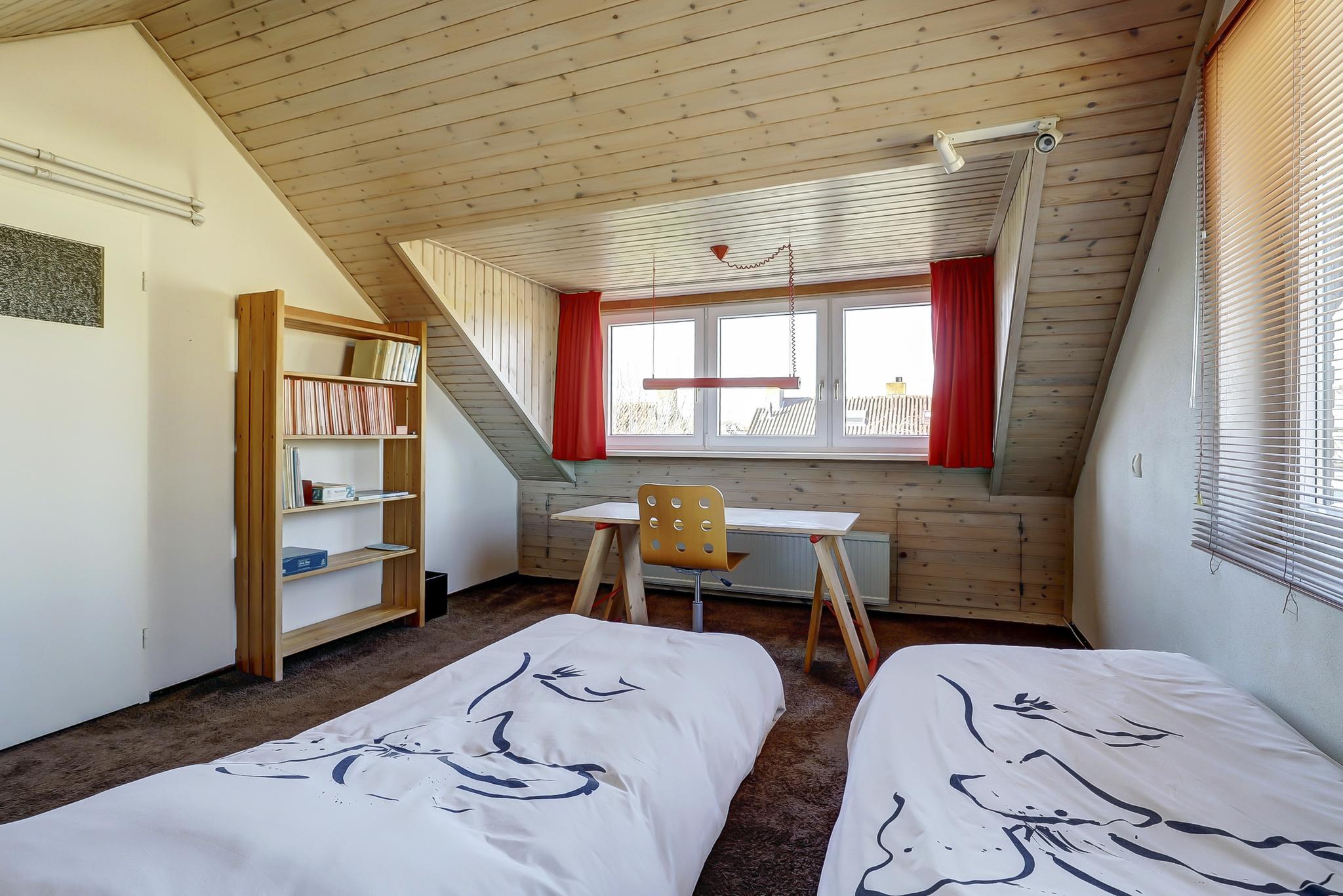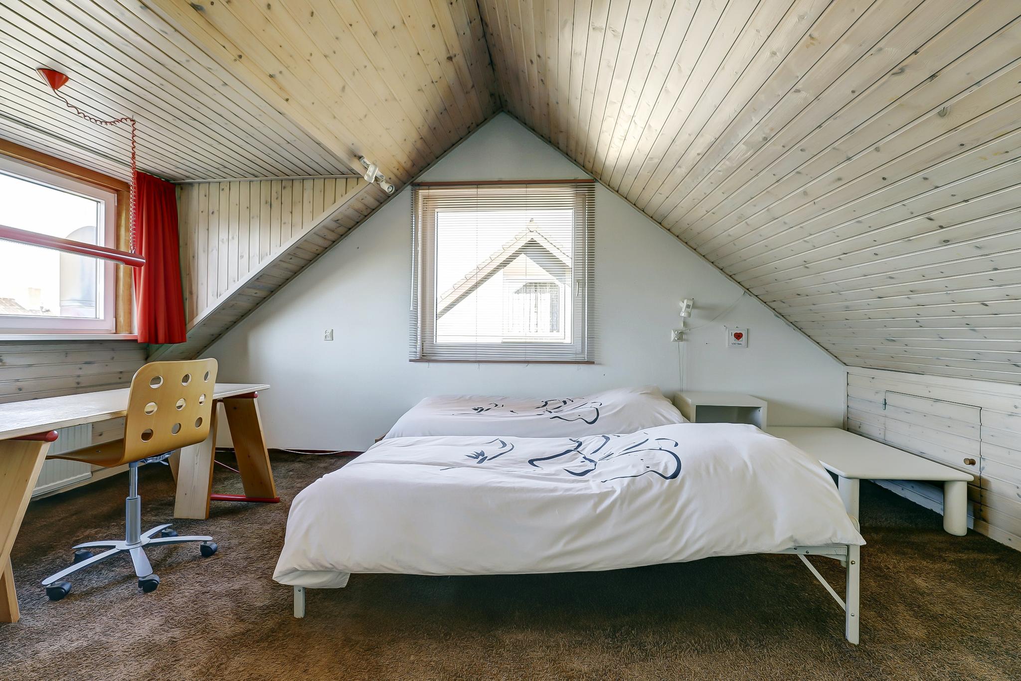 Vaste trap, overloop, bergruimte met wasmachine- en -drogeraansluiting, cv-ketel (Bosch, 2009, eigendom) en 4e slaapkamer (ca. 20m²). Grote kamer met veel licht door brede dakkapel en zijvenster.