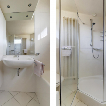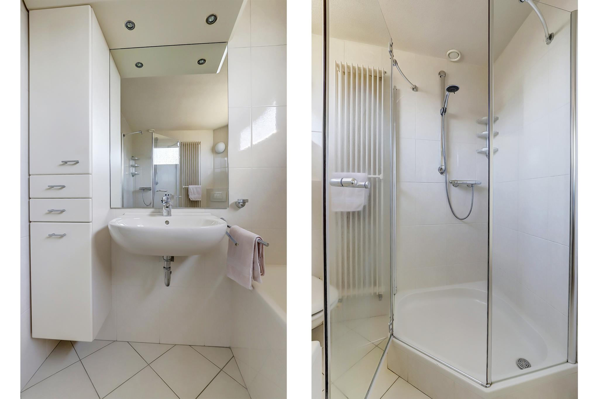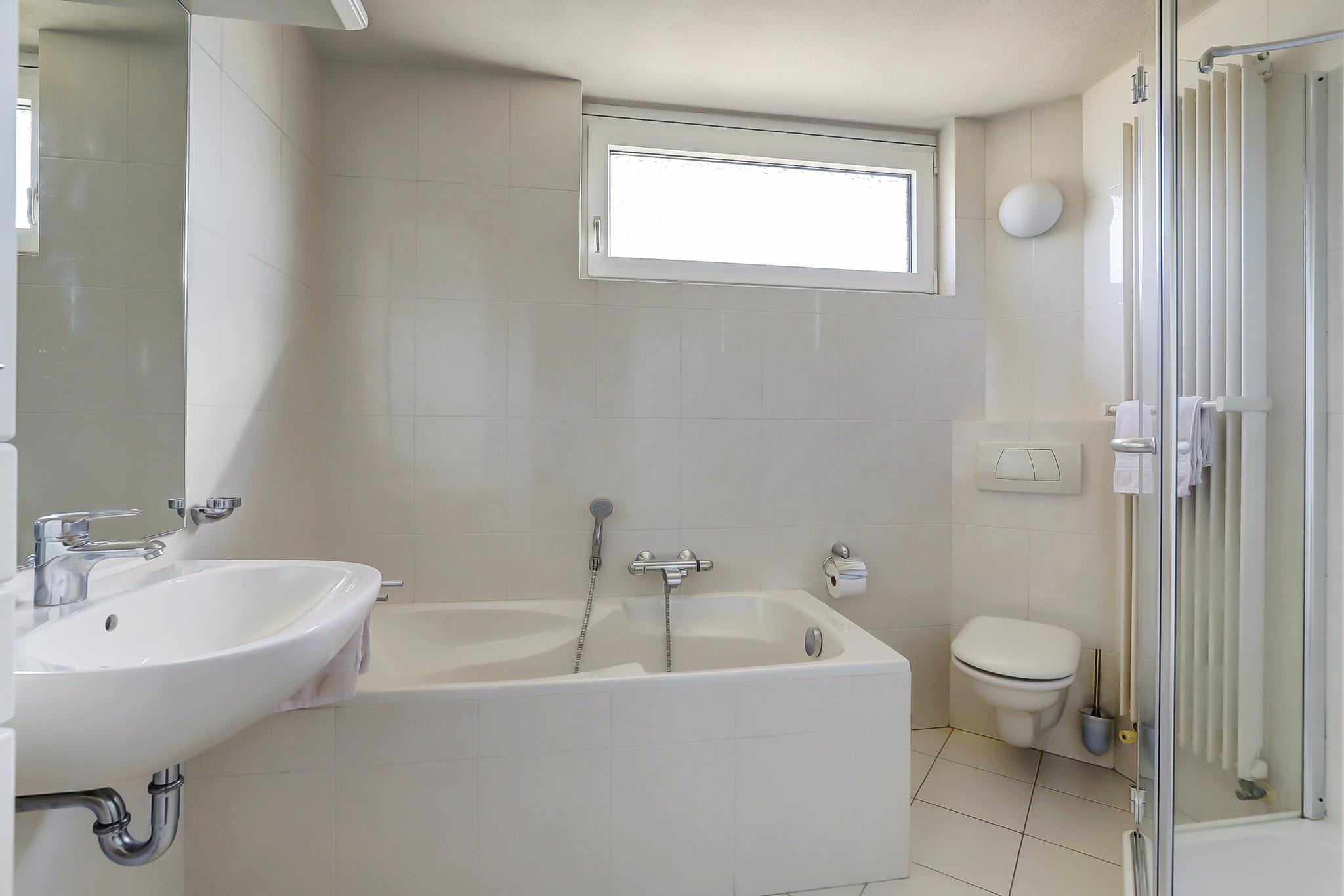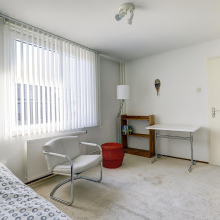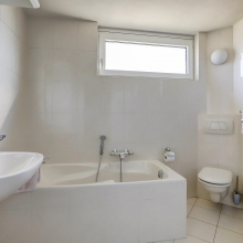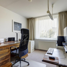 Overloop, 3 ruime slaapkamers (ca. 17, 11 en 10 m²) allen voorzien van kunststof kozijnen met dubbel glas. 3 kamer heeft een vaste wandkast. De badkamer is voorzien van tijdloze, complete opstelling (permagon): toiletkast, spiegel, wastafel, ligbad, douche en toilet.