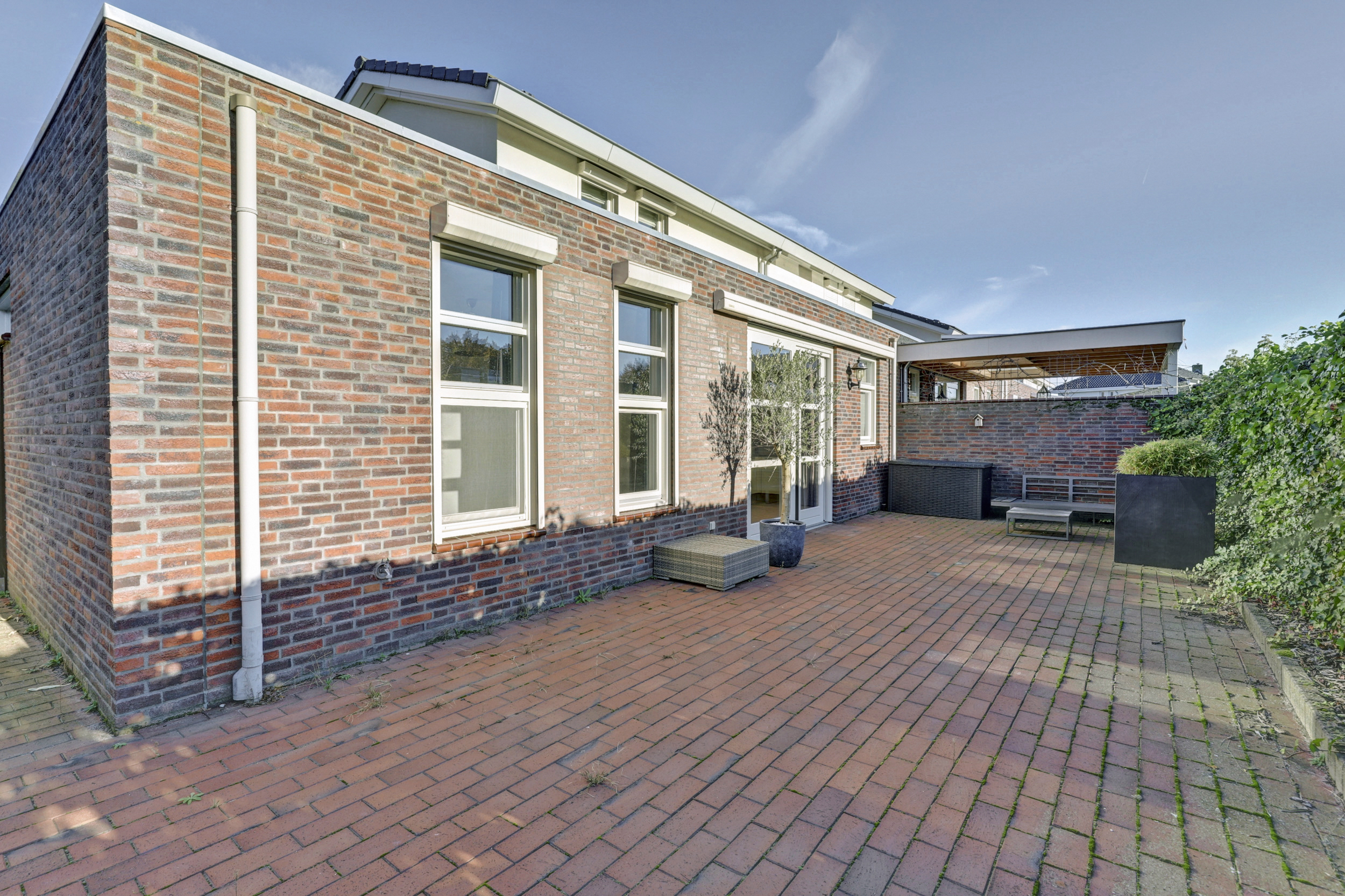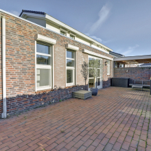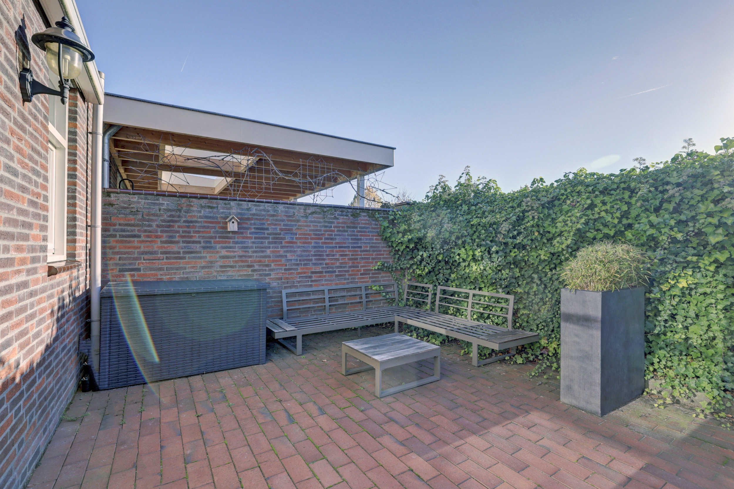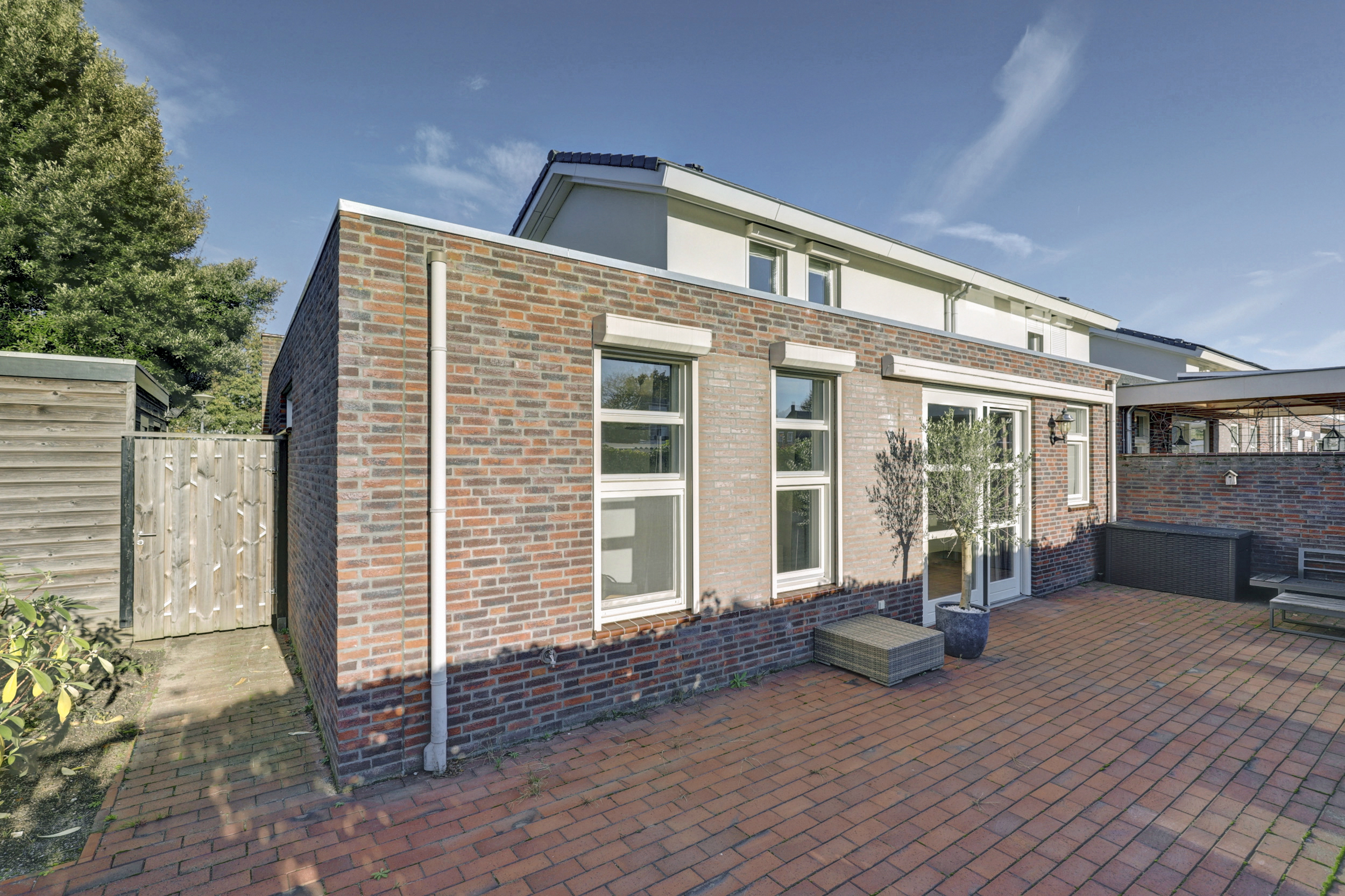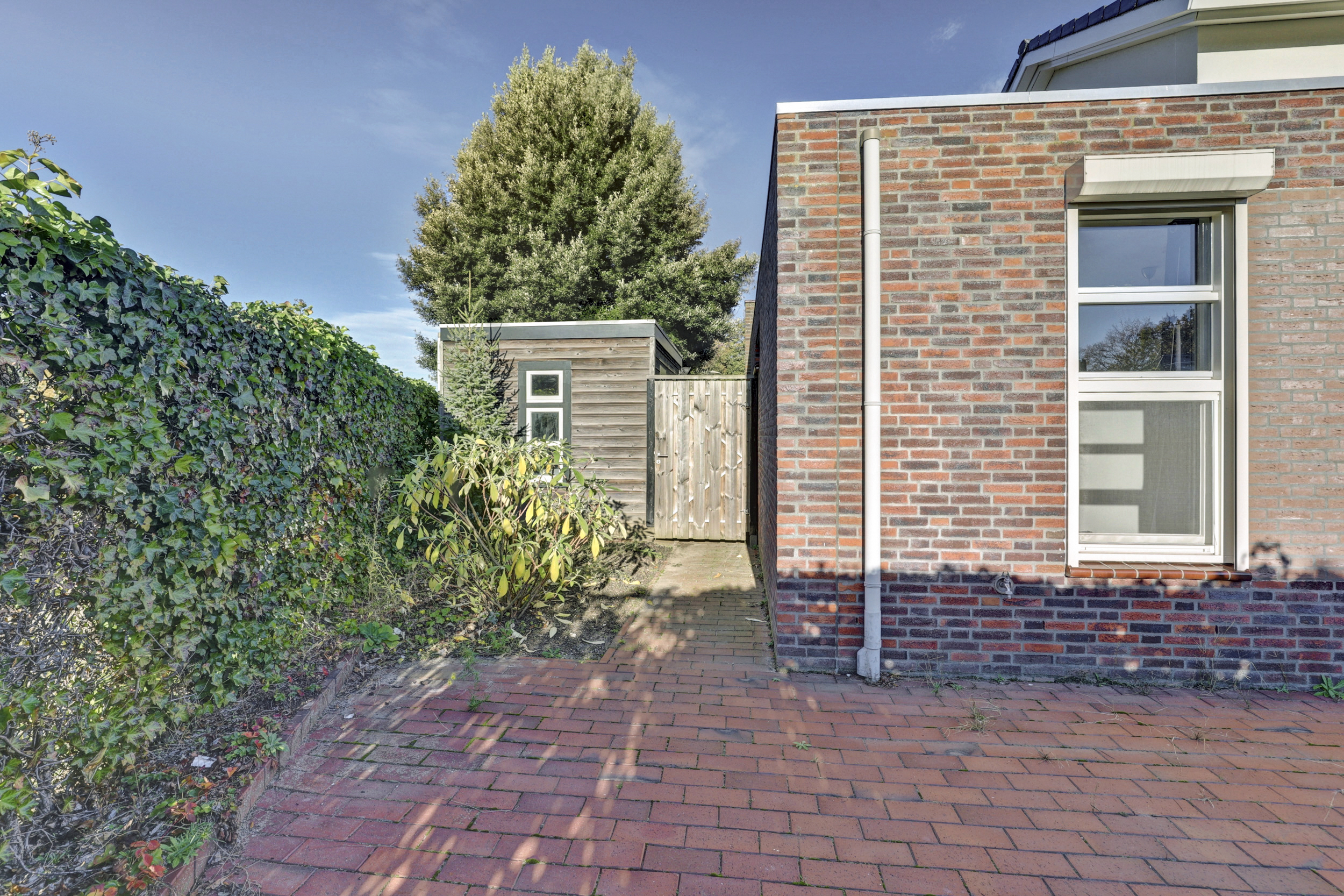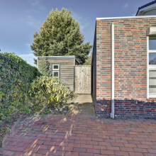 De beklinkerde achtertuin ligt op het zuiden, is onderhoudsarm aangelegd en biedt veel privacy. In de zijtuin is de houten berging geplaatst waar voldoende plaats is om je fietsen te stallen. De tuin is geheel omsloten en is via de zijtuin middels een toegangspoortje bereikbaar.