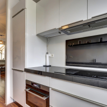 De keuken is vernieuwd in 2018 en uitgerust met alles wat je nodig hebt: een inductiekookplaat, afzuigkap, vaatwasser, combi-oven en een koel-vriescombinatie. Praktisch detail zijn de vele laden, want zoeken naar pannen is nergens voor nodig.