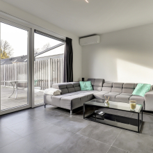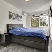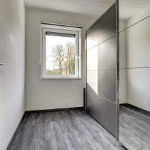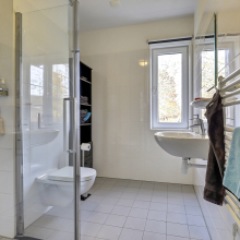 Overloop, 3 slaapkamers alle voorzien van laminaatvloeren. De grootste slaapkamer is eveneens uitgerust met een airco. Deze verdieping is geheel voorzien van vloerverwarming. De ruime badkamer is voorzien van een inloopdouche, wastafel, toilet en ook hier ligt de comfortabele vloerverwarming.