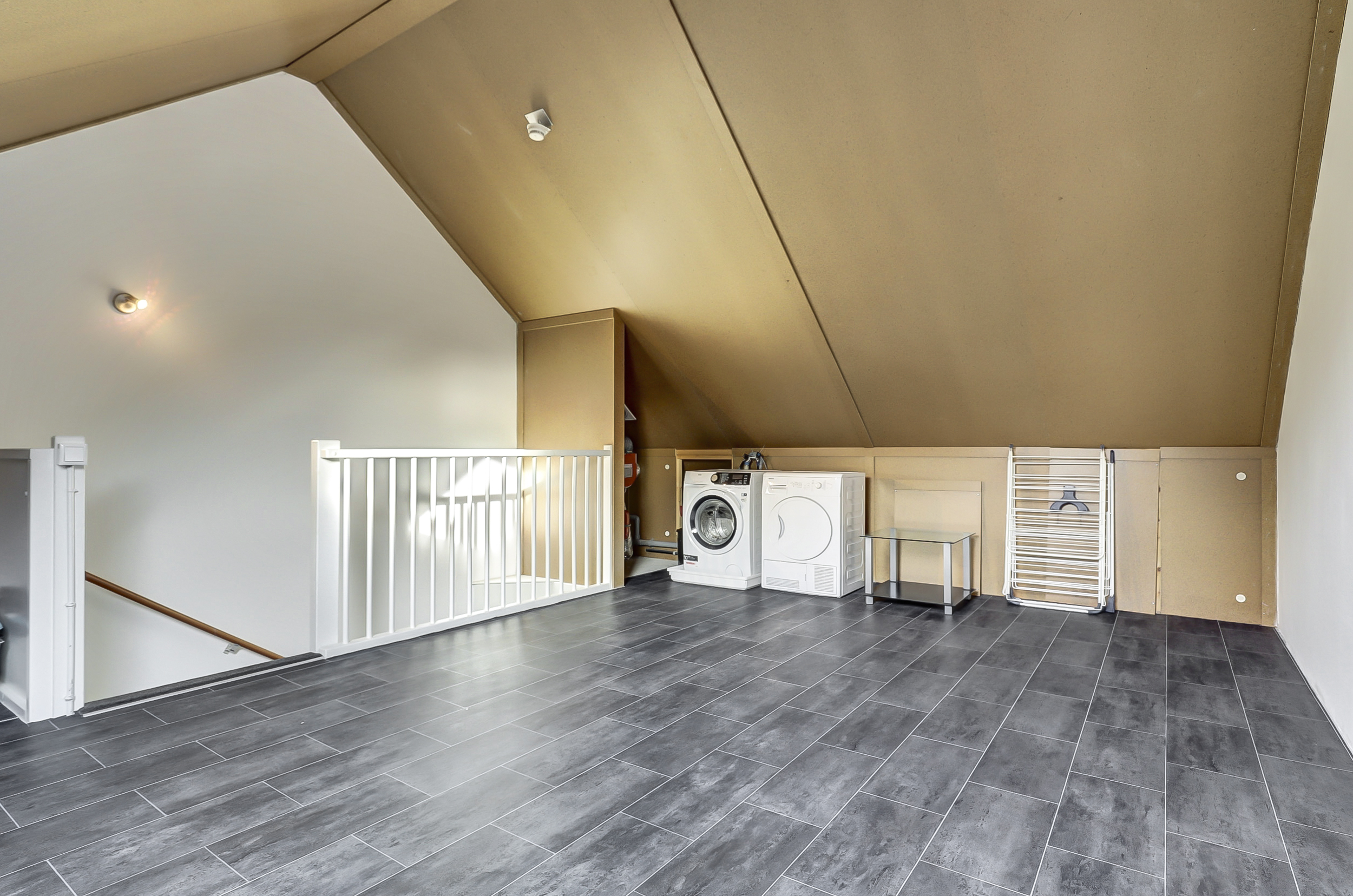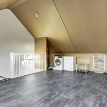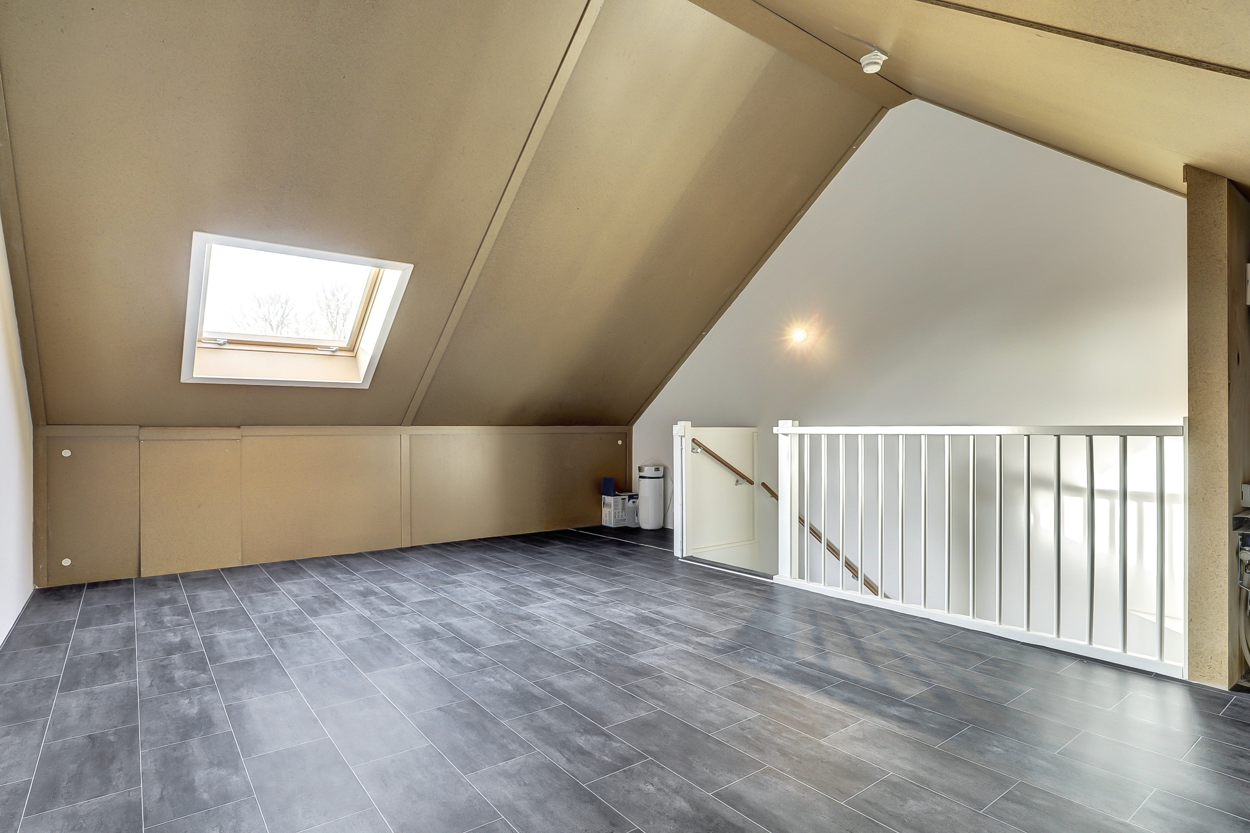 Via een vaste trap is de grote zolder met dakvenster bereikbaar. Deze ruimte kun je voor veel doeleinden gebruiken bijvoorbeeld als vierde slaapkamer of als hobbyruimte. Op deze verdieping ligt ook vloerverwarming. De HR Cv-ketel die in 2019 is geplaatst en de wasmachine aansluiting zijn hier ook aanwezig.