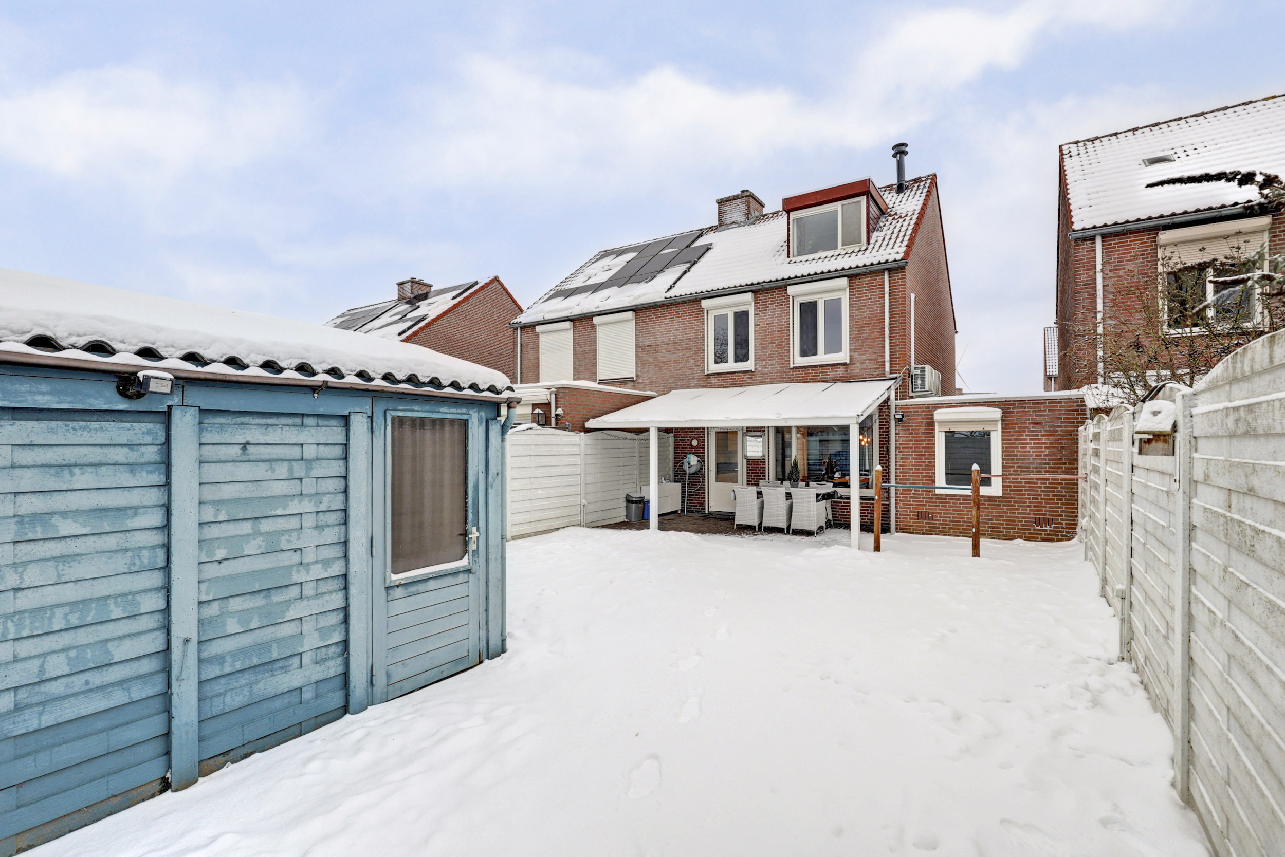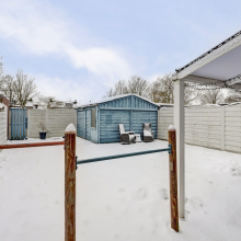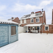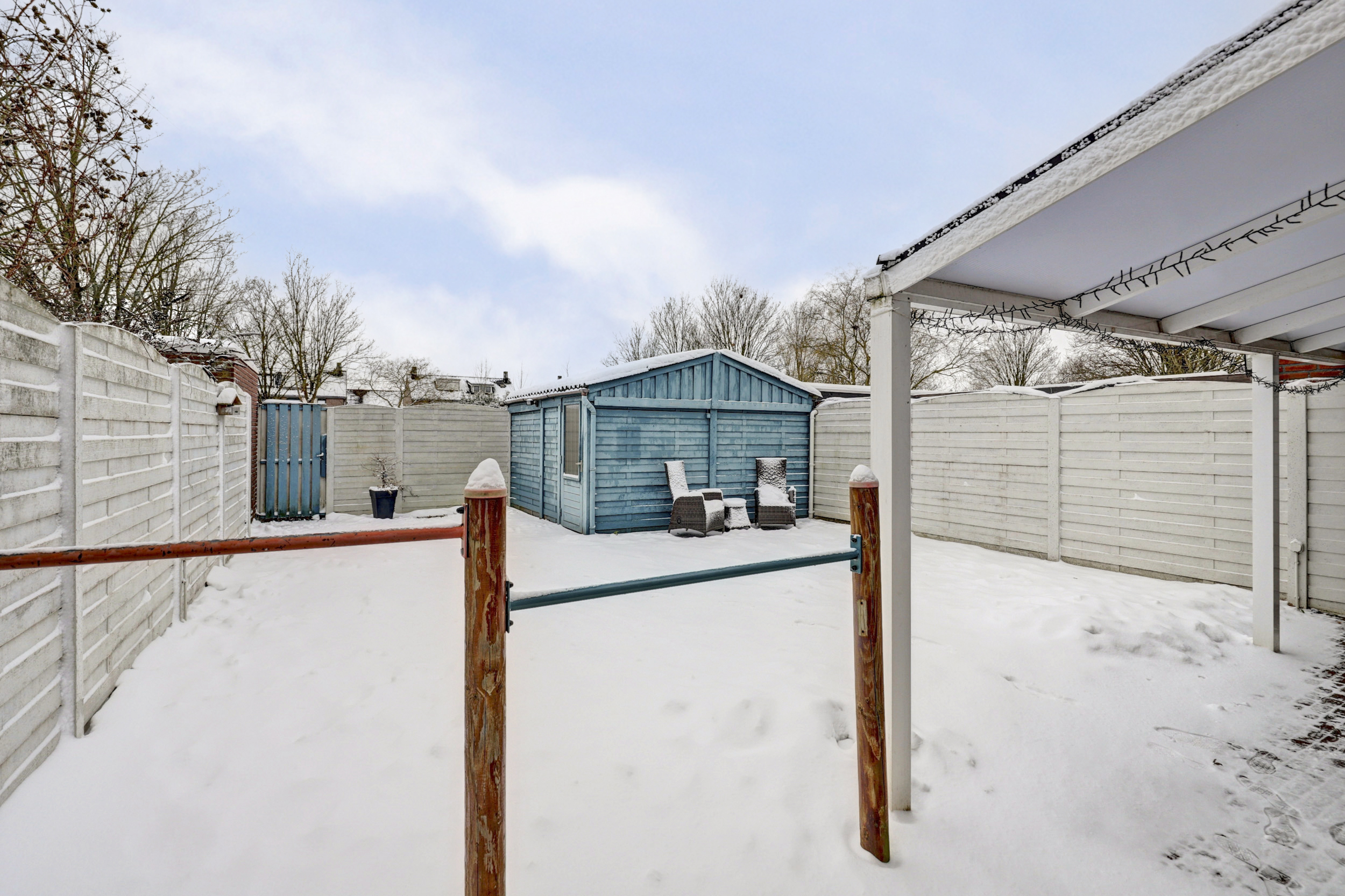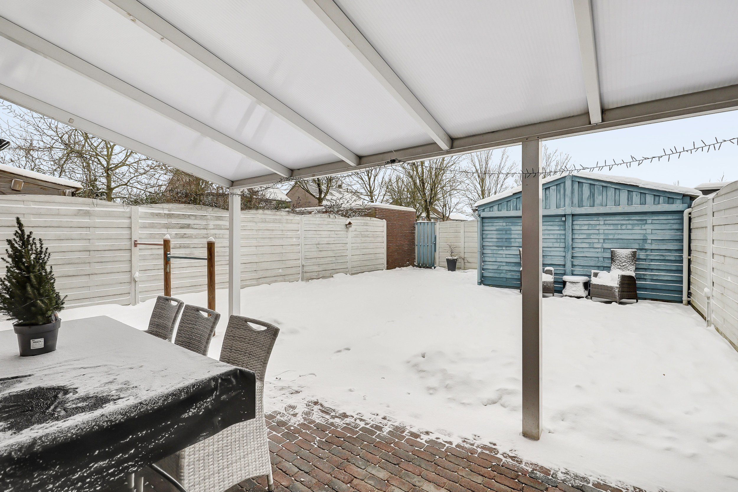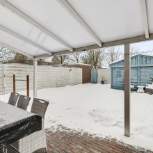 Direct aan de woning is de overkapping (2025) bereikbaar, hier kun je heerlijk beschut zitten. De tuin is lekker ruim en voorzien van een achterom. Aan de achterzijde van de woning ligt een groenvoorziening er zijn dus geen directe achterburen. Achter in de tuin staat een berging/tuinhuis.
