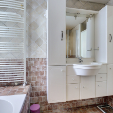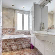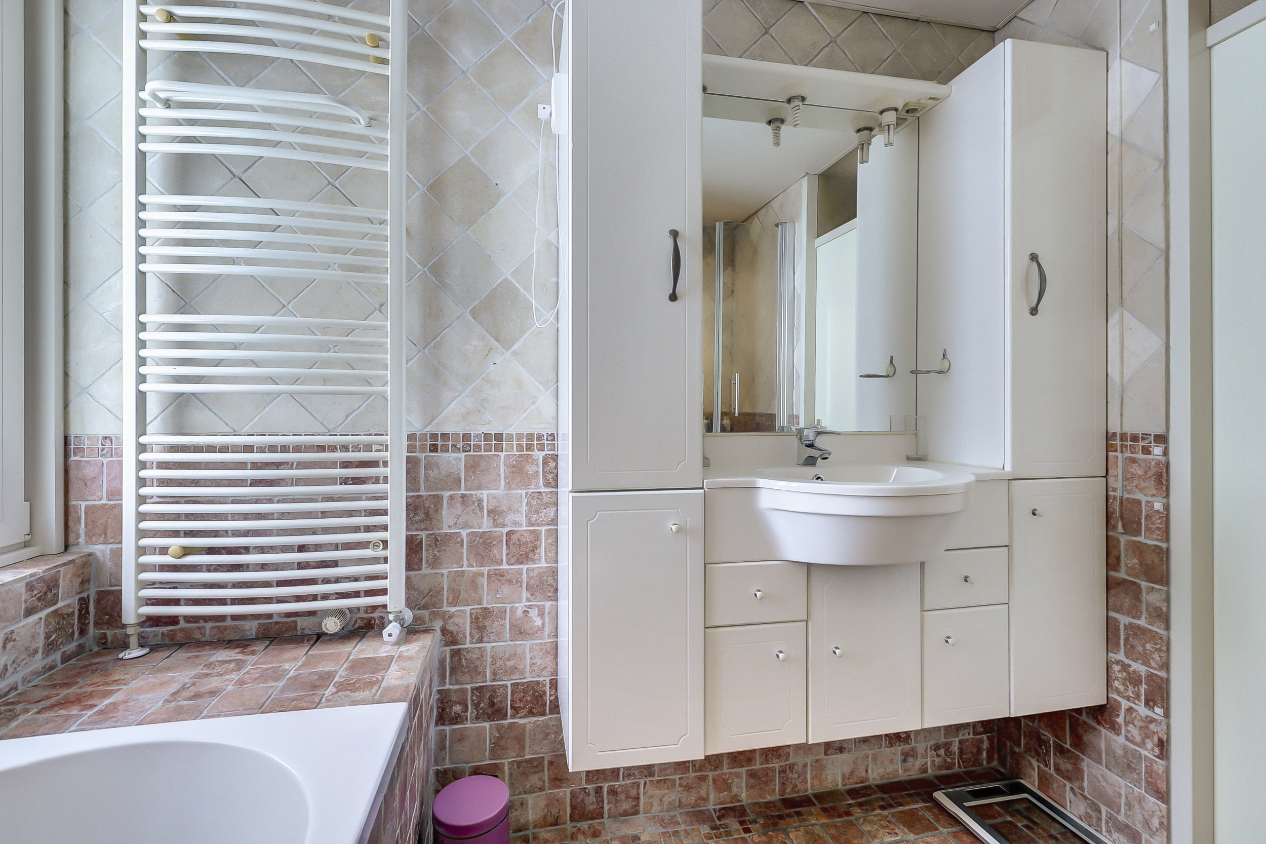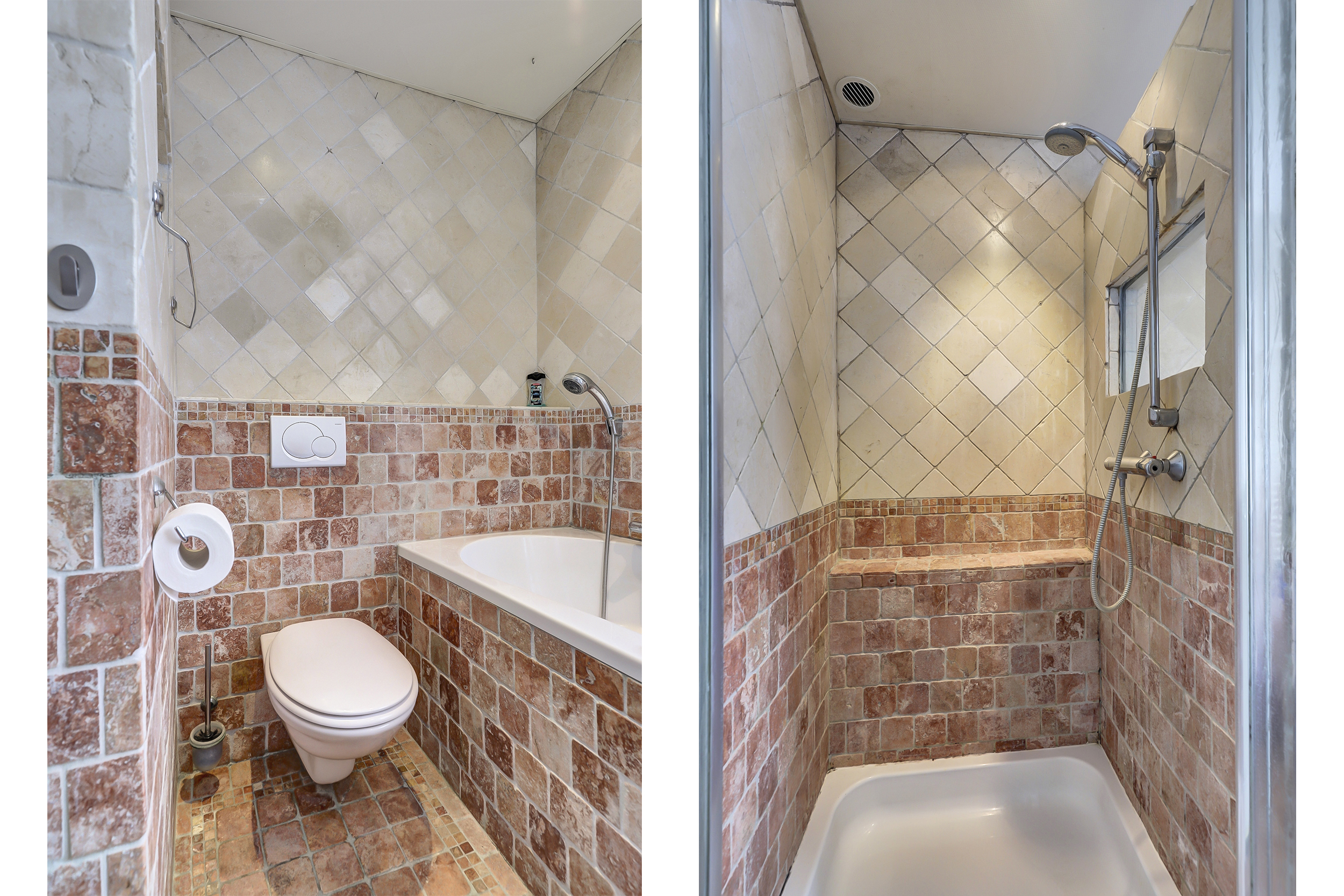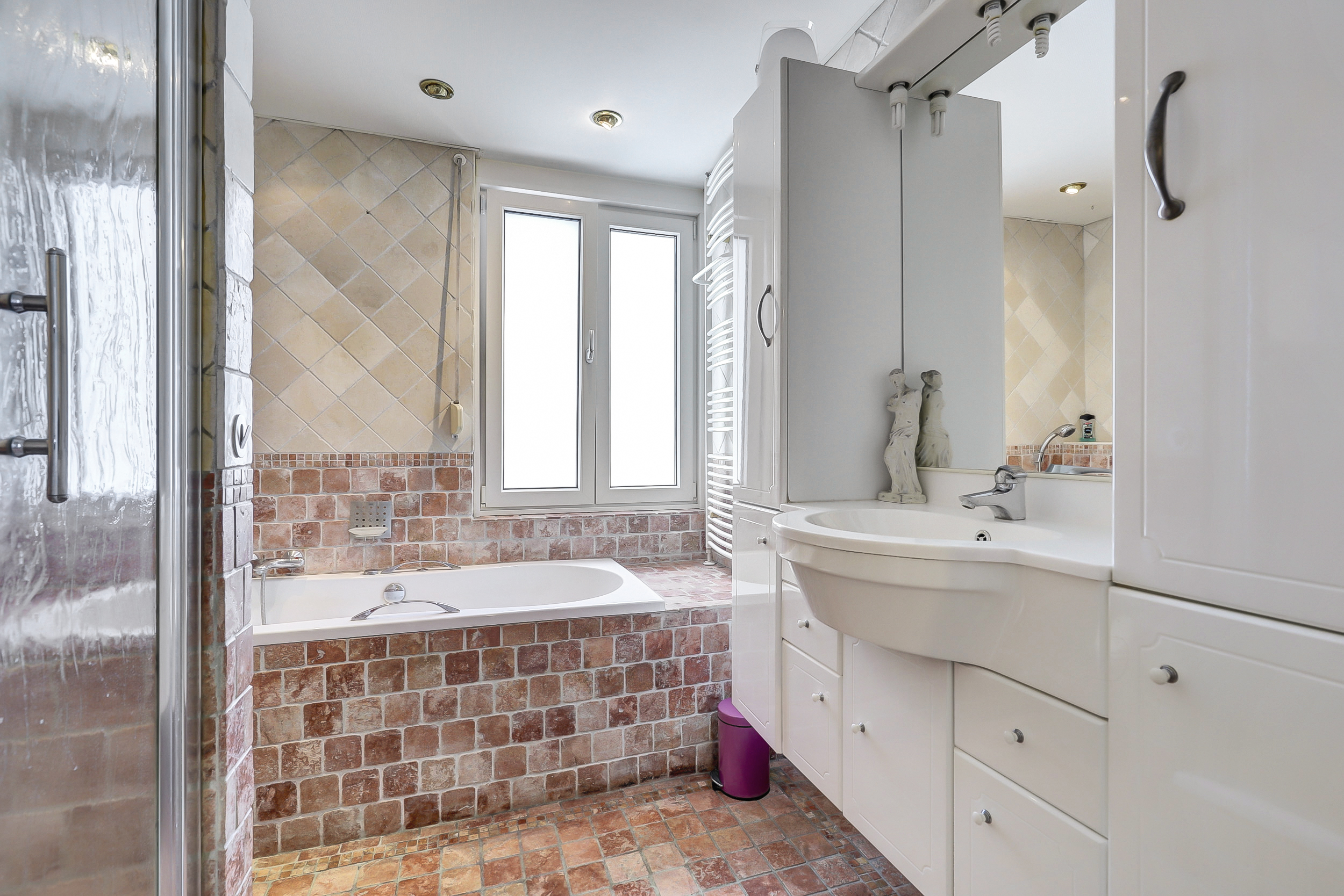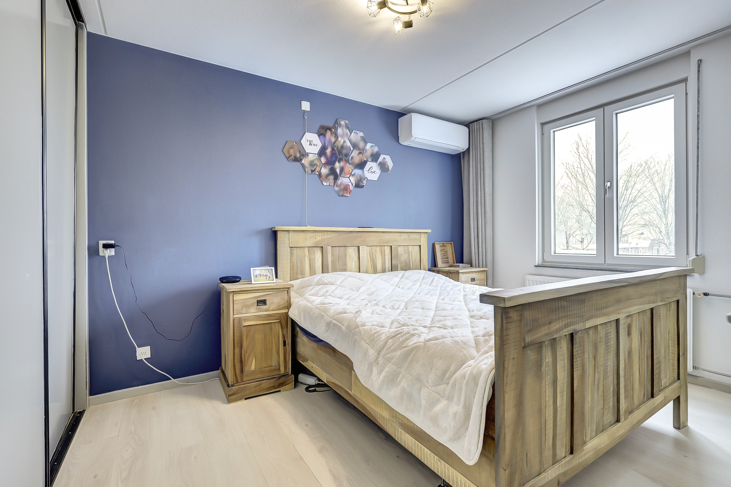 Overloop, 3 slaapkamers, de ouderslaapkamer is voorzien van airco (2023) en een schuifkast. Badkamer met ligbad (bubbelbad), douche, wastafel met meubel en toilet. Alle slaapkamers en de badkamer zijn voorzien van rolluiken.