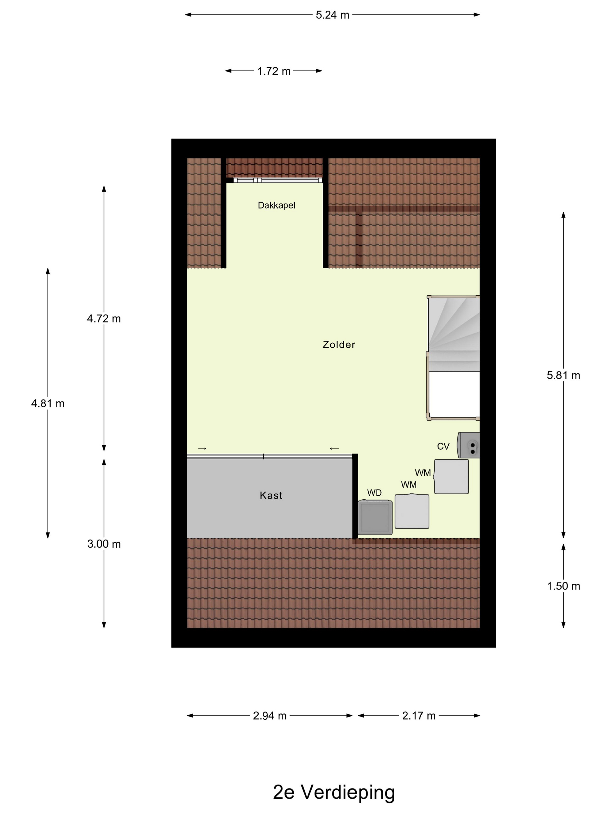 Via vaste trap bereikbaar. Grote zolderruimte met dakkapel. Hier kunnen nog extra slaapkamers gemaakt worden. CV Nefit HR combiketel bjr. 2021 vaste schuifkasten en wasmachine aansluiting.