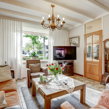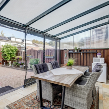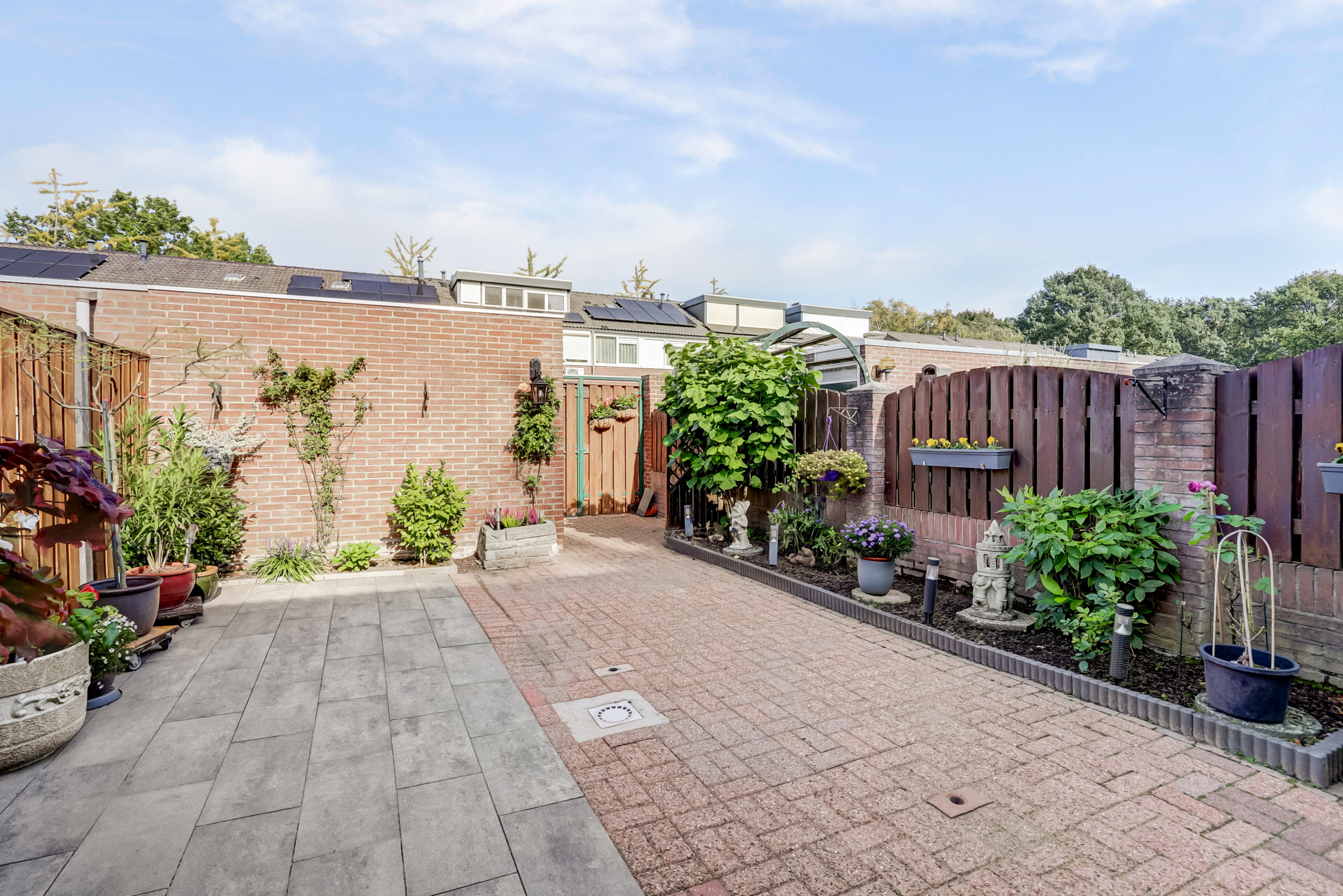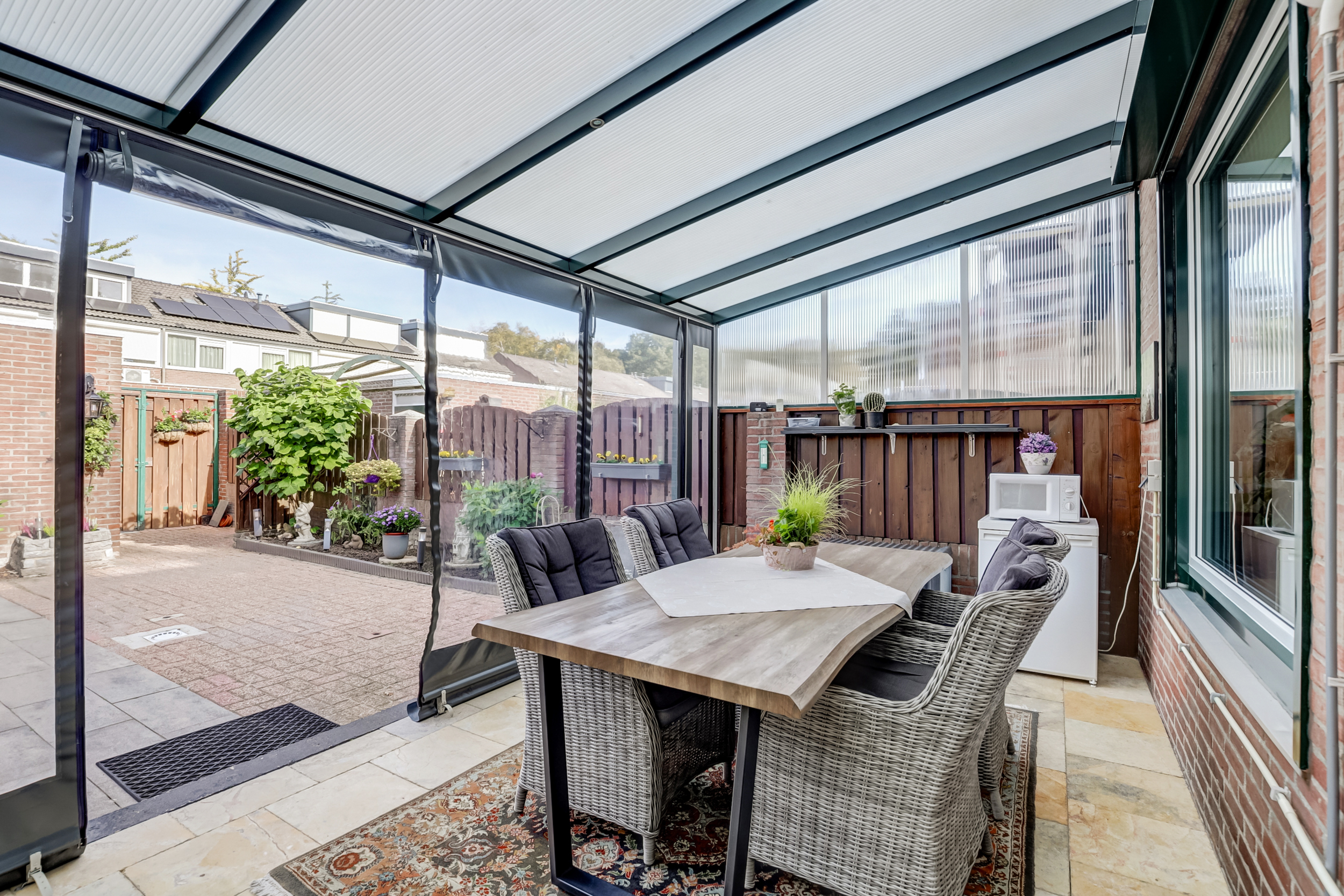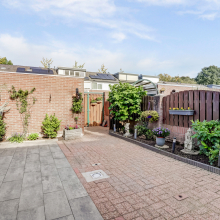De achtertuin is verzorgd aangelegd en beschikt over een luxe overkapping (ook dicht te maken met zeil) waar je tot in de late uurtjes kunt genieten van het buitenleven. Er is een praktische berging voor de fietsen en een achterom. Keurige aangelegde tuin!