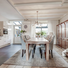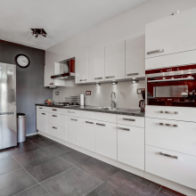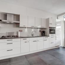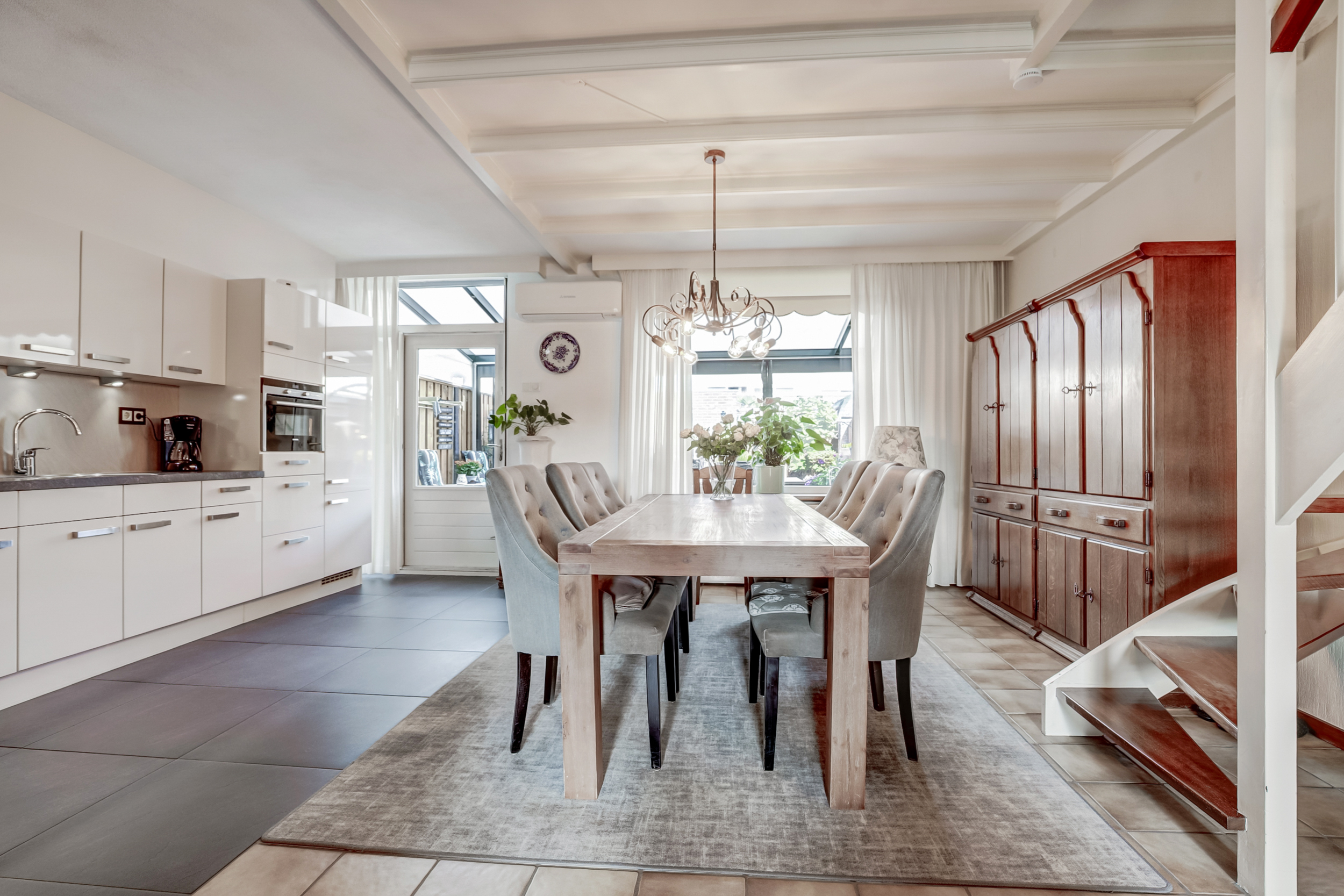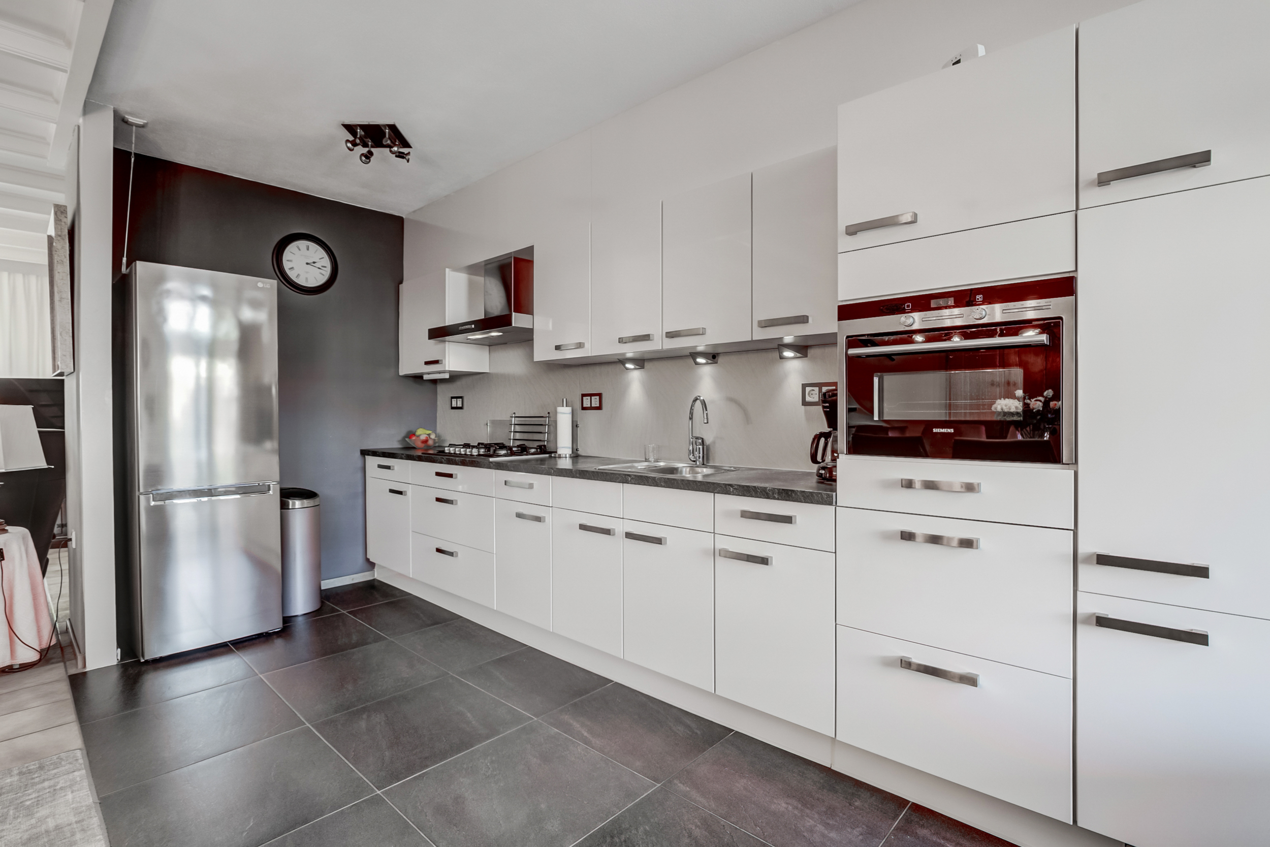 De woning is netjes onderhouden en voelt direct vertrouwd aan. Entree, hal, meterkast (’23) en apart toilet met fonteintje. De woonkamer is ruim en licht dankzij de grote ramen aan voor- en achterzijde. Aan de voorgevel is een elektrisch zonnescherm aanwezig. De open keuken (2010) biedt veel werk- en bergruimte en is voorzien van diverse inbouwapparatuur: 5-pits gasfornuis, afzuigkap, spoelbak, oven (magnetron functie defect). Moderne en tijdloze witte hoogglans keuken met veel bergruimte. Loopdeur naar de overkapping.