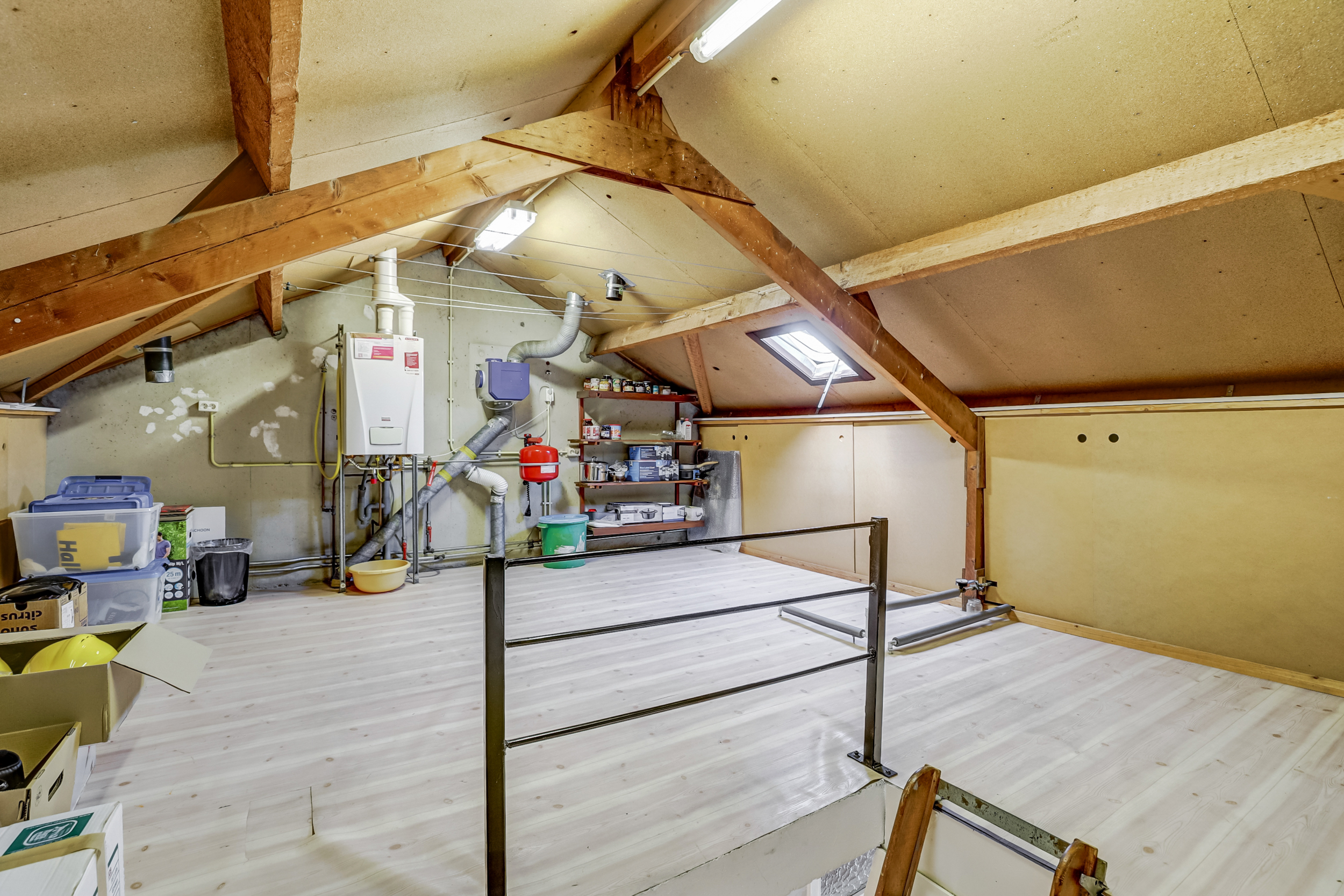 Middels vlizotrap te bereiken ruime zolderverdieping – ideaal als extra kamer, werkplek of gewoon voor extra bergruimte! HR CV-ketel (AWB, 2010, HUUR).
