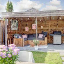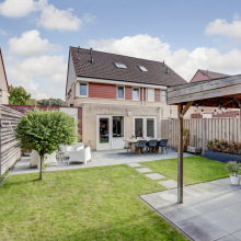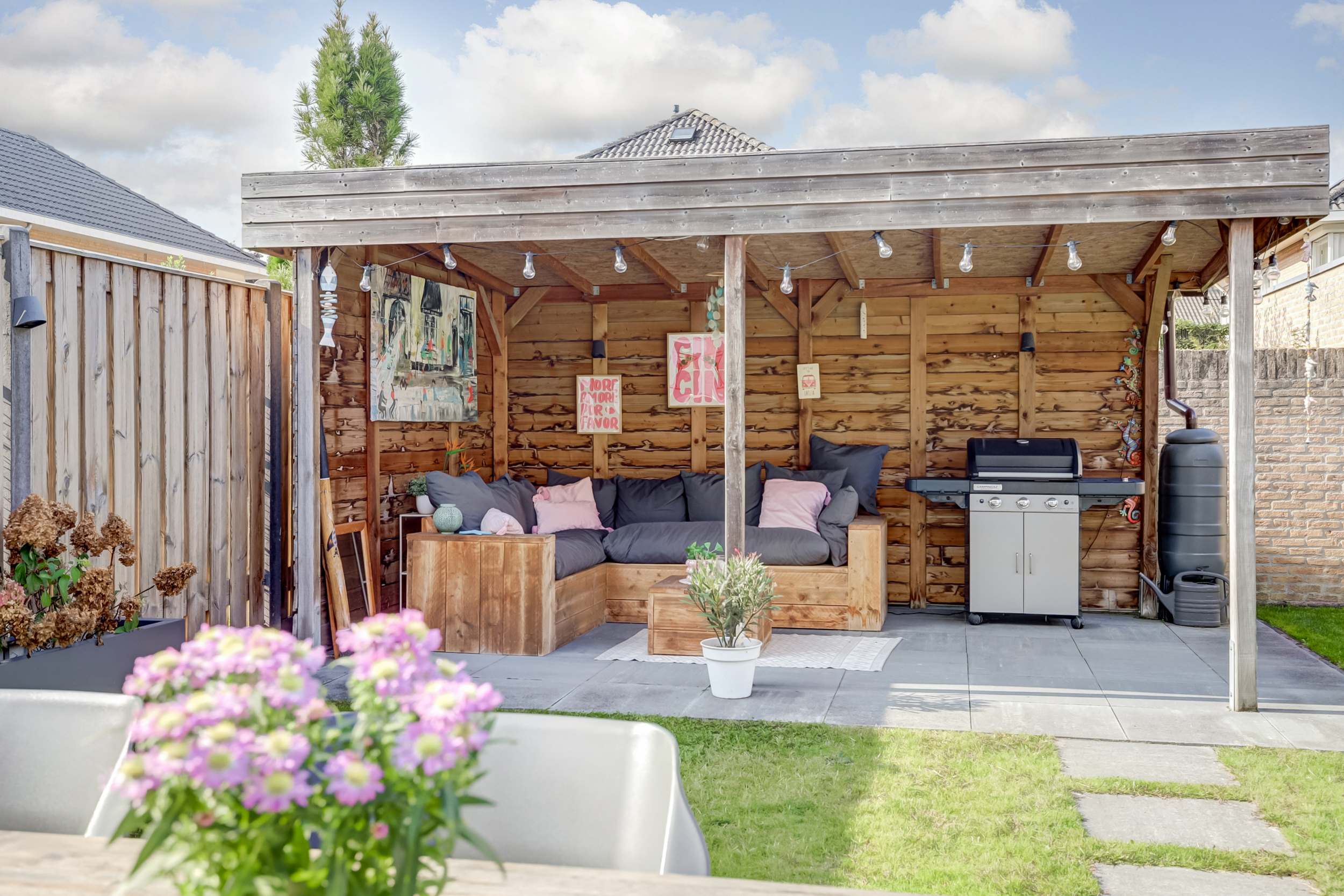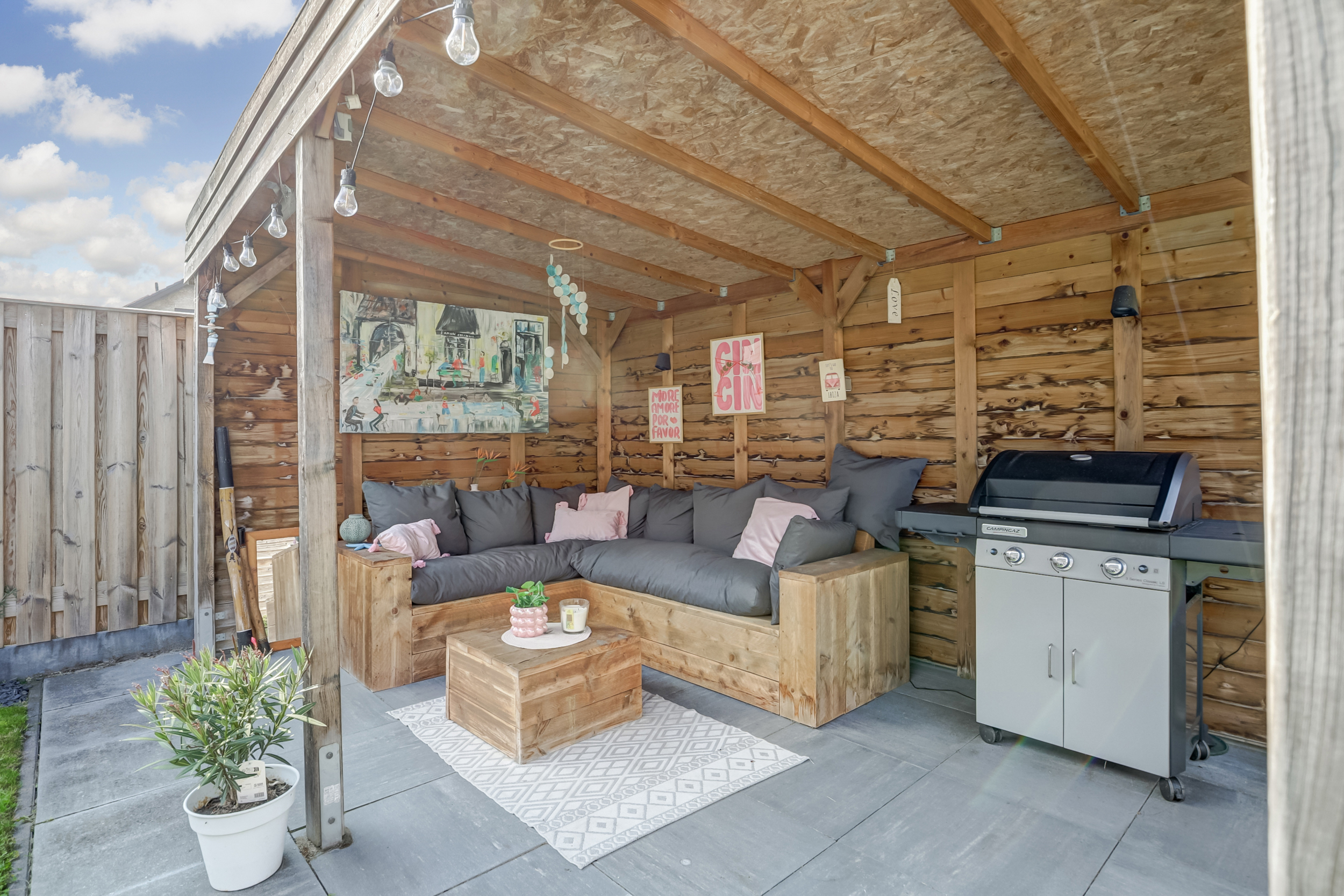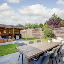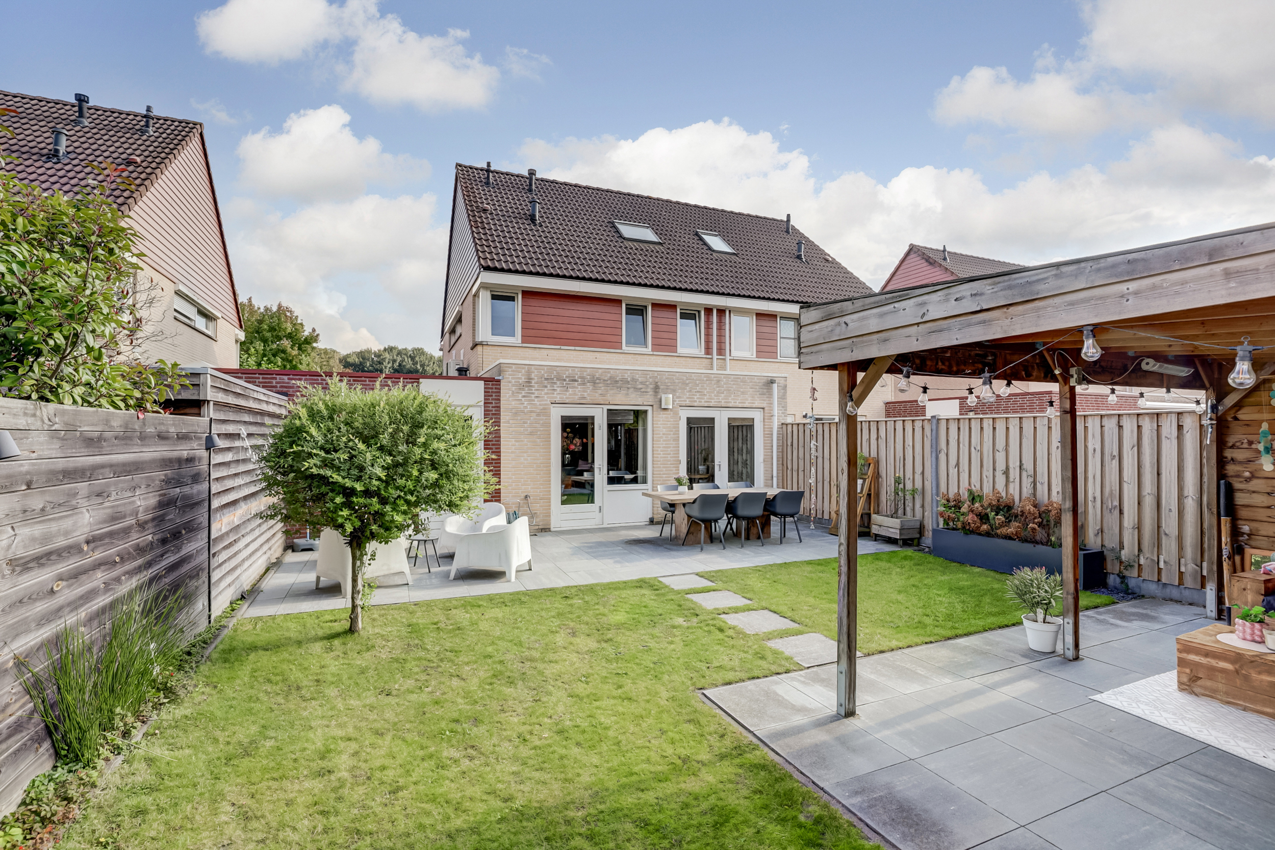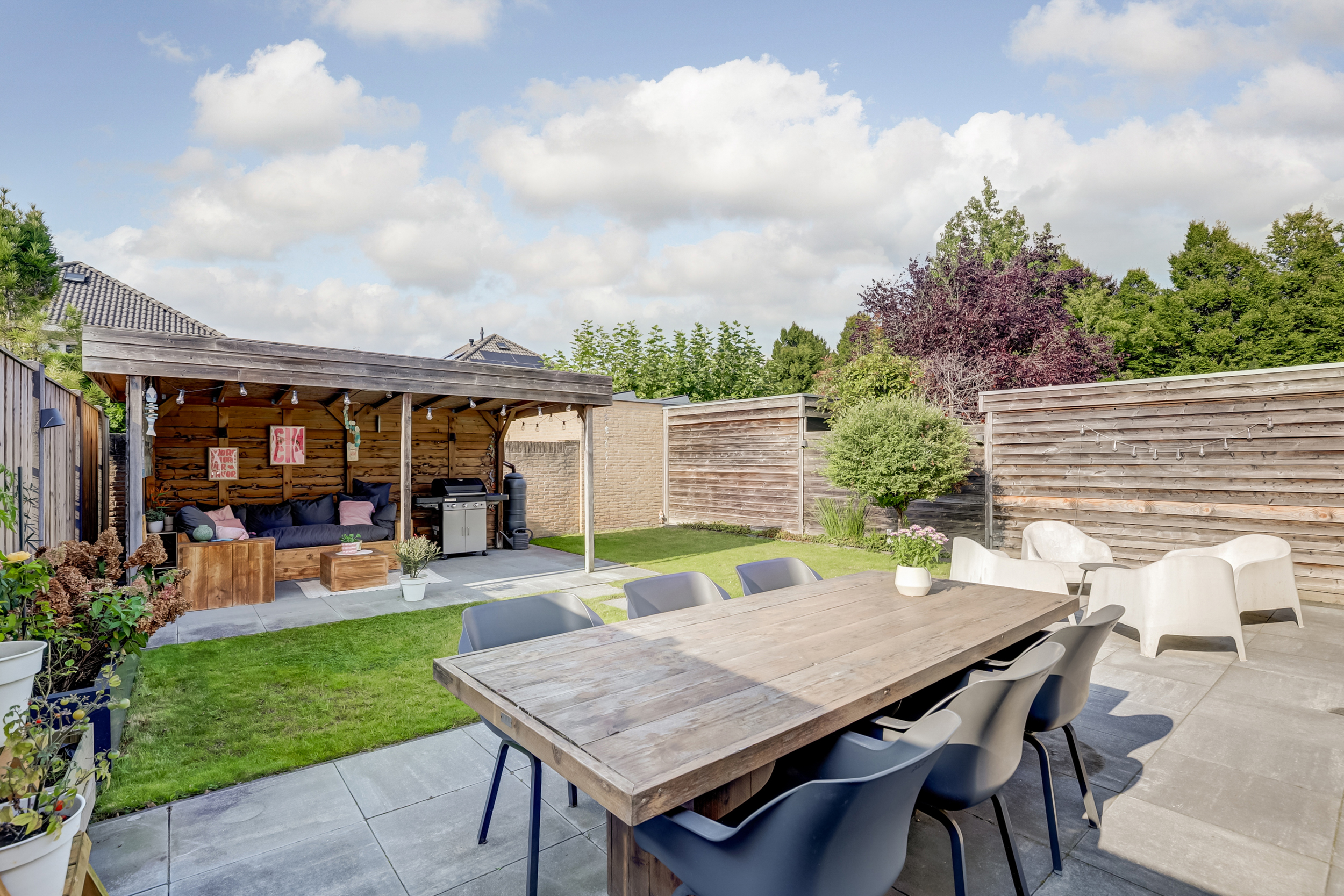 Royale oprit en aangelegde onderhoudsarme voortuin. Achtertuin met groot terras, gazon en mooie overkapping aan de achterzijde van de tuin waar je ook vroeg in het voorjaar al van het voorjaarszonnetje kunt genieten. De achtertuin is voorzien van schuttingen en beidt daardoor veel privacy.