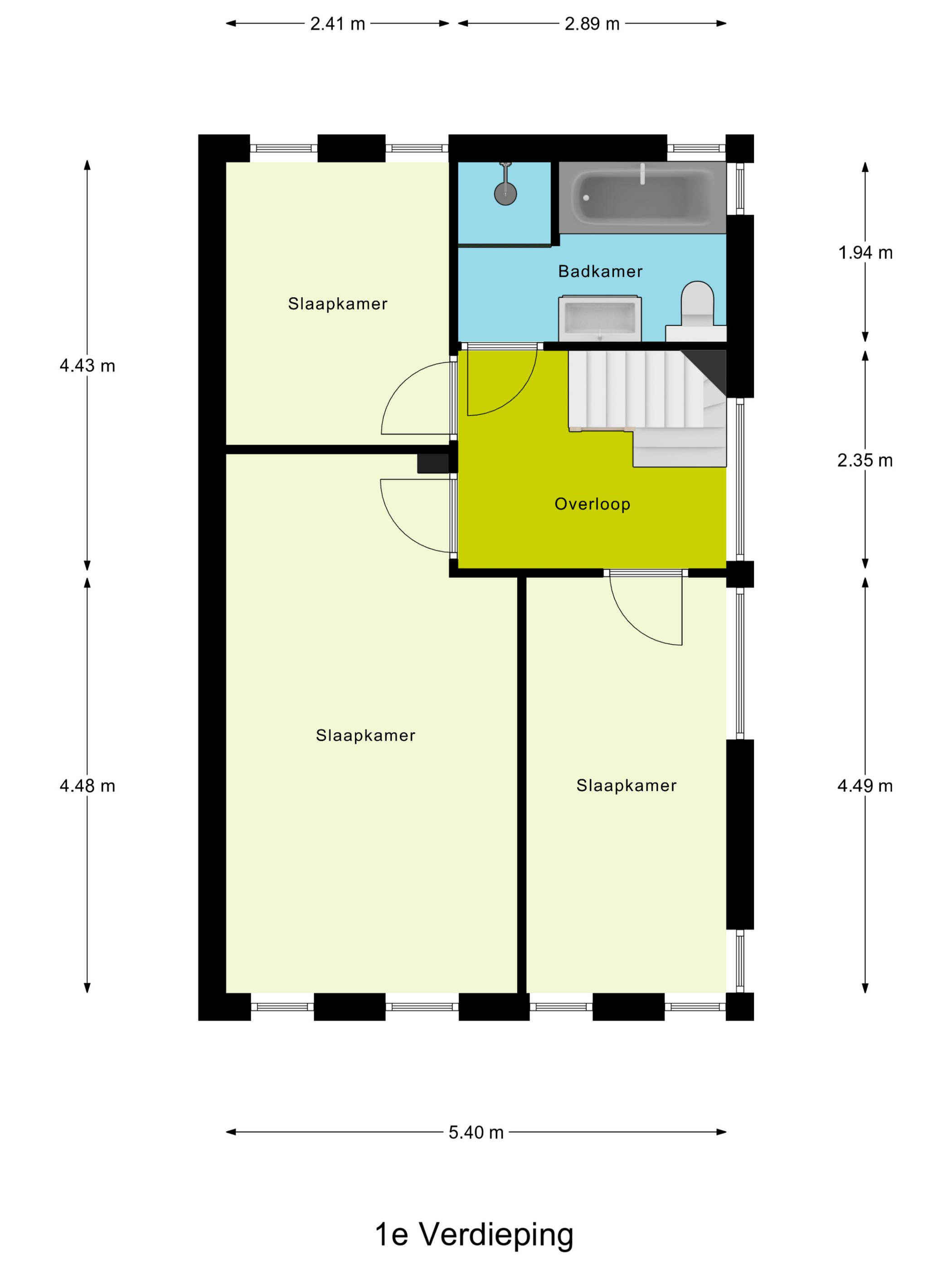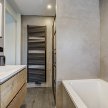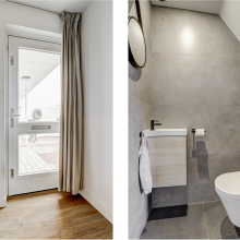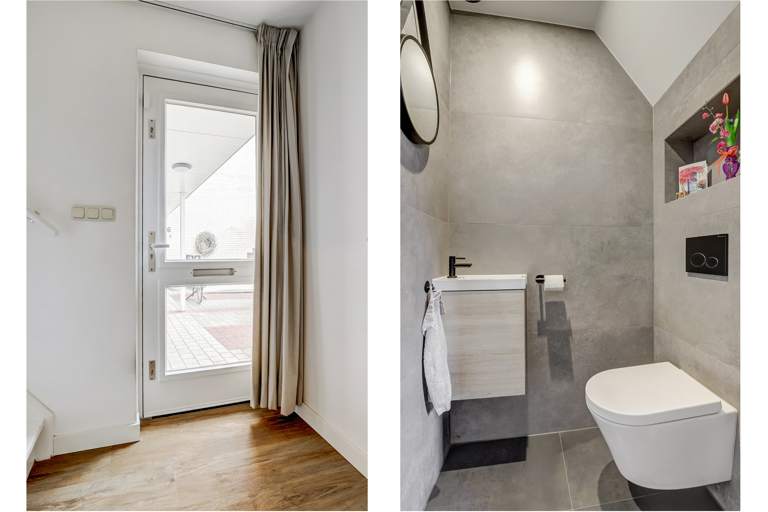Via de trap vanuit de hal bereik je de eerste verdieping. Op de overloop is de airco geplaatst, 3 slaapkamers, ruime badkamer die geheel verbouwd is in 2023. Hier vind je een inloopdouche, ligbad, toilet en een wastafelmeubel.