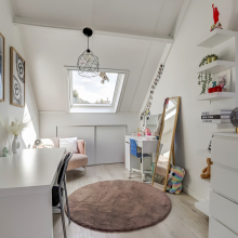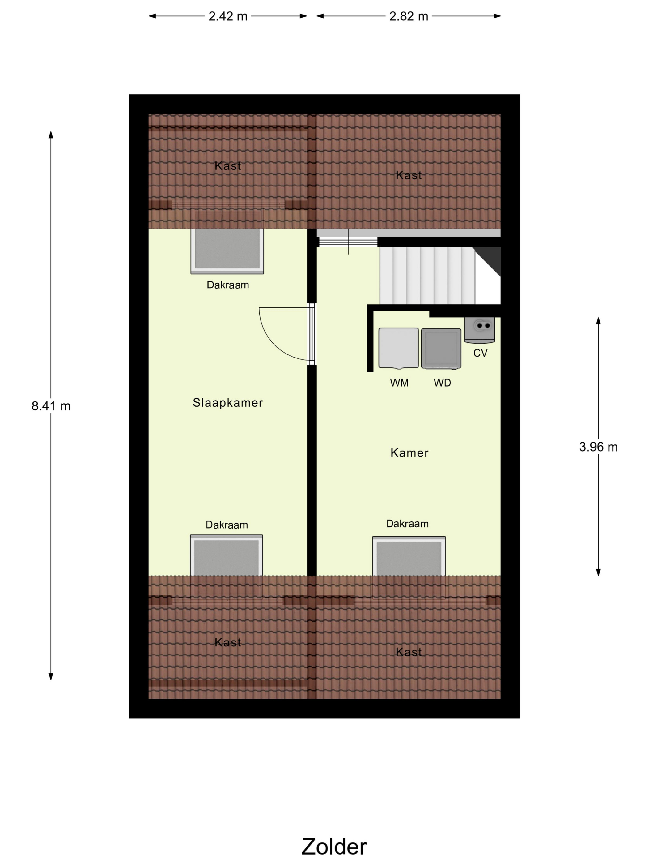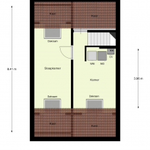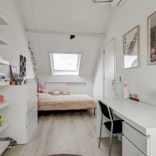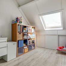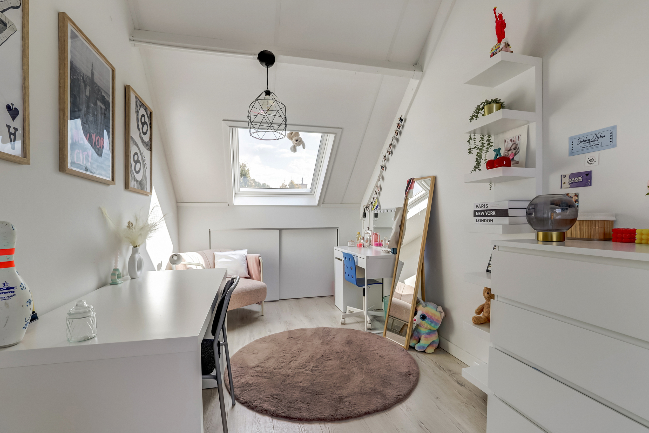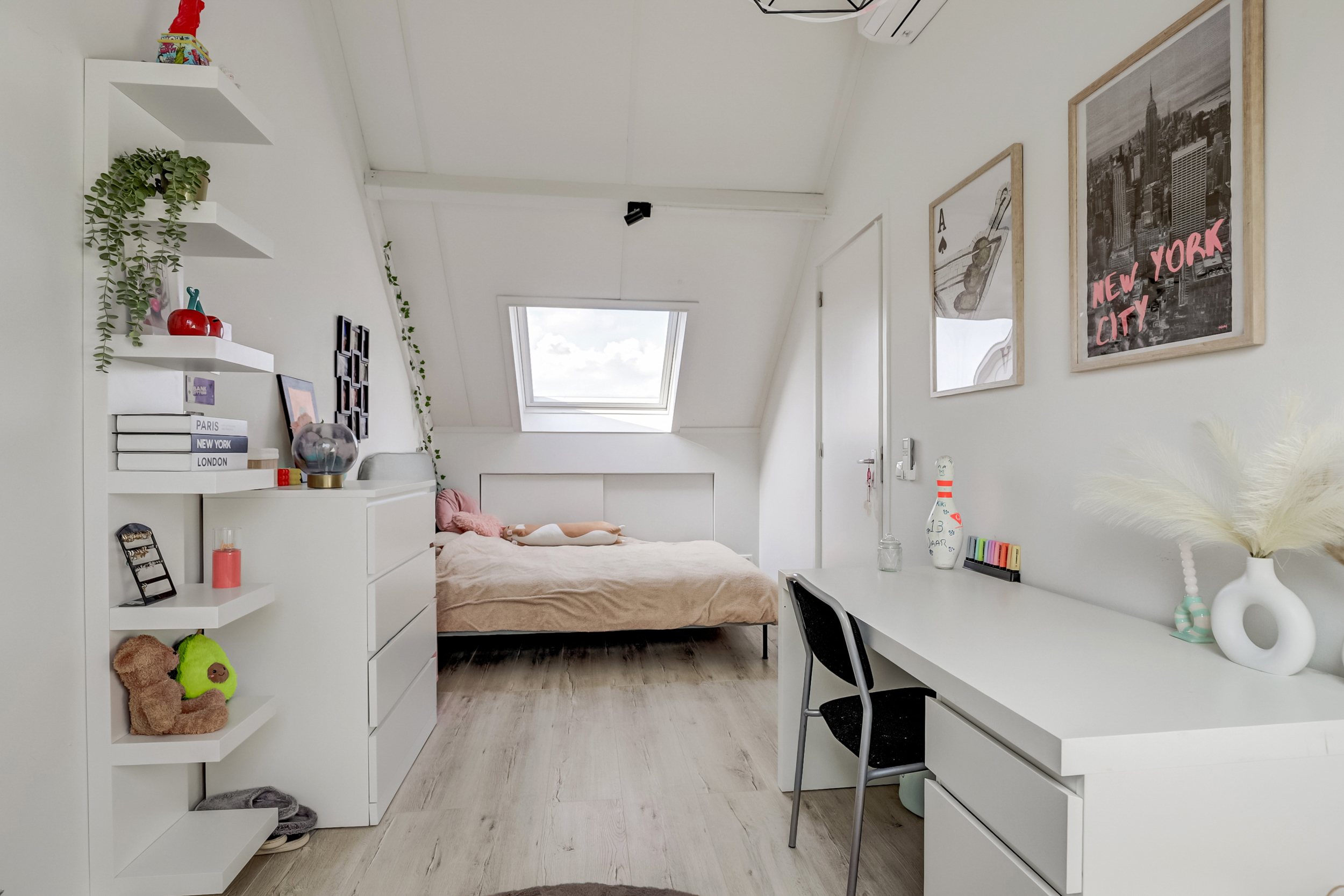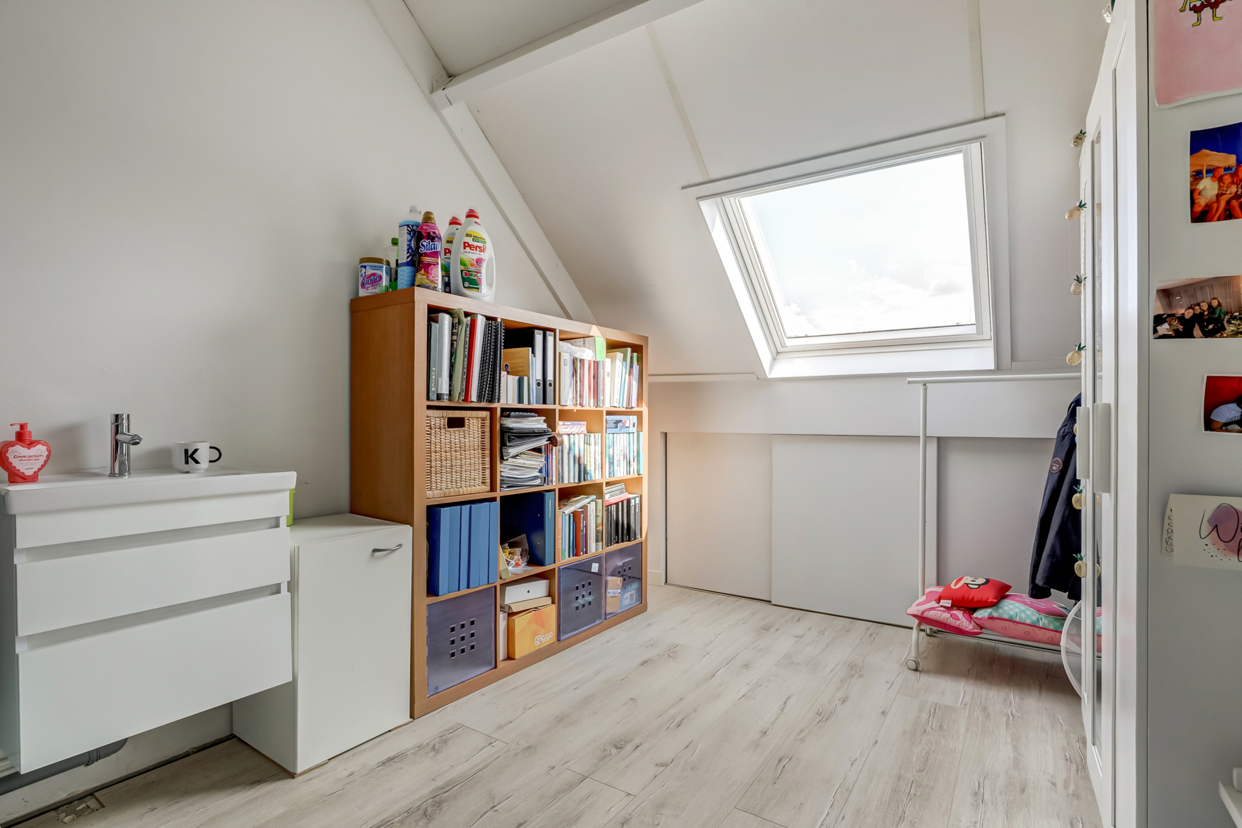 De tweede verdieping omvat een grote zolderkamer die veel lichtinval heeft door de twee grote dakvensters. Deze kamer is voorzien van airco. Er is een aparte ruimte die je voor diverse doeleinden kunt gebruiken zoals werk- of hobbyruimte. Ook deze ruimte heeft een mooie lichtinval. De aansluiting voor de wasmachine en de CV ketel (2012) en de WTW installatie zijn ook op deze verdieping aanwezig.