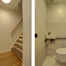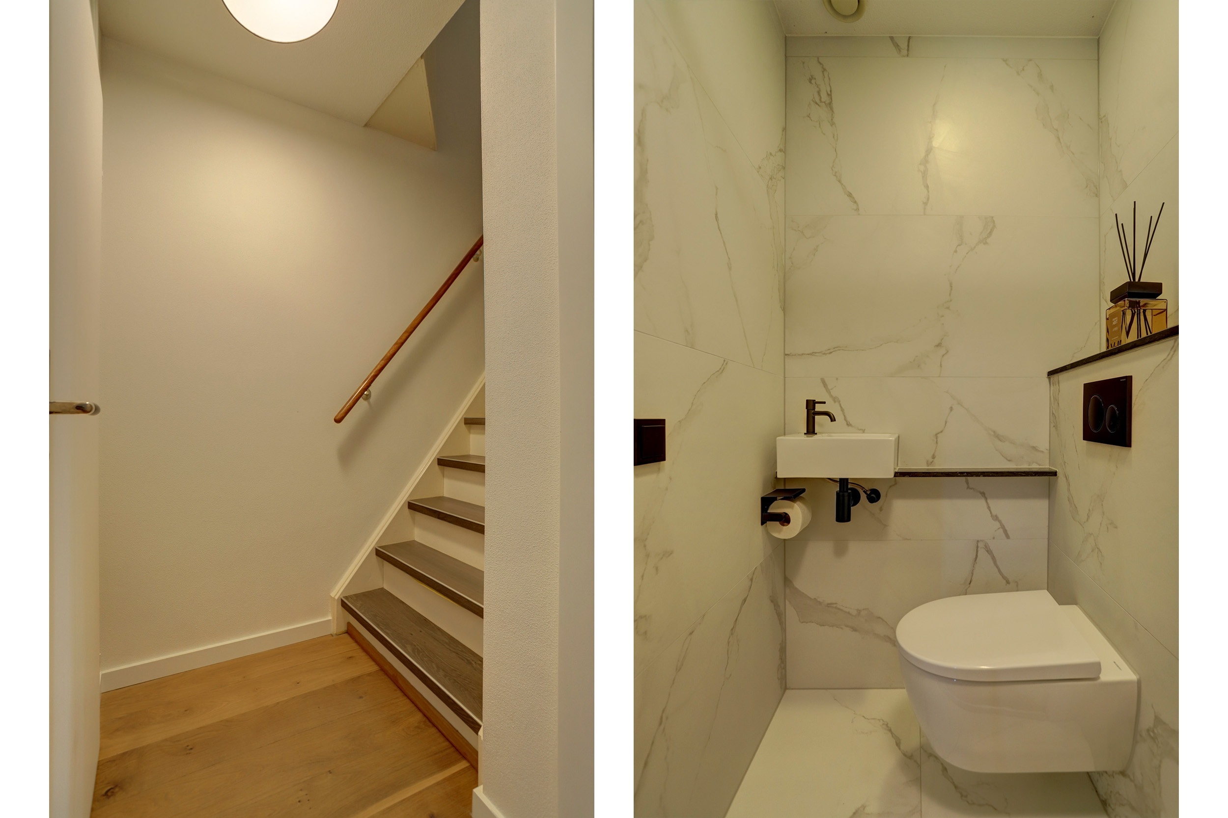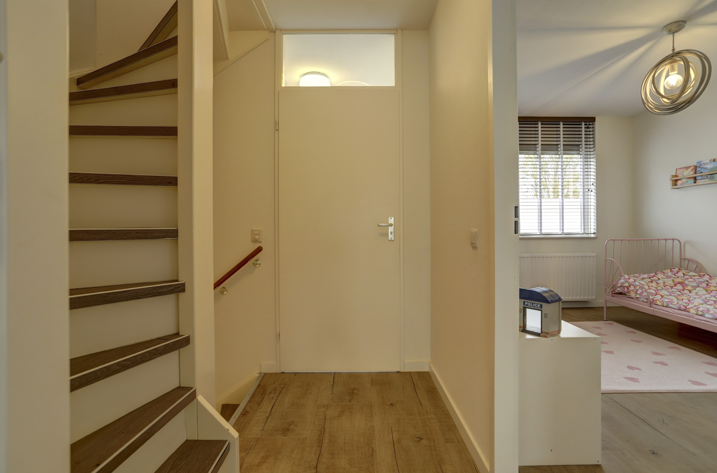Entree, hal, meterkast. Portaal met apart toilet (’24), trapkast en trapopgang.