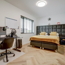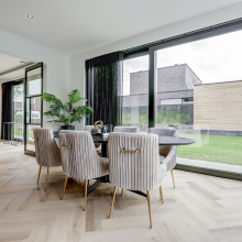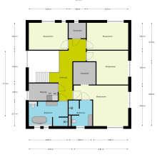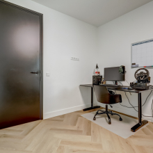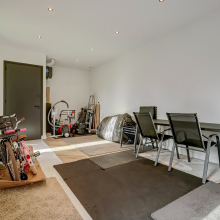 Via de oprit en de entree aan de zijkant van het huis kom je in de ruime hal met de spectaculaire vide. In de hal vind je de meterkast, de toiletruimte en is de kantoorruimte bereikbaar. De dubbele glazen deuren geven toegang tot de stijlvolle zitkamer met prachtige sfeerhaard (elektrisch), de extra hoge plafonds van 2.80 m versterken het ruimtelijk effect. Door de grote (schuif)puien is er veel lichtinval. De eetkamer is vanuit de zitkamer eveneens toegankelijk via dubbele glazen deuren. De eetkamer en keuken zijn ook lekker ruim en licht. De complete en luxe keuken is voorzien van een groot kookeiland en ook van alle apparatuur waarbij de koffiemachine en de Quooker natuurlijk niet ontbreken. De keuken is ook vanuit de hal via een glazen deur bereikbaar. Vanuit de keuken bereik je de extra speelkamer, hier staat ook de warmtepomp met boiler. Het gemetselde bijgebouw achter in de tuin is geïsoleerd, voorzien van verwarming/koeling, een toilet en er zijn aansluitingen voor een keuken aanwezig. Door de aanwezigheid van deze voorzieningen kun je dit gebouw multifunctioneel gebruiken. Elke ruimte, inclusief het bijgebouw, beschikt bovendien over een eigen internet- en TV-aansluiting, waardoor de woning volledig klaar is voor modern woon- en werkcomfort. Het bijgebouw beschikt daarnaast over een eigen ventilatiesysteem, waardoor ook hier altijd een prettig binnenklimaat heerst