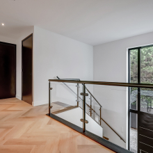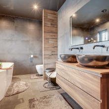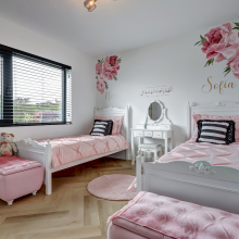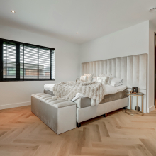 Via de mooie trappartij met op maat gemaakte trap kom je op de overloop van de eerste verdieping. Op deze verdieping vind je de royale masterbedroom met inloopkast en eigen badkamer voorzien van inloopdouche, wastafel met meubel en toilet. De overige 3 slaapkamers zijn eveneens ruim. Er is een 2e familie badkamer met inloopdouche, vrijstaand ligbad, dubbele wastafel met meubel, toilet en bidet. Er is een aparte waskamer aanwezig en er is een grote inloopkast via de overloop bereikbaar.