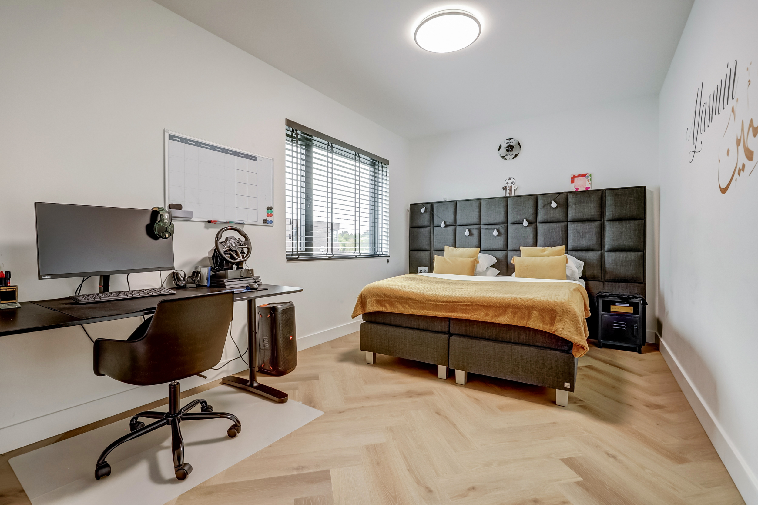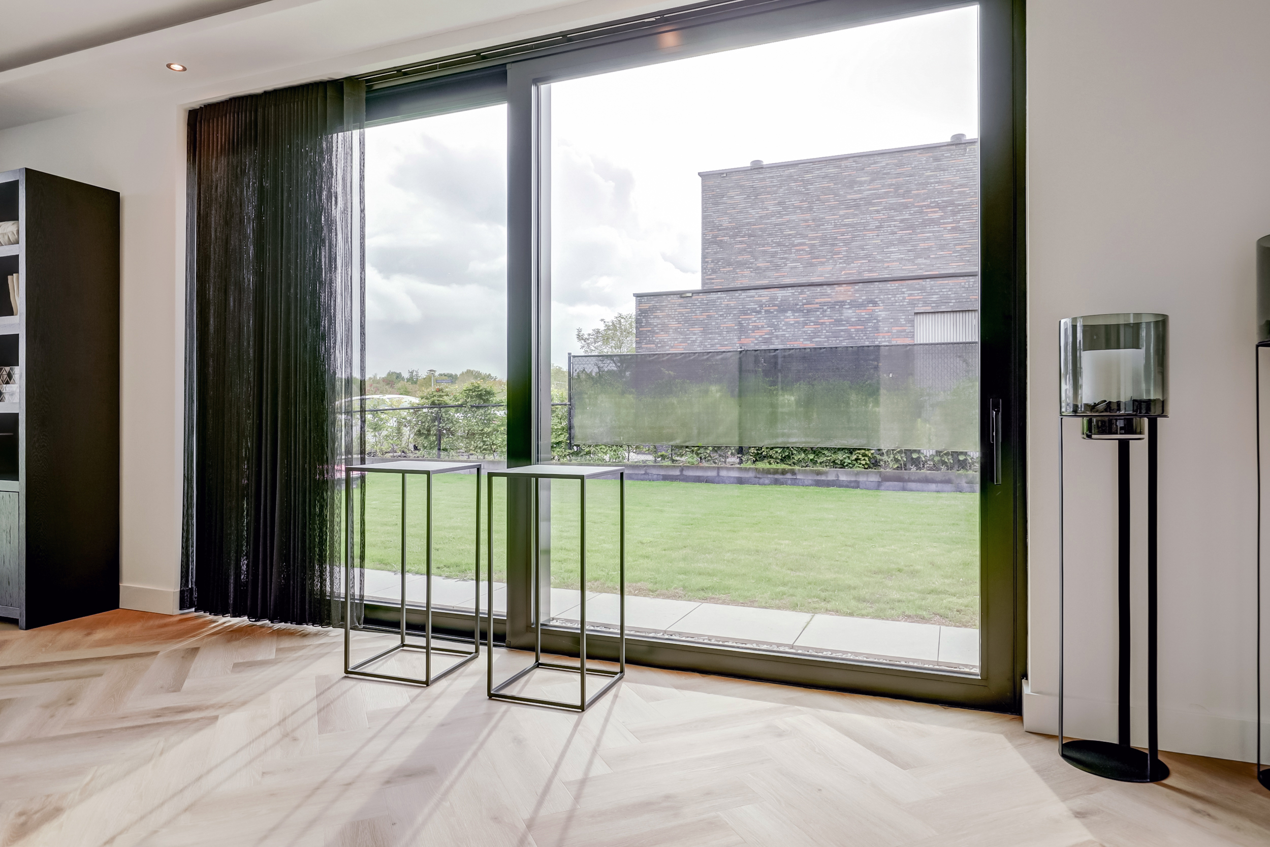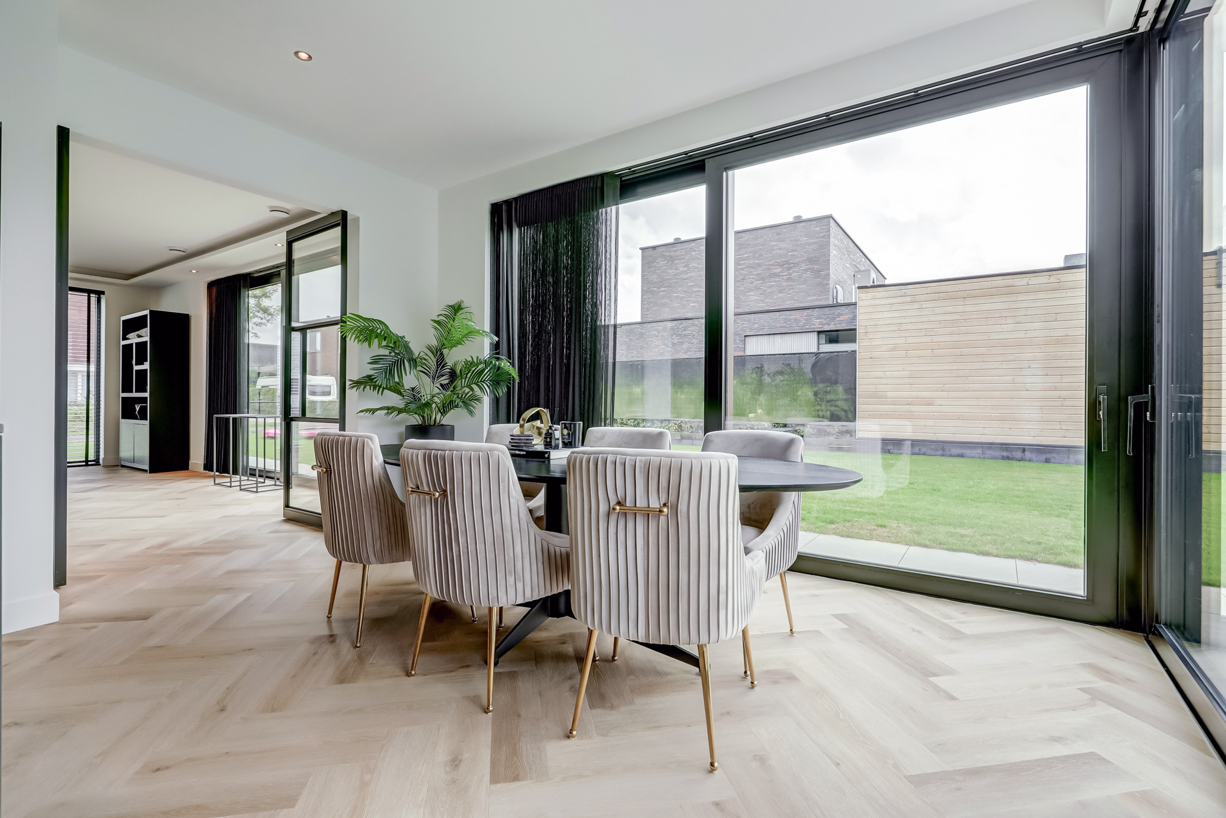 Via de oprit en de entree aan de zijkant van het huis kom je in de ruime hal met de spectaculaire vide. In de hal vind je de meterkast, de toiletruimte en is de kantoorruimte bereikbaar. De dubbele glazen deuren geven toegang tot de stijlvolle zitkamer met prachtige sfeerhaard (elektrisch), de extra hoge plafonds van 2.80 m versterken het ruimtelijk effect. Door de grote (schuif)puien is er veel lichtinval. De eetkamer is vanuit de zitkamer eveneens toegankelijk via dubbele glazen deuren. De eetkamer en keuken zijn ook lekker ruim en licht. De complete en luxe keuken is voorzien van een groot kookeiland en ook van alle apparatuur waarbij de koffiemachine en de Quooker natuurlijk niet ontbreken. De keuken is ook vanuit de hal via een glazen deur bereikbaar. Vanuit de keuken bereik je de extra speelkamer, hier staat ook de warmtepomp met boiler. Het gemetselde bijgebouw achter in de tuin is geïsoleerd, voorzien van verwarming/koeling, een toilet en er zijn aansluitingen voor een keuken aanwezig. Door de aanwezigheid van deze voorzieningen kun je dit gebouw multifunctioneel gebruiken. Elke ruimte, inclusief het bijgebouw, beschikt bovendien over een eigen internet- en TV-aansluiting, waardoor de woning volledig klaar is voor modern woon- en werkcomfort. Het bijgebouw beschikt daarnaast over een eigen ventilatiesysteem, waardoor ook hier altijd een prettig binnenklimaat heerst