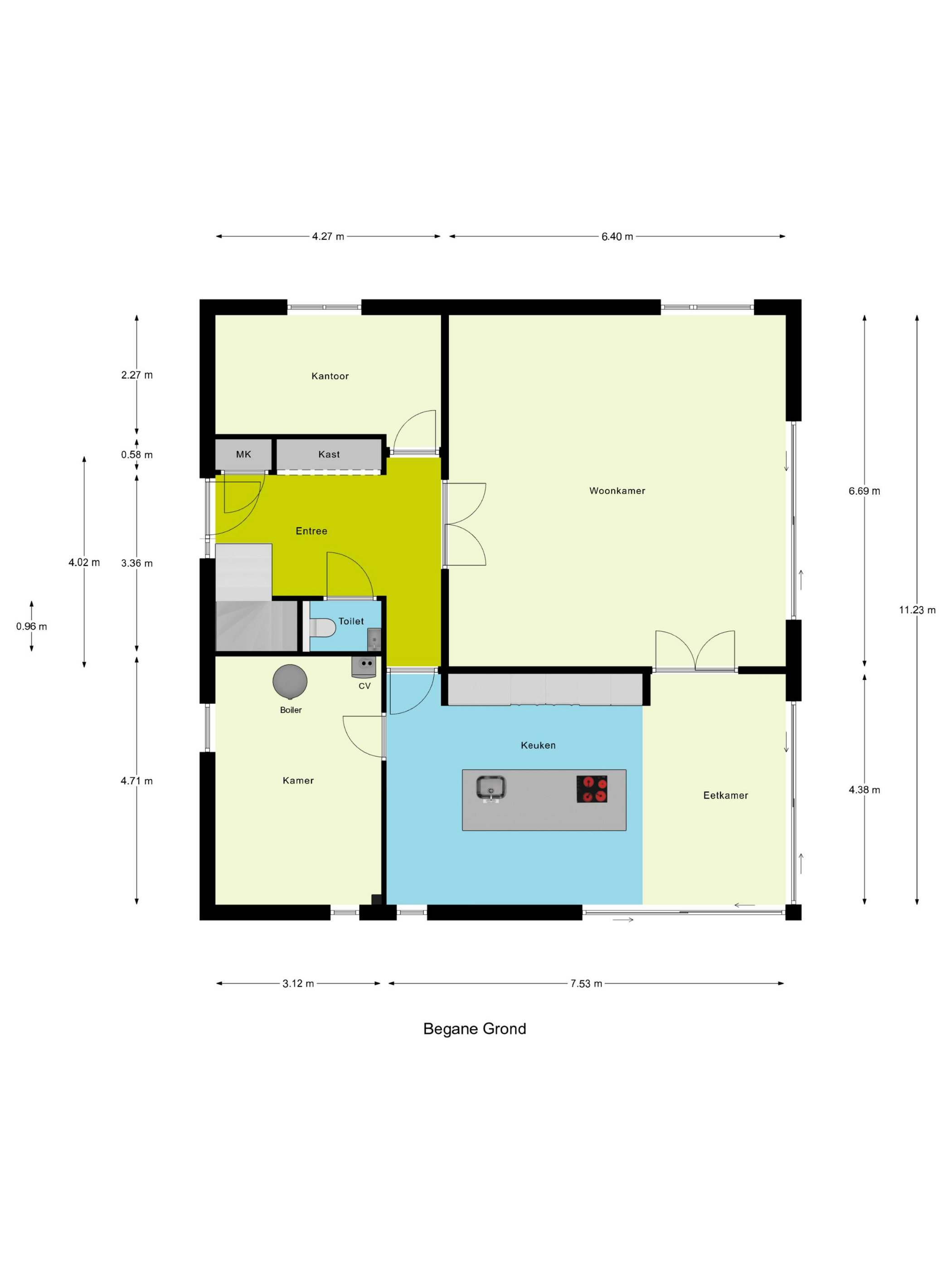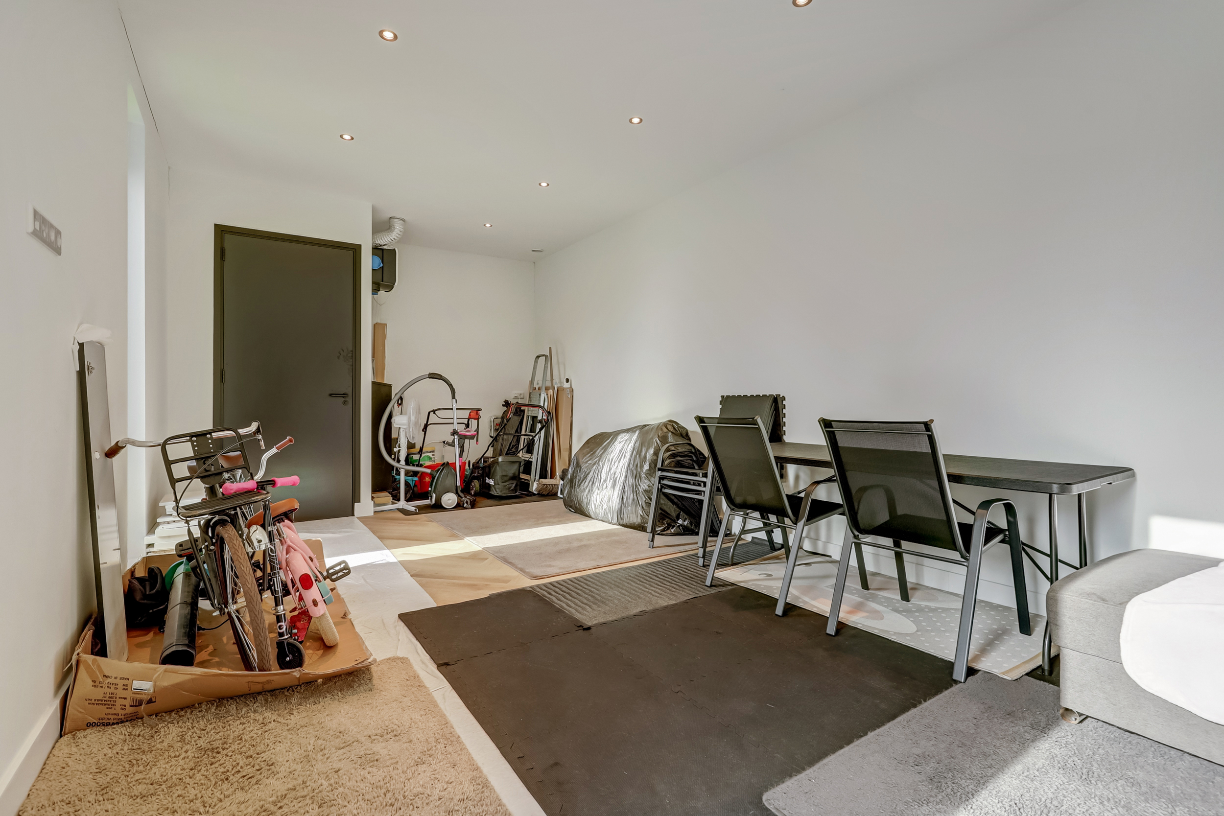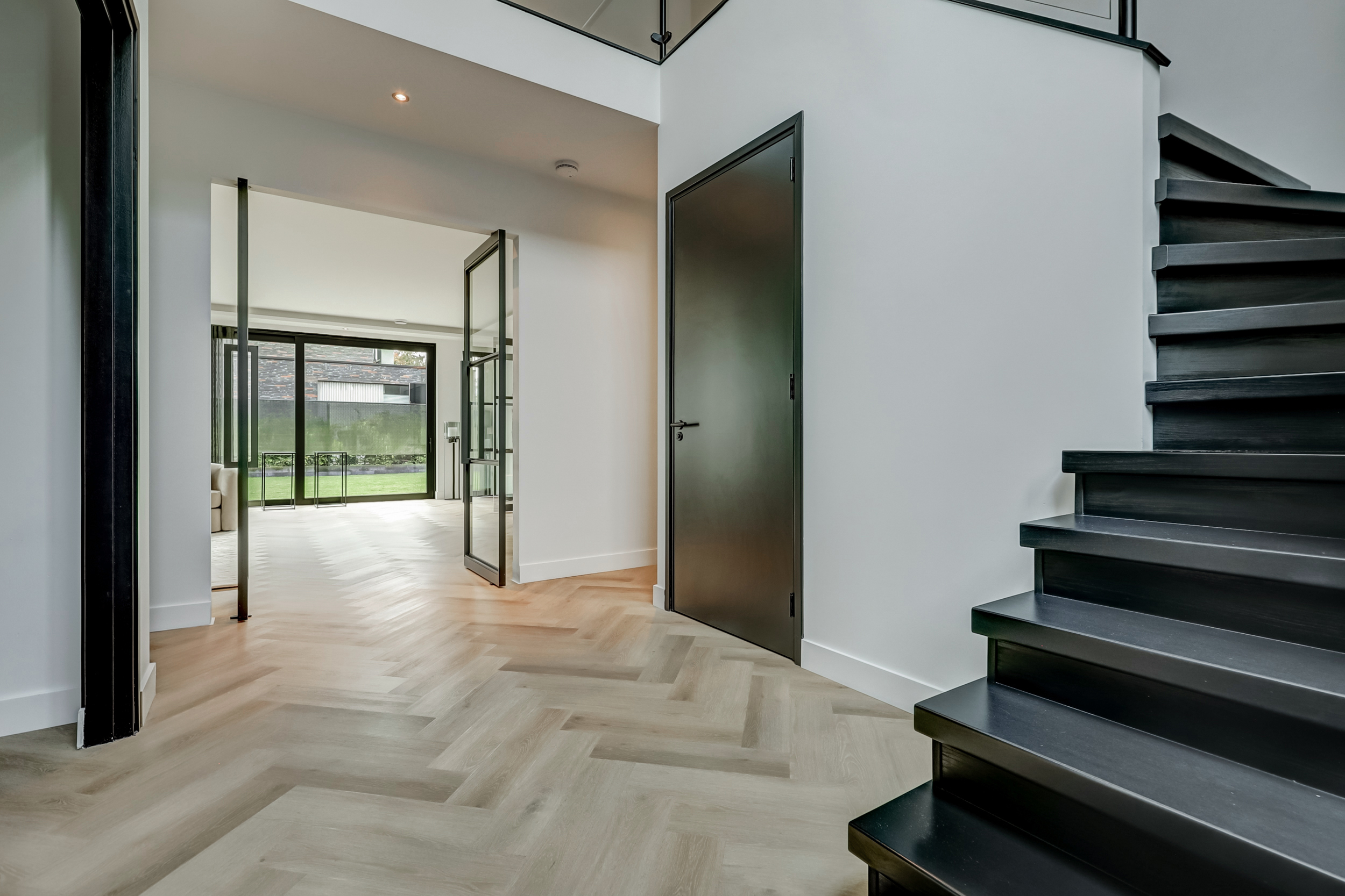Via de oprit en de entree aan de zijkant van het huis kom je in de ruime hal met de spectaculaire vide. In de hal vind je de meterkast, de toiletruimte en is de kantoorruimte bereikbaar. De dubbele glazen deuren geven toegang tot de stijlvolle zitkamer met prachtige sfeerhaard (elektrisch), de extra hoge plafonds van 2.80 m versterken het ruimtelijk effect. Door de grote (schuif)puien is er veel lichtinval. De eetkamer is vanuit de zitkamer eveneens toegankelijk via dubbele glazen deuren. De eetkamer en keuken zijn ook lekker ruim en licht. De complete en luxe keuken is voorzien van een groot kookeiland en ook van alle apparatuur waarbij de koffiemachine en de Quooker natuurlijk niet ontbreken. De keuken is ook vanuit de hal via een glazen deur bereikbaar. Vanuit de keuken bereik je de extra speelkamer, hier staat ook de warmtepomp met boiler. Het gemetselde bijgebouw achter in de tuin is geïsoleerd, voorzien van verwarming/koeling, een toilet en er zijn aansluitingen voor een keuken aanwezig. Door de aanwezigheid van deze voorzieningen kun je dit gebouw multifunctioneel gebruiken. Elke ruimte, inclusief het bijgebouw, beschikt bovendien over een eigen internet- en TV-aansluiting, waardoor de woning volledig klaar is voor modern woon- en werkcomfort. Het bijgebouw beschikt daarnaast over een eigen ventilatiesysteem, waardoor ook hier altijd een prettig binnenklimaat heerst