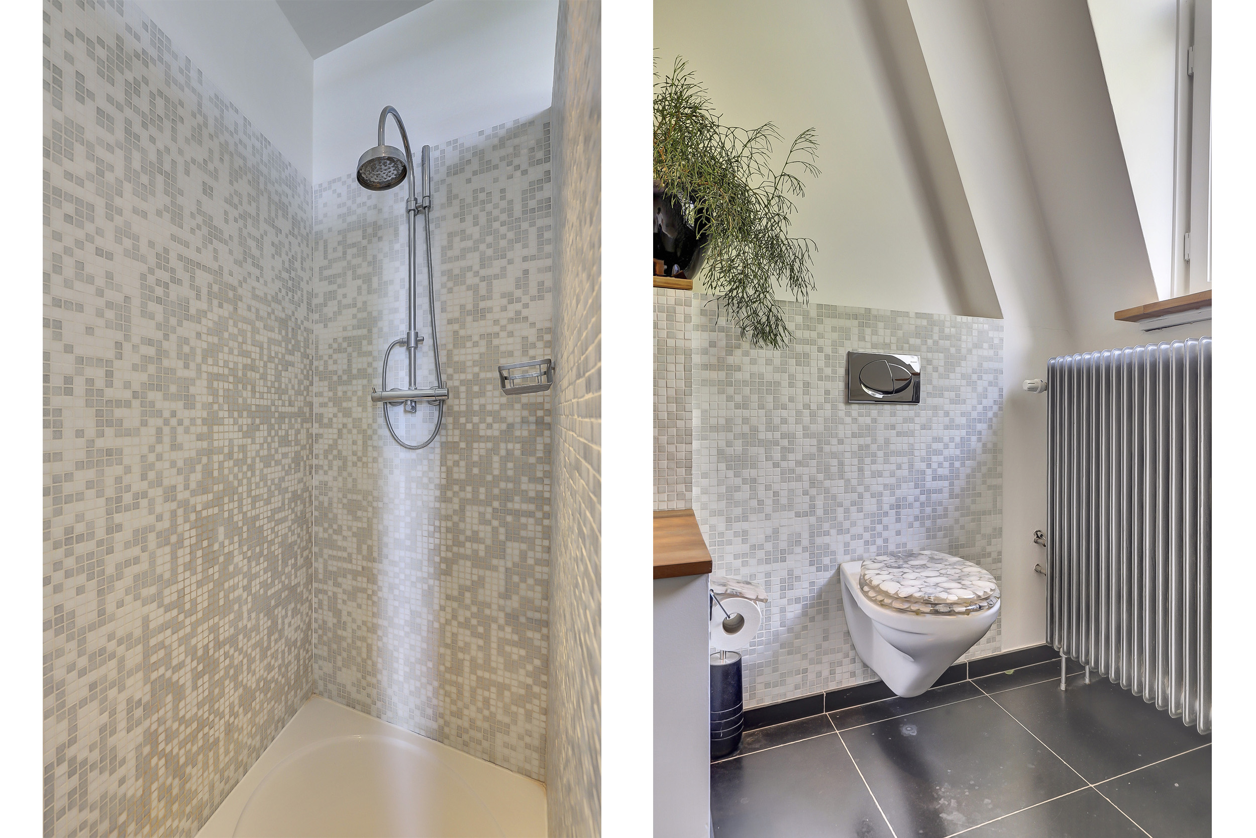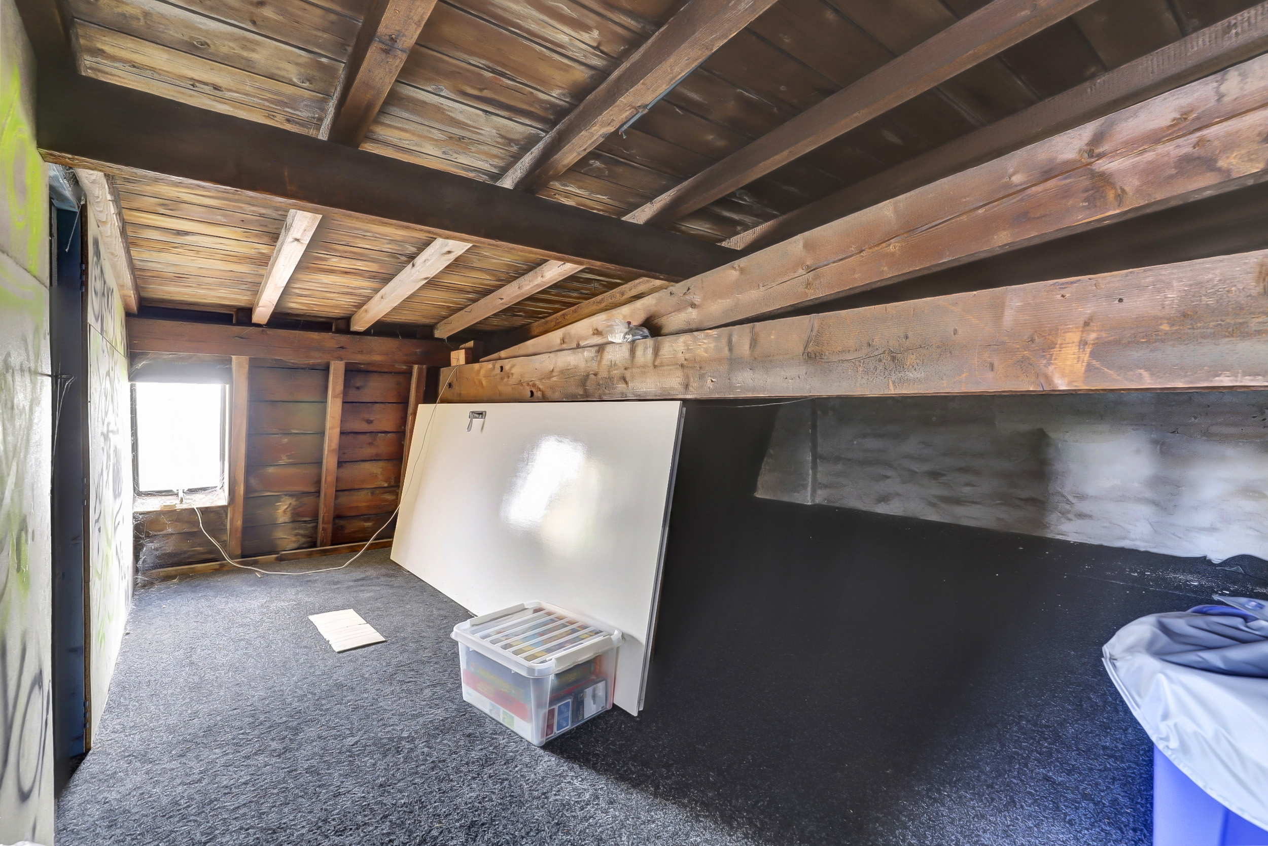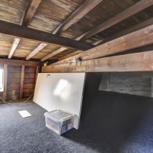 Vaste trap naar de zolder (opbouw) voor bergruimte. HR CV ketel (Nefit, 2016, eigendom).