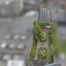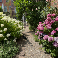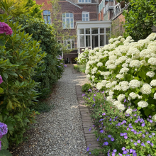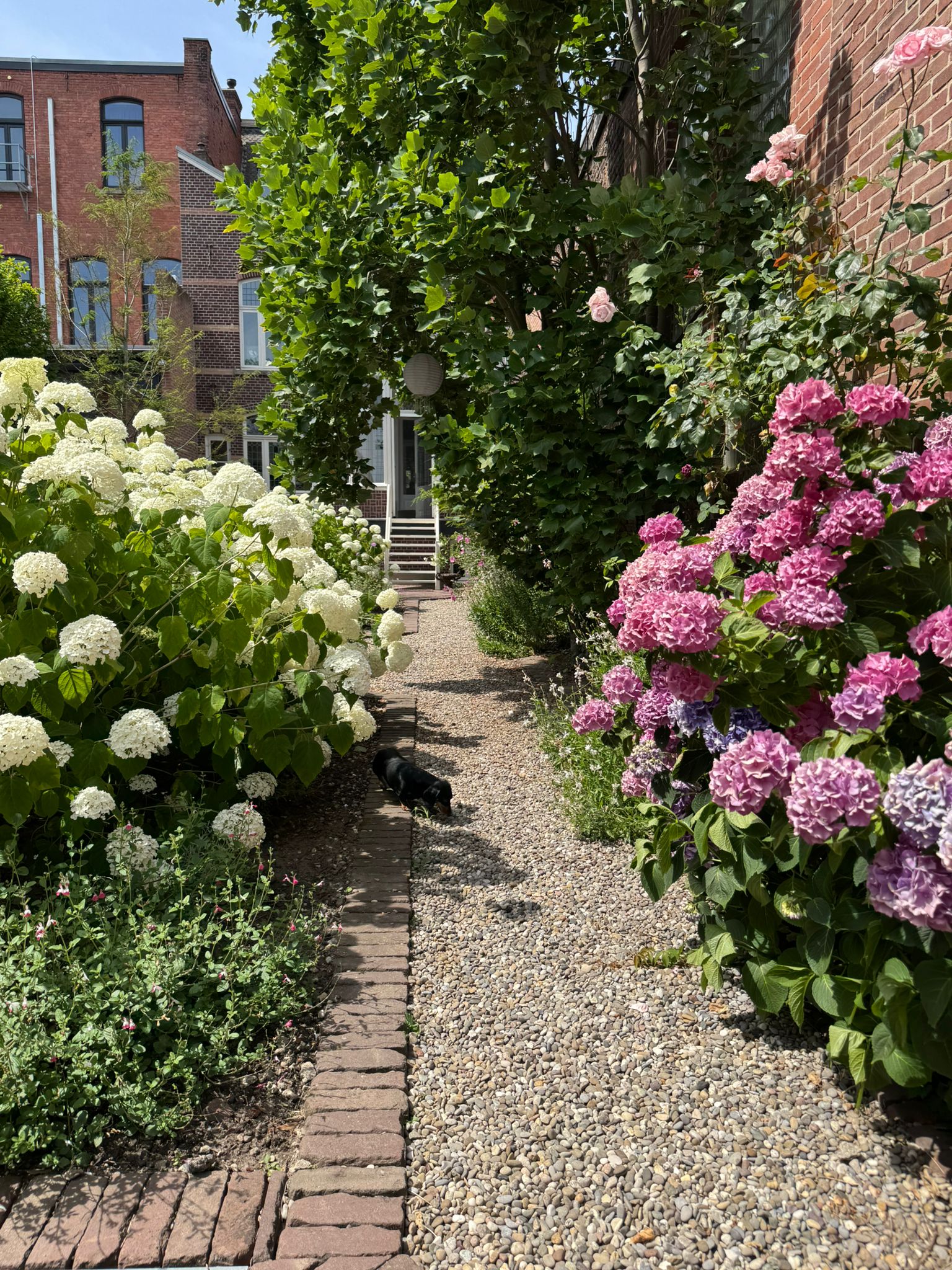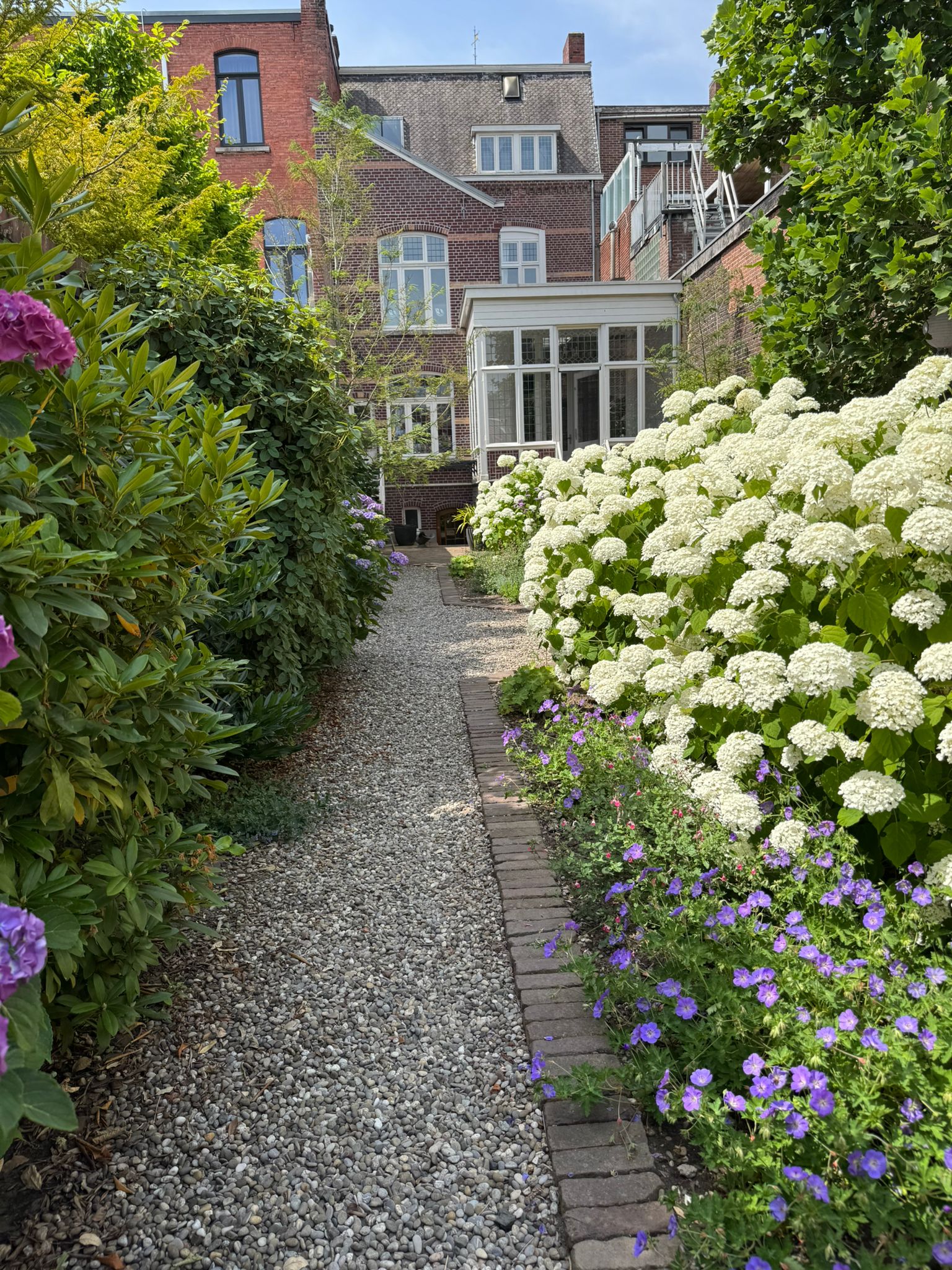 Fraai, onder architectuur aangelegde tuin met kiezelpaden, groenborders en beklinkerde terrassen. Een groene oase van rust aan het centrum!