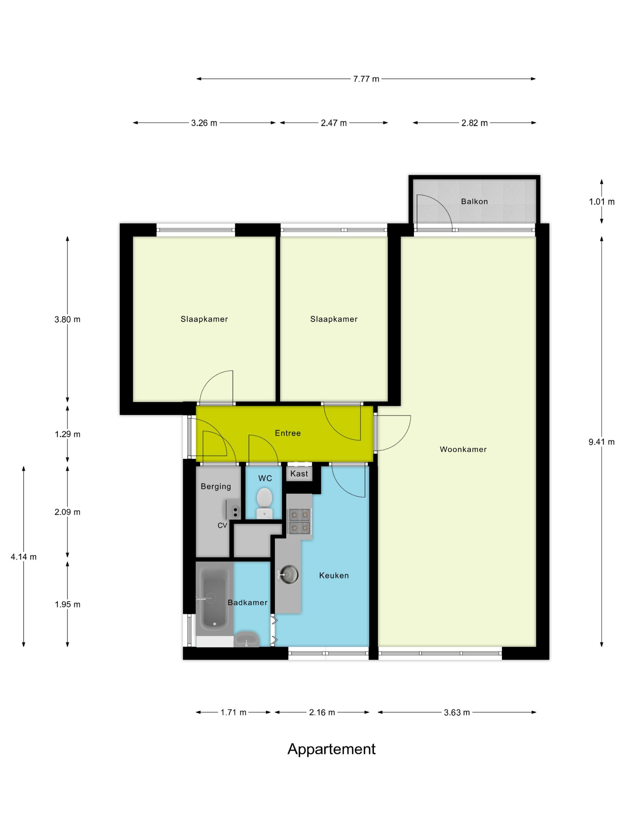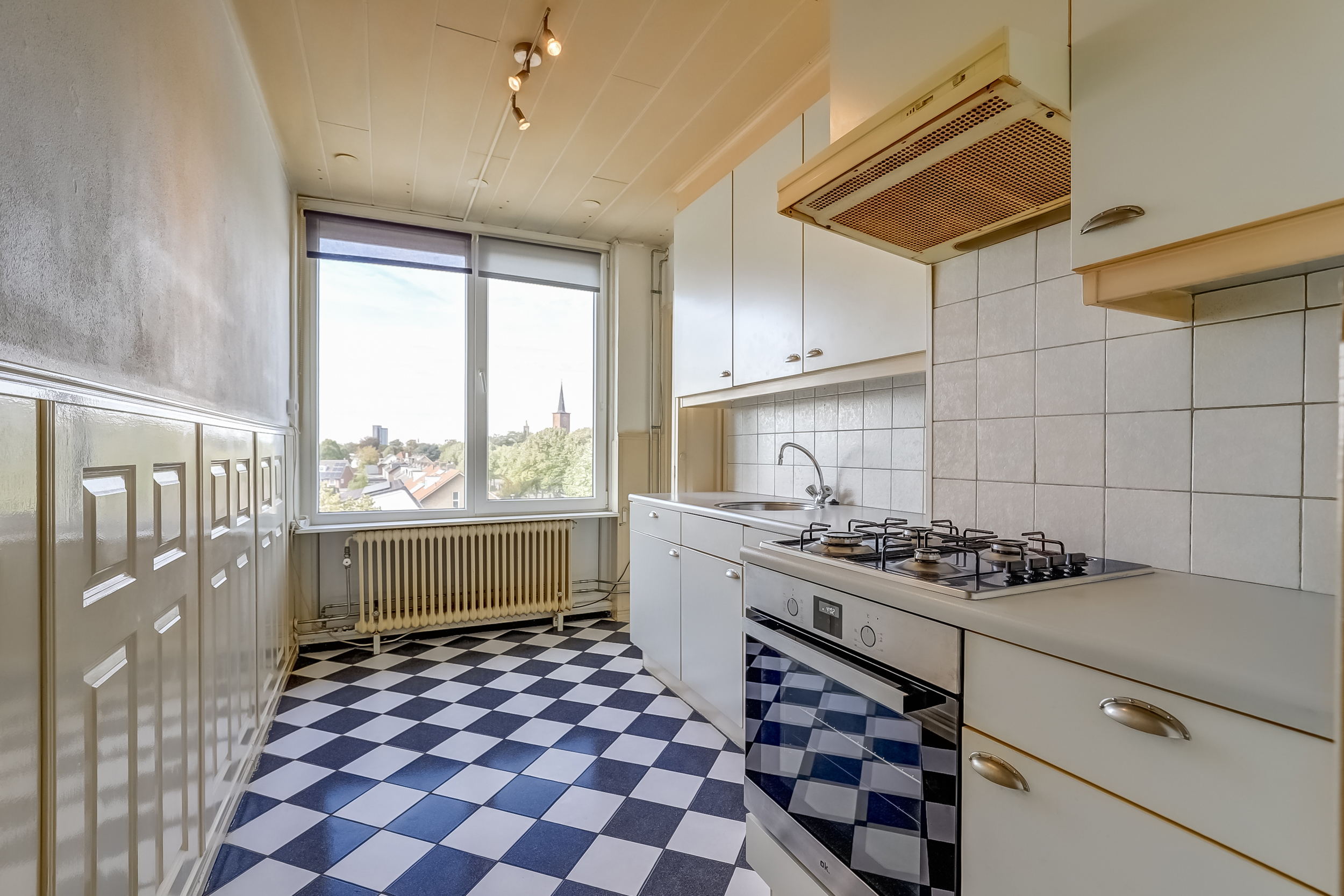 Via het trappenhuis bereik je de 4e verdieping. Het appartement is als volgt ingedeeld: hal met intercominstallatie, ruime en lichte woonkamer met mooi uitzicht, het balkon is via de woonkamer toegankelijk. Gesloten keuken met oven en gaskomfoor. Twee slaapkamers die beide zijn voorzien van radiatoren, toilet, berging met wasmachine aansluiting en HR Cv-ketel (2017). Ruime badkamer met ligbad, en wastafel. De woonkamer en keuken zijn voorzien van elektrisch bedienbare rolluiken.