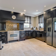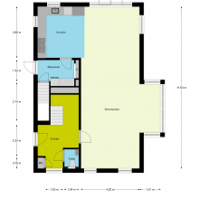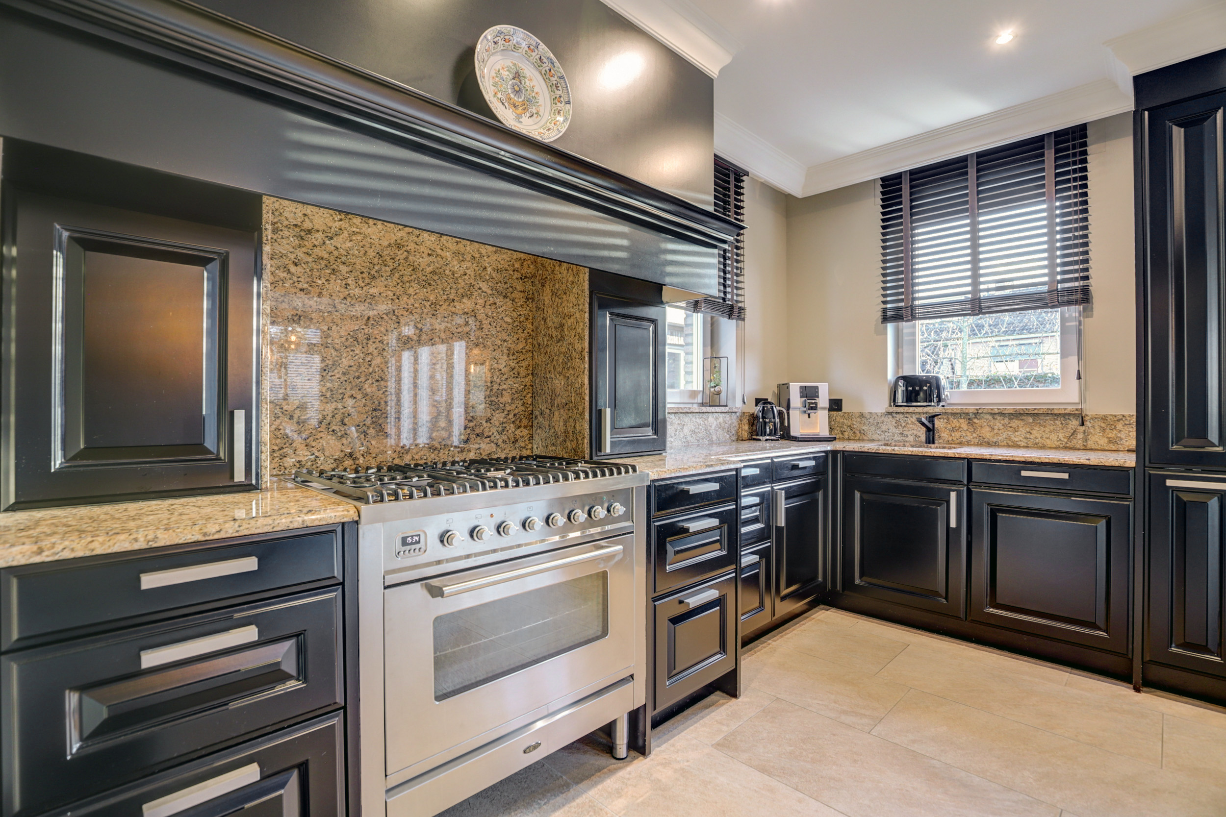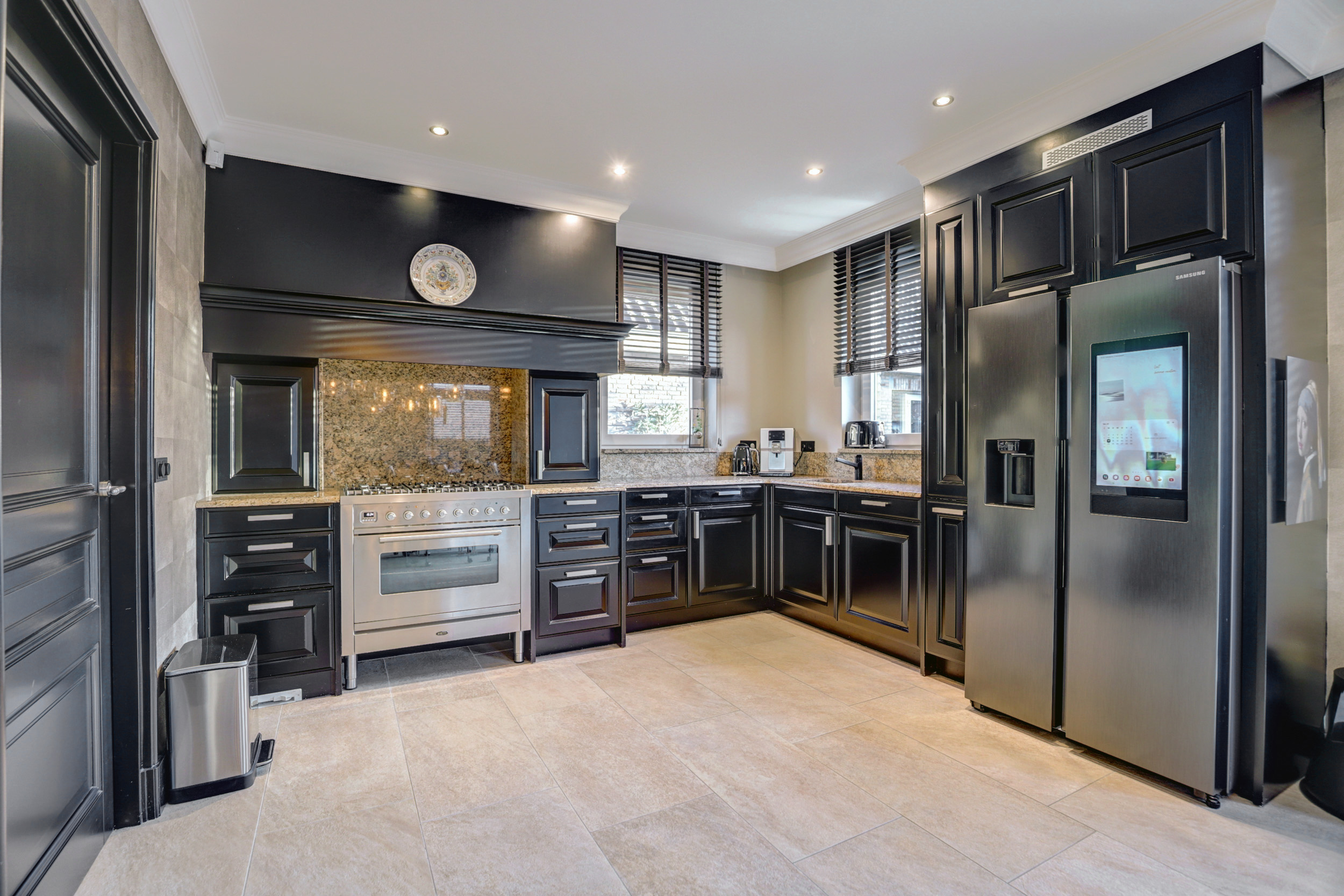 Ruime en lichte woonkamer met openslaande tuindeuren, airco en erker. De ruime luxe open keuken in landelijk chique stijl, met hardstenen werkblad en inbouwapparatuur; Boretti fornuis met oven, grote Amerikaanse koelkast met ijsdispenser en een Bosch vaatwasser. De bijkeuken met wasmachine- en wasdrogeraansluiting en inbouw magnetron/stoomoven in maatwerkkast, achterdeur en toegang tot souterrain. De gehele begane grond is voorzien van tegelvloer met vloerverwarming.