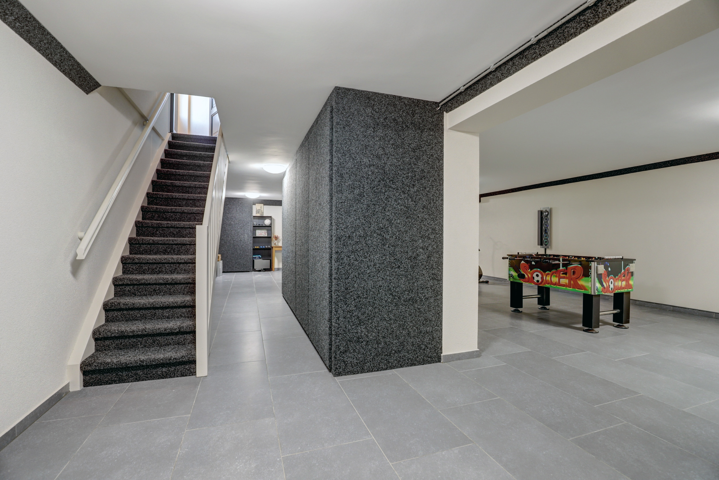 Hoogwaardig afgewerkt souterrain met vloerverwarming, technische ruimte; 2 warmtepompen, 400L boiler, omvormer met thuisaccu/batterij voor energieopslag (20kWh) en een centraal stofzuigsysteem.