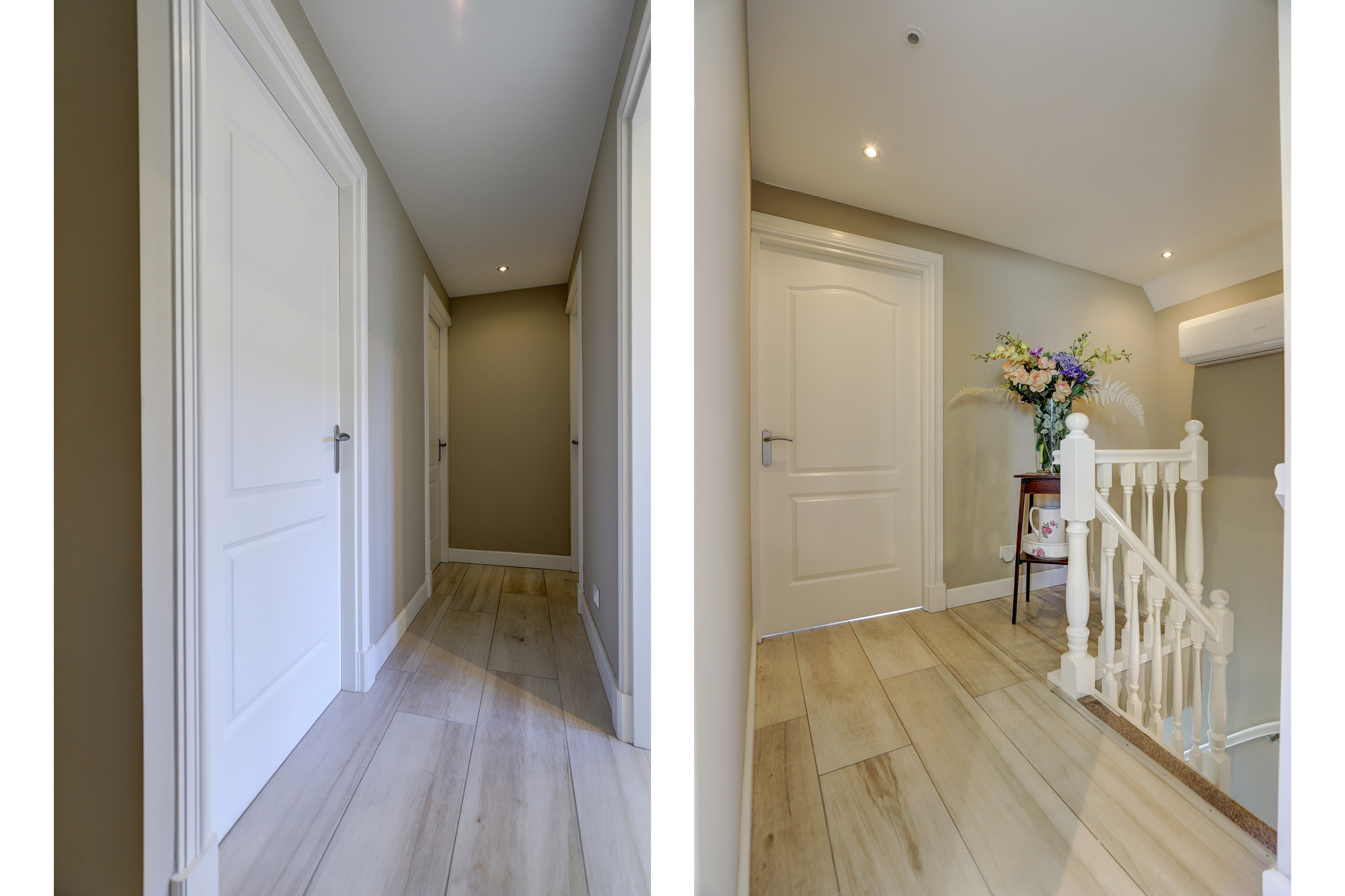 Vaste trap, overloop met automatisch geschakelde inbouwspots, volop bergruimte en aparte slaapkamer. Deze 2e verdieping is voorzien van laminaatvloeren en beschikt over een airco.