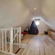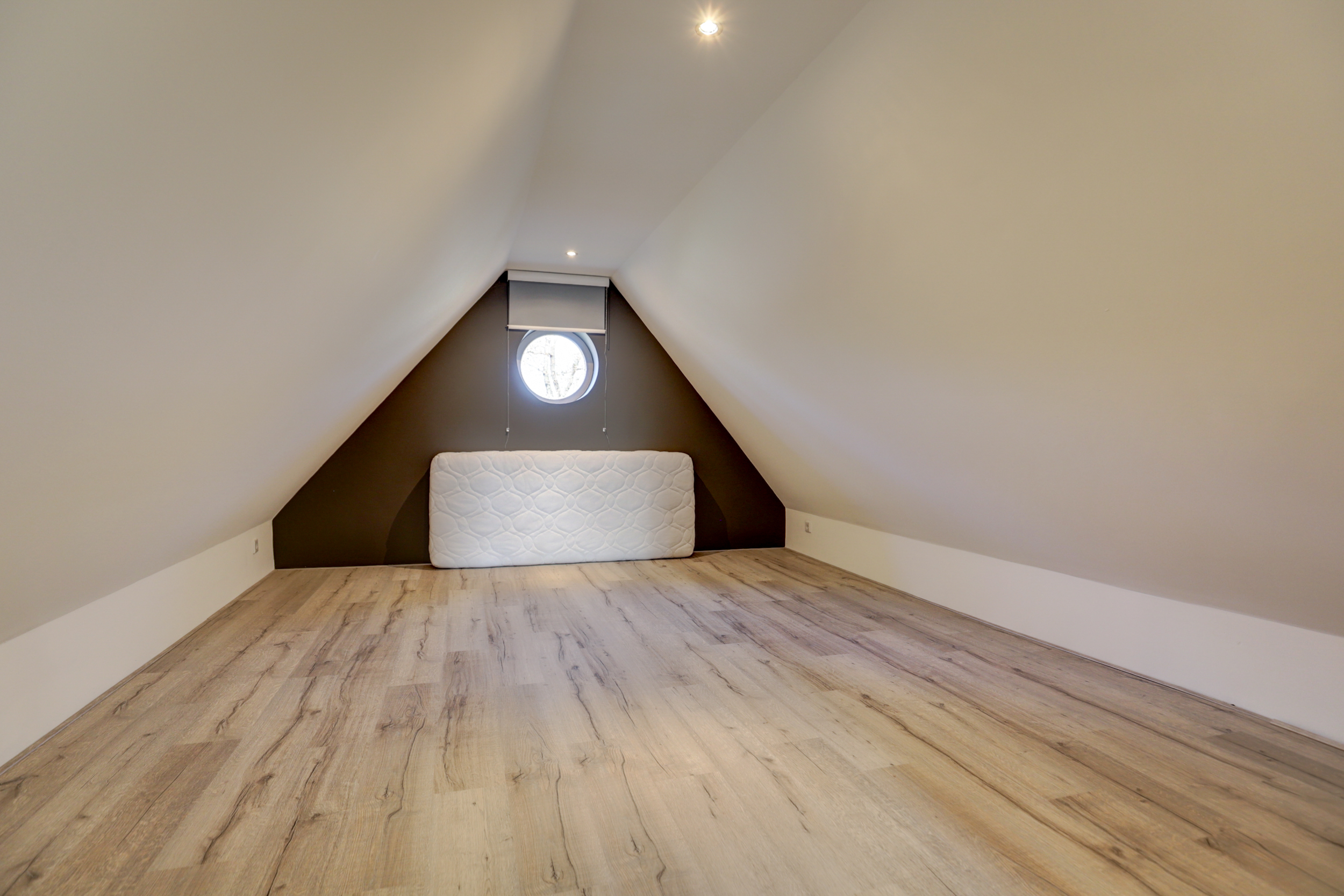 Mooie open ruimte van ca. 50m² momenteel in gebruik als gym en hobbyruimte. Dankzij 3 koekoek ramen is er voldoende daglicht en natuurlijke ventilatie.