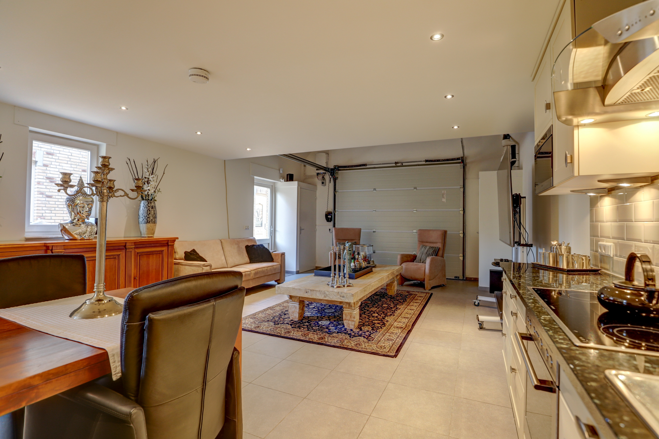 Royaal en luxe bijgebouw (ca. 77m²) met aparte woonruimte voorzien van woonkamer, keuken met complete opstelling en inbouwapparatuur, slaapkamer (21m²) en badkamer met inloopdouche, toilet en dubbele wastafel. Voor deze volledig geïsoleerde 2e woonruimte behoort dubbele bewoning zeker tot de mogelijkheden. Beschikt over zelfstandige voorzieningen met vloerverwarming, ATAG Cv ketel en eigen meterkast. Zeer ruime zolderverdieping (ca. 40 m²).