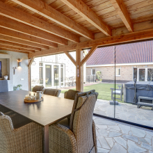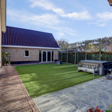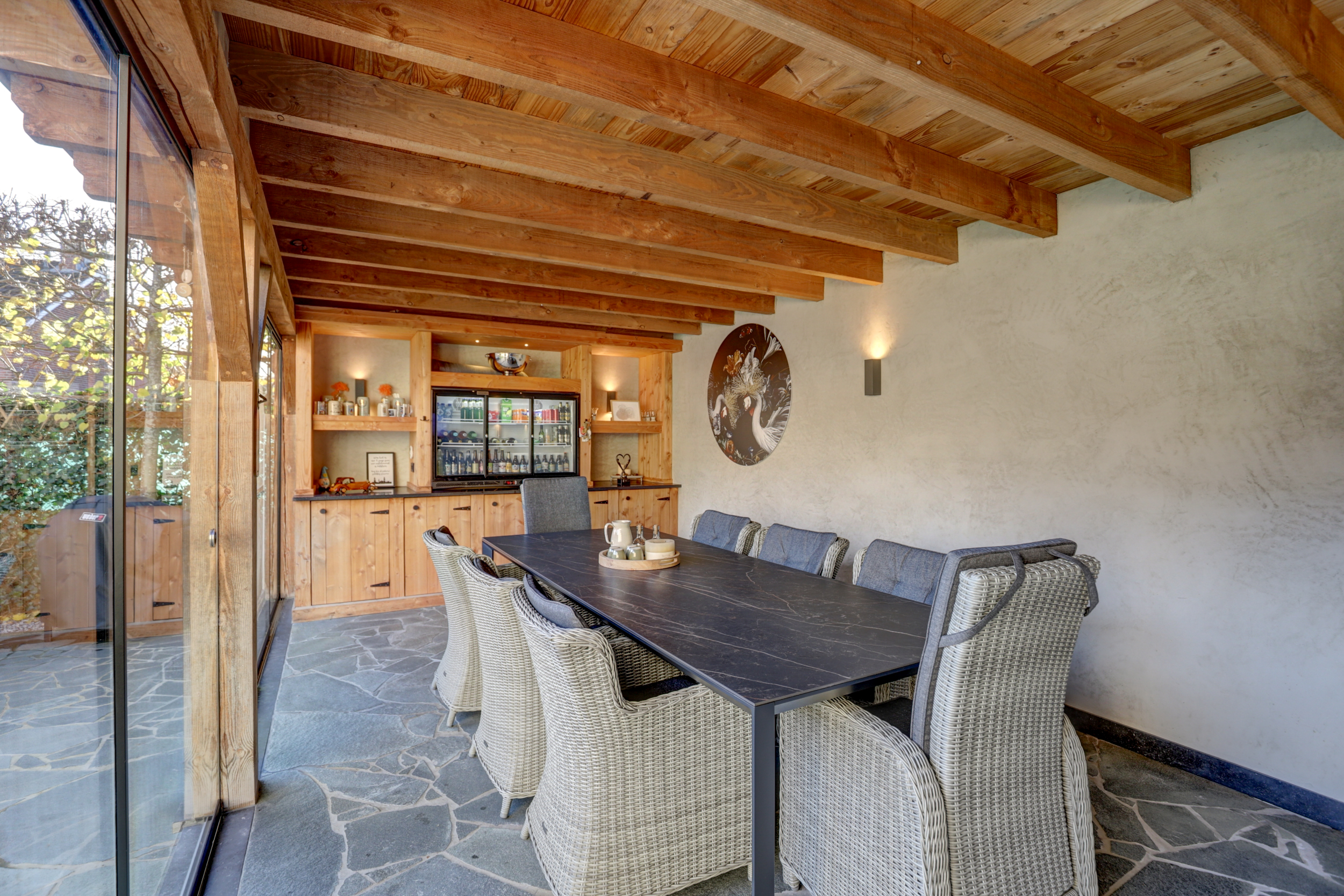 De op het zuiden gelegen achtertuin is voorzien van een natuurstenen terras, een stenen berging met aparte groepenkast, een tuinkamer met glazen schuifwanden, ingebouwde bar met drankenkoelkast. Daikin airco (2025), TV en internetaansluiting. Kortom hier is het jaarrond heerlijk vertoeven!