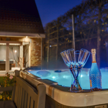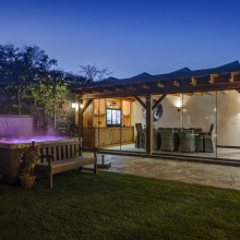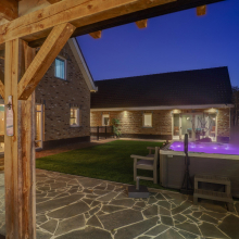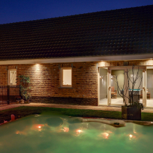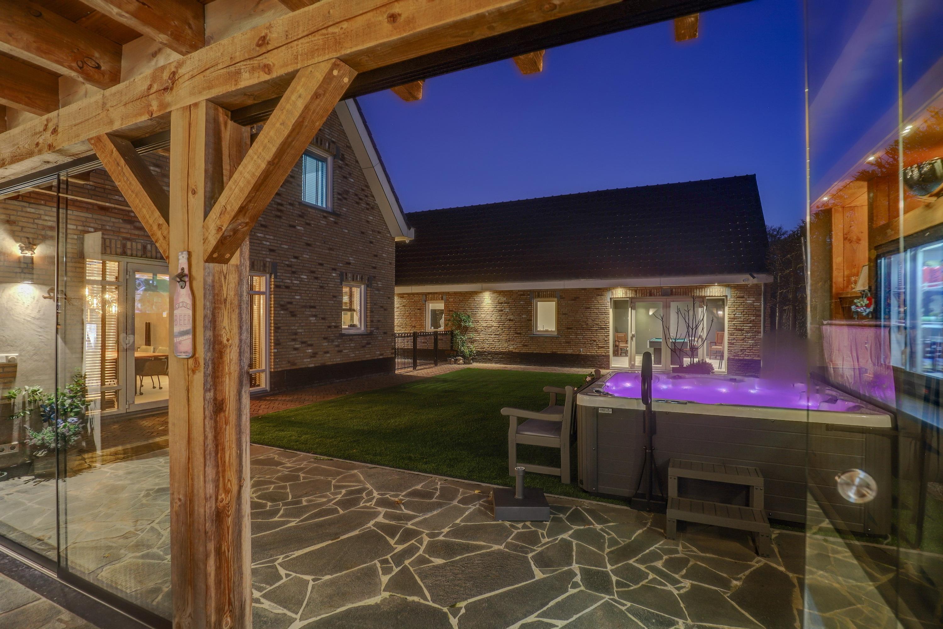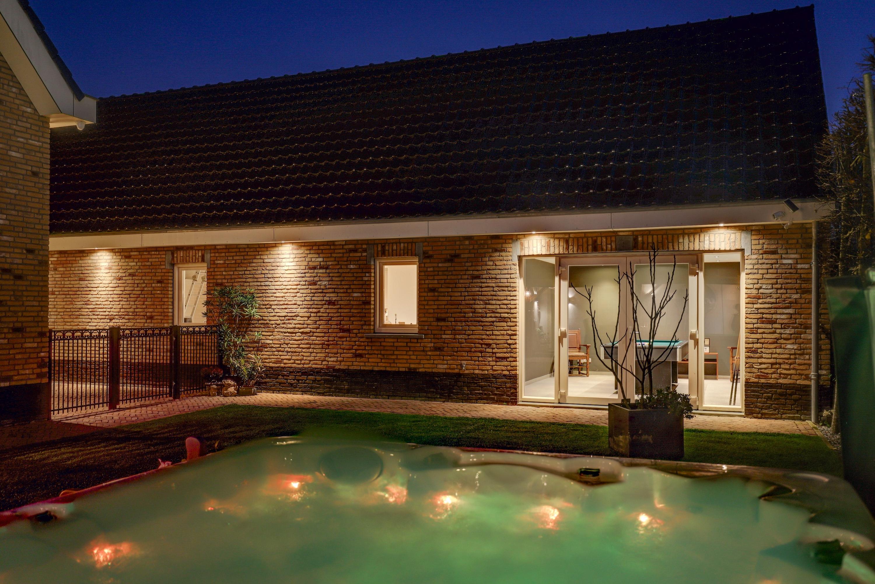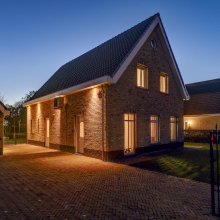 Overal is tuin- en gevelverlichting aangelegd. Prachtig geheel, zie de avondfoto’s!