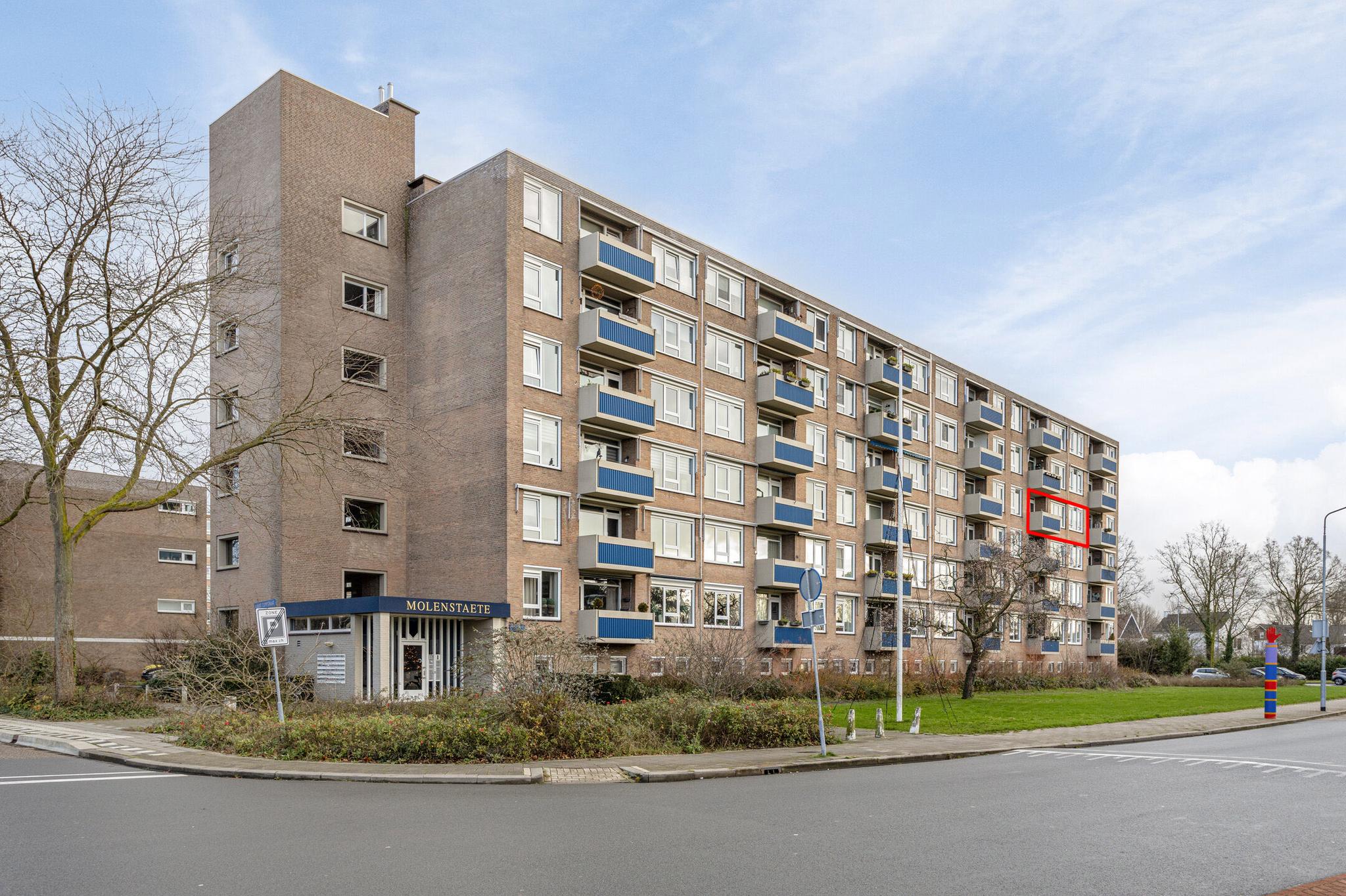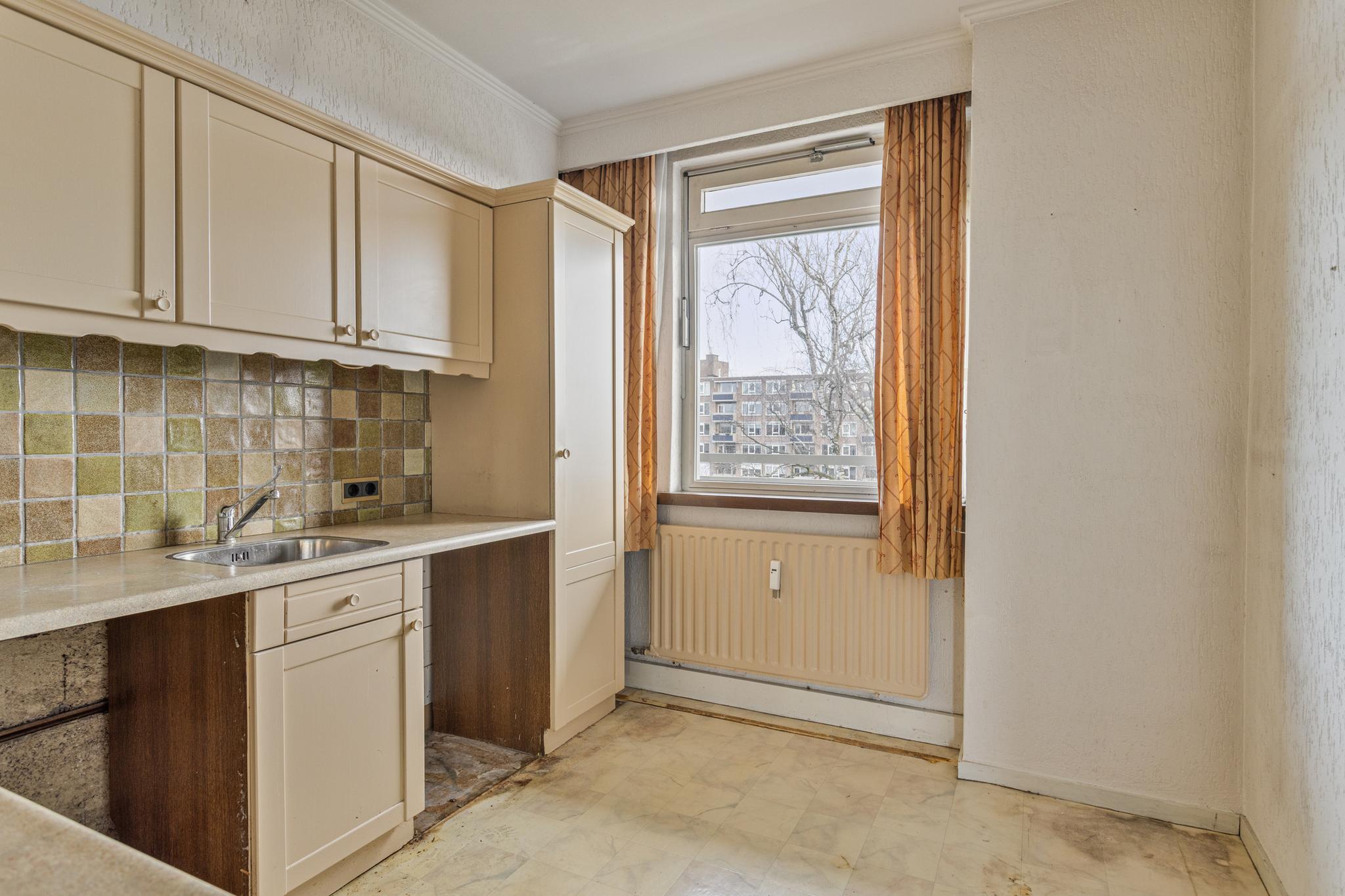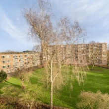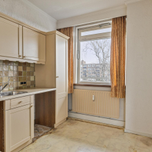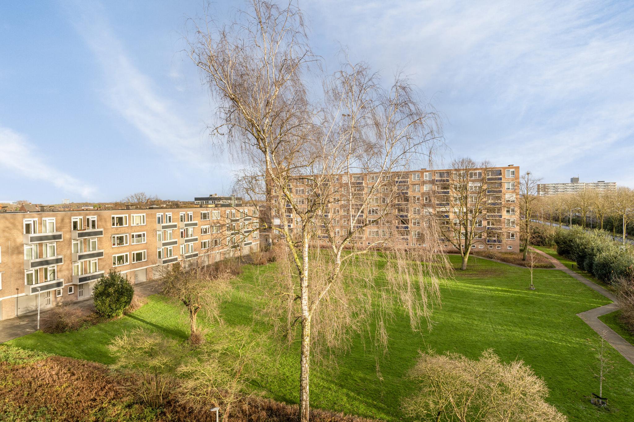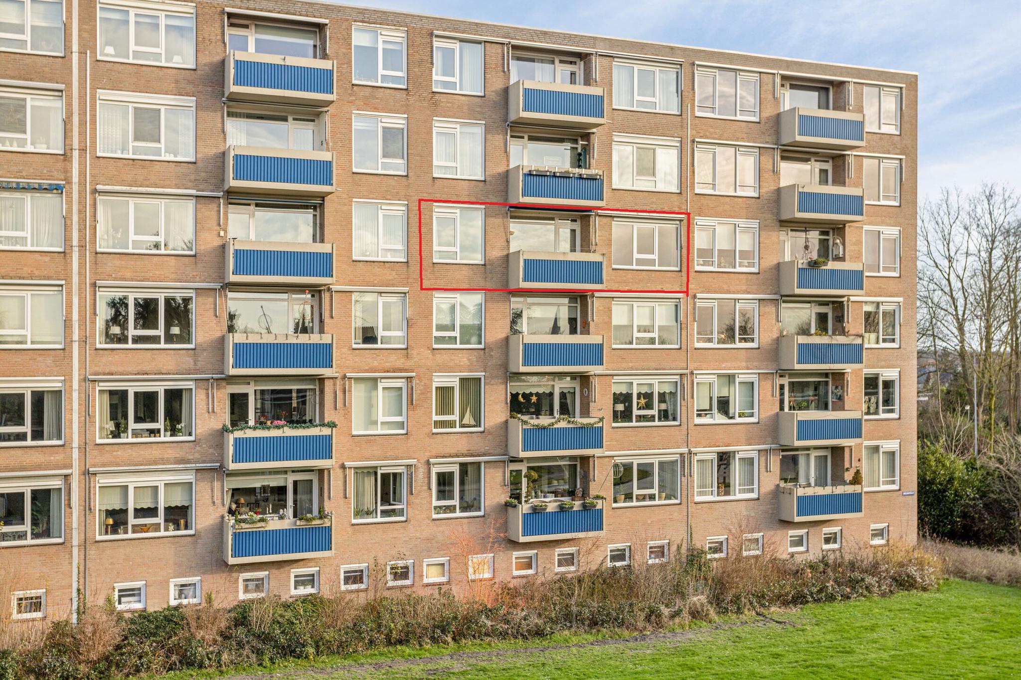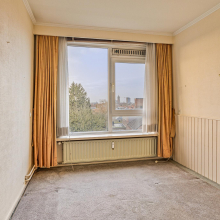 Zeer ruim 4-kamer appartement met fantastisch uitzicht en is gelegen op 4e verdieping. O.a. ruime lichte woonkamer ca. 36 m² met balkon (zonzijde) en mooie parketvloer, 3 slaapkamers, gesloten keuken. Privé fietsenberging in de onderbouw. Het geheel is netjes maar gedateerd. Dit appartement ligt in een appartementengebouw voorzien van lift en gesloten entree met intercom.Souterrain: