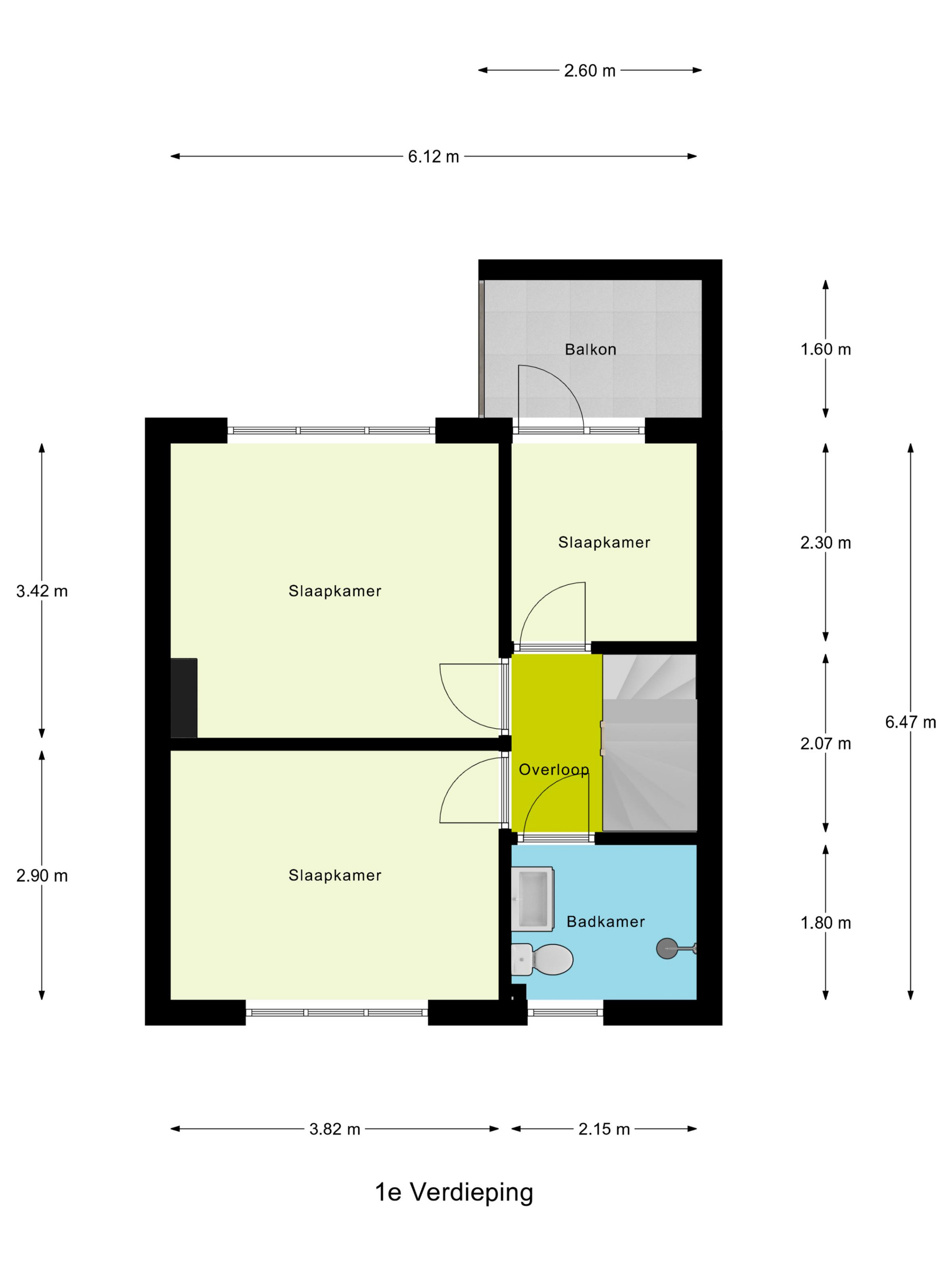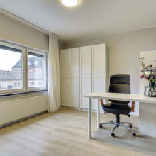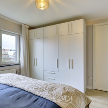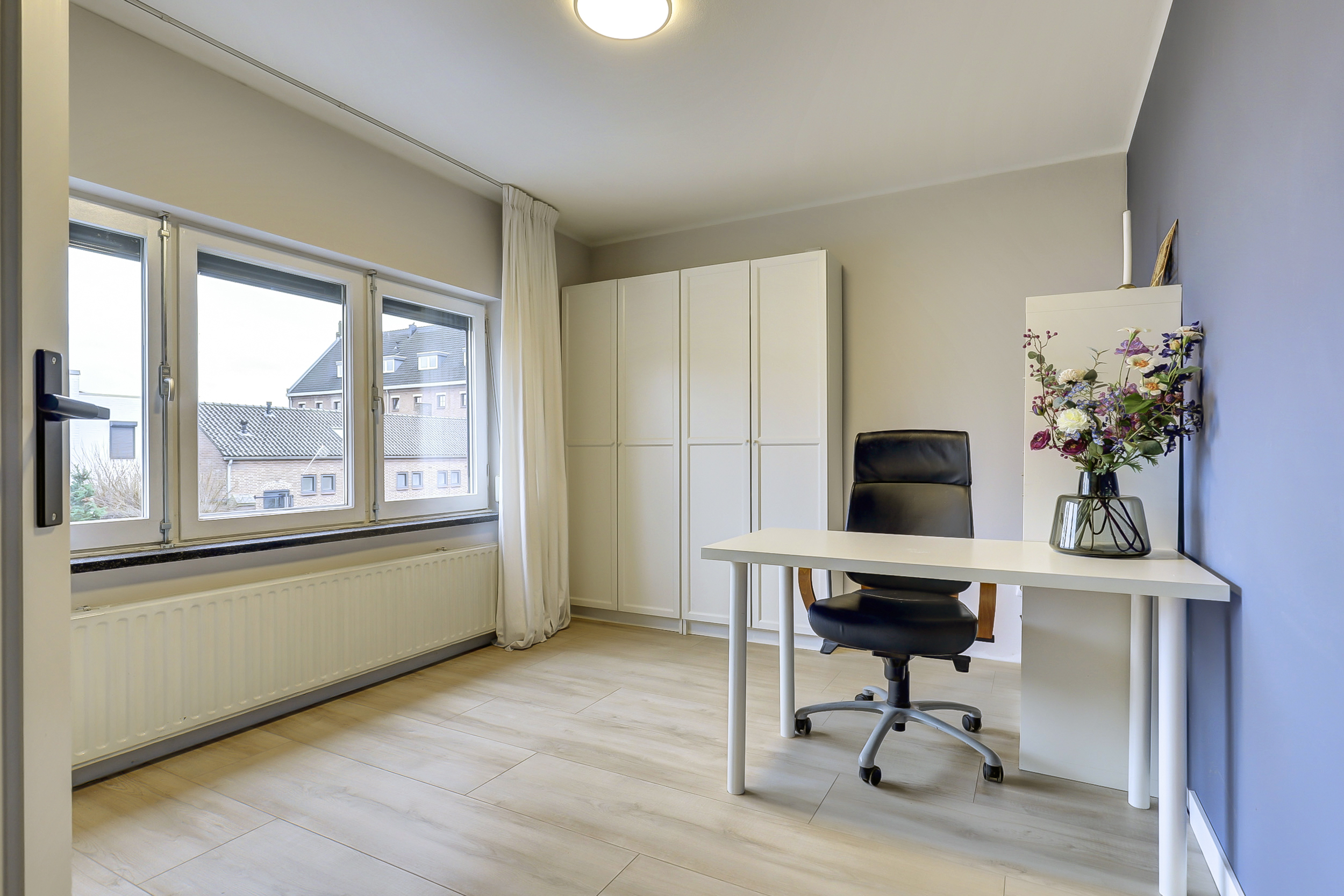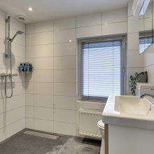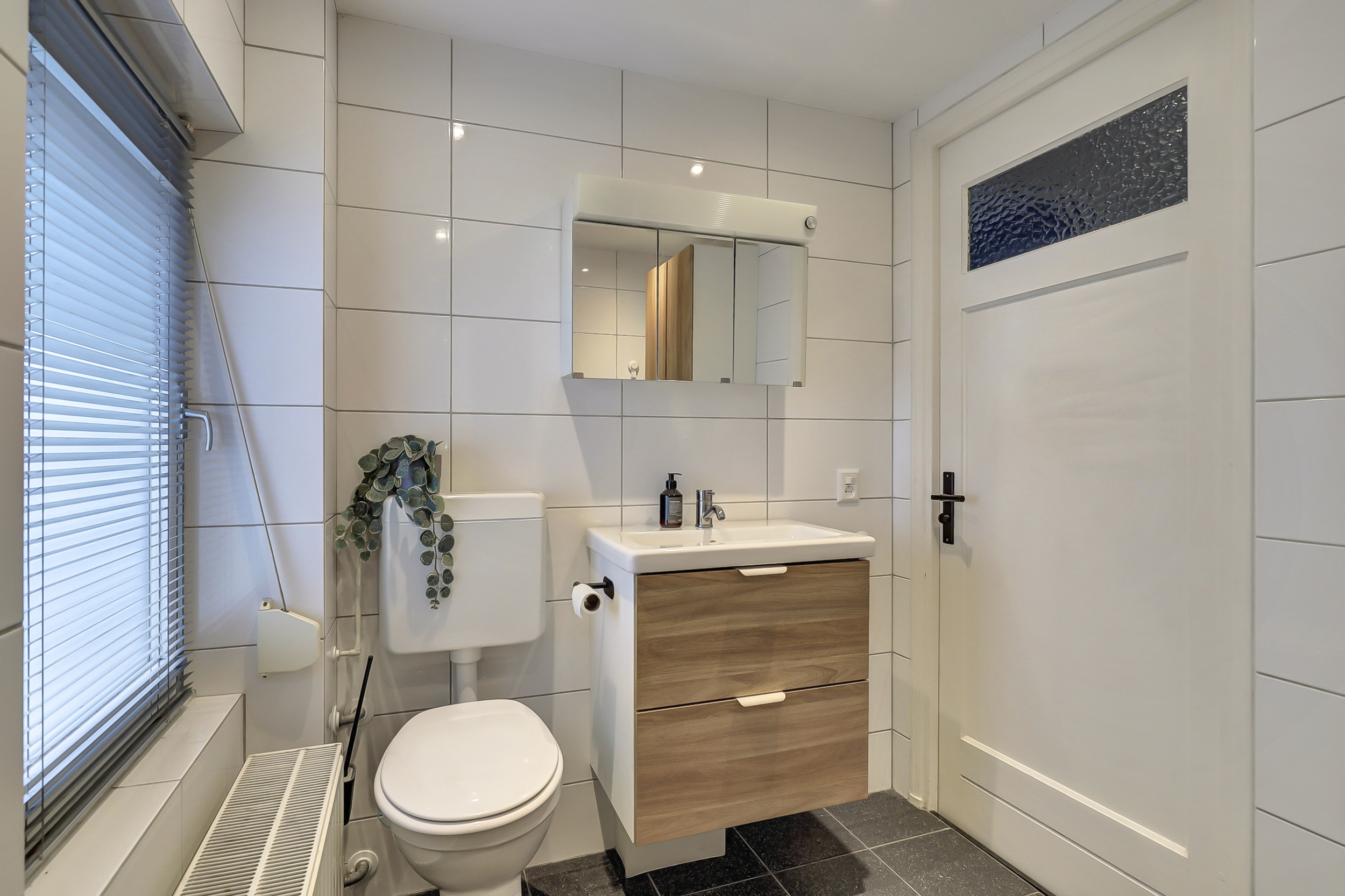 Overloop, 3 slaapkamers, balkon. Badkamer met inloopdouche, wastafel met meubel en toilet. Deze verdieping is voorzien van een mooie laminaatvloer.