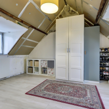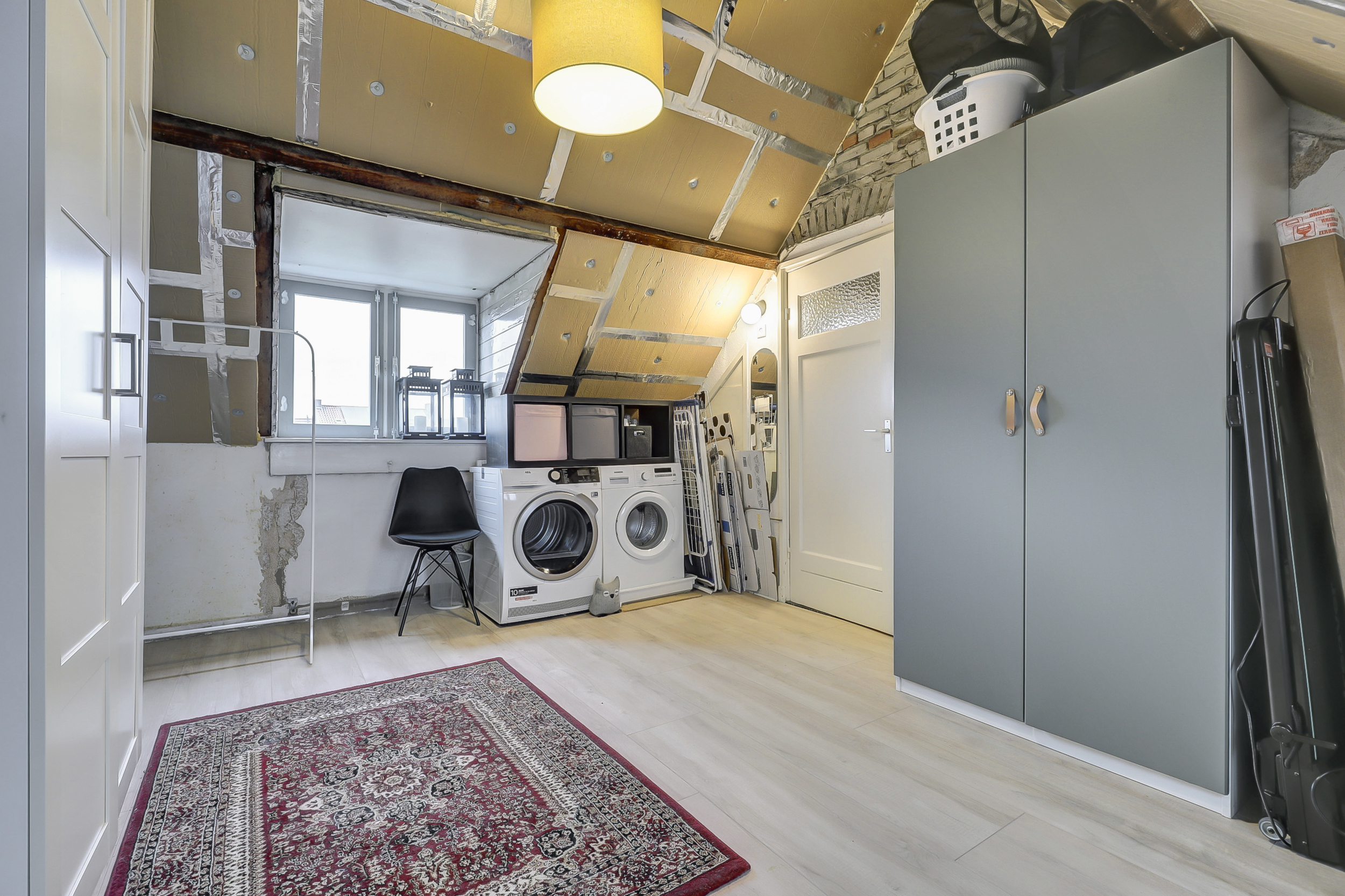 Via vaste trap bereikbaar. Overloop, 2 bergingen, Cv-ketel HR Nefit combi, zolderkamer (nog af te werken) met 2 dakkapellen. Het dak is geïsoleerd. Op de zolder is een tweede aansluiting voor wasmachine aanwezig.