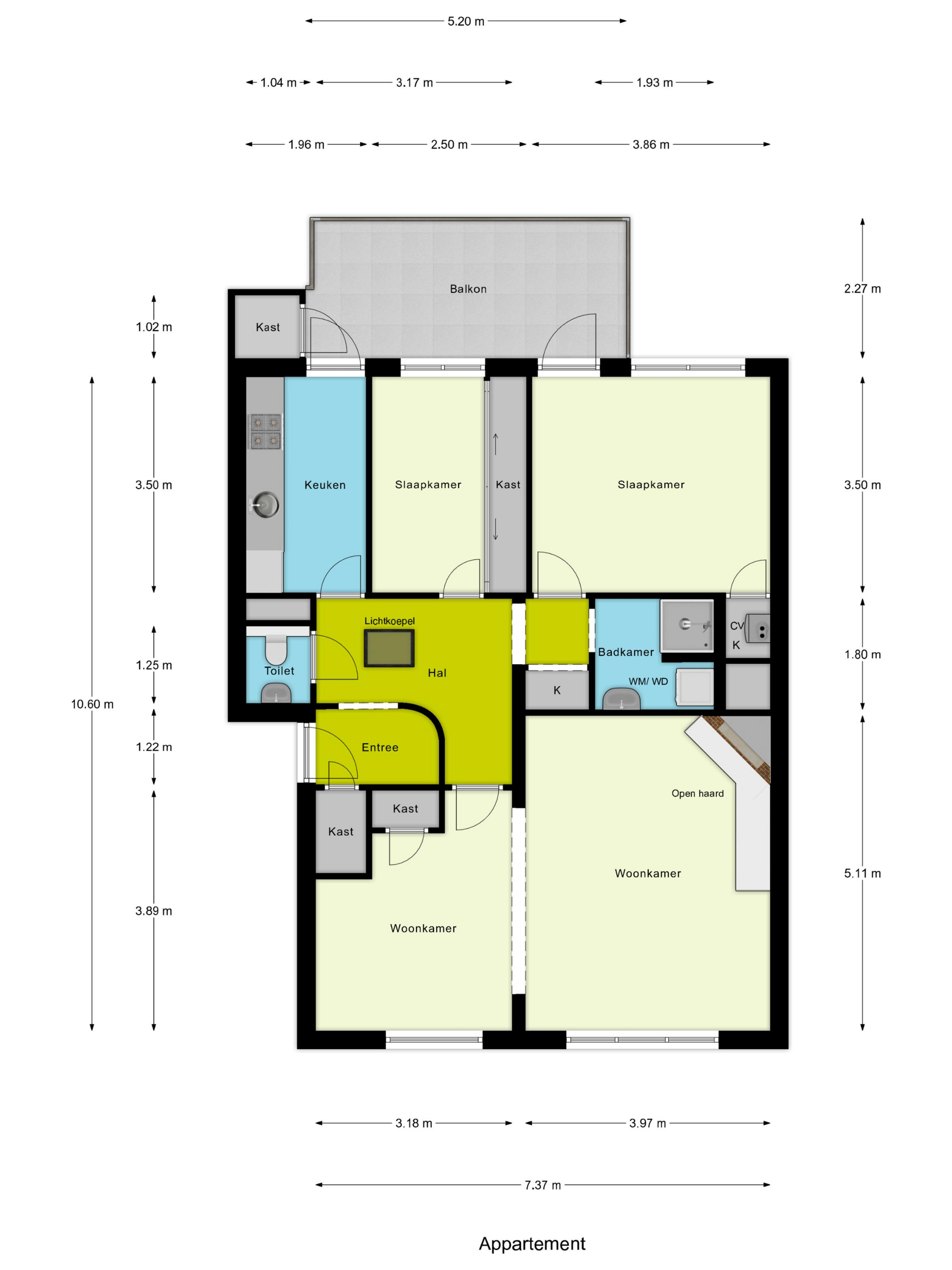 Het gehele appartement is voorzien van keurige lichte laminaatvloer.