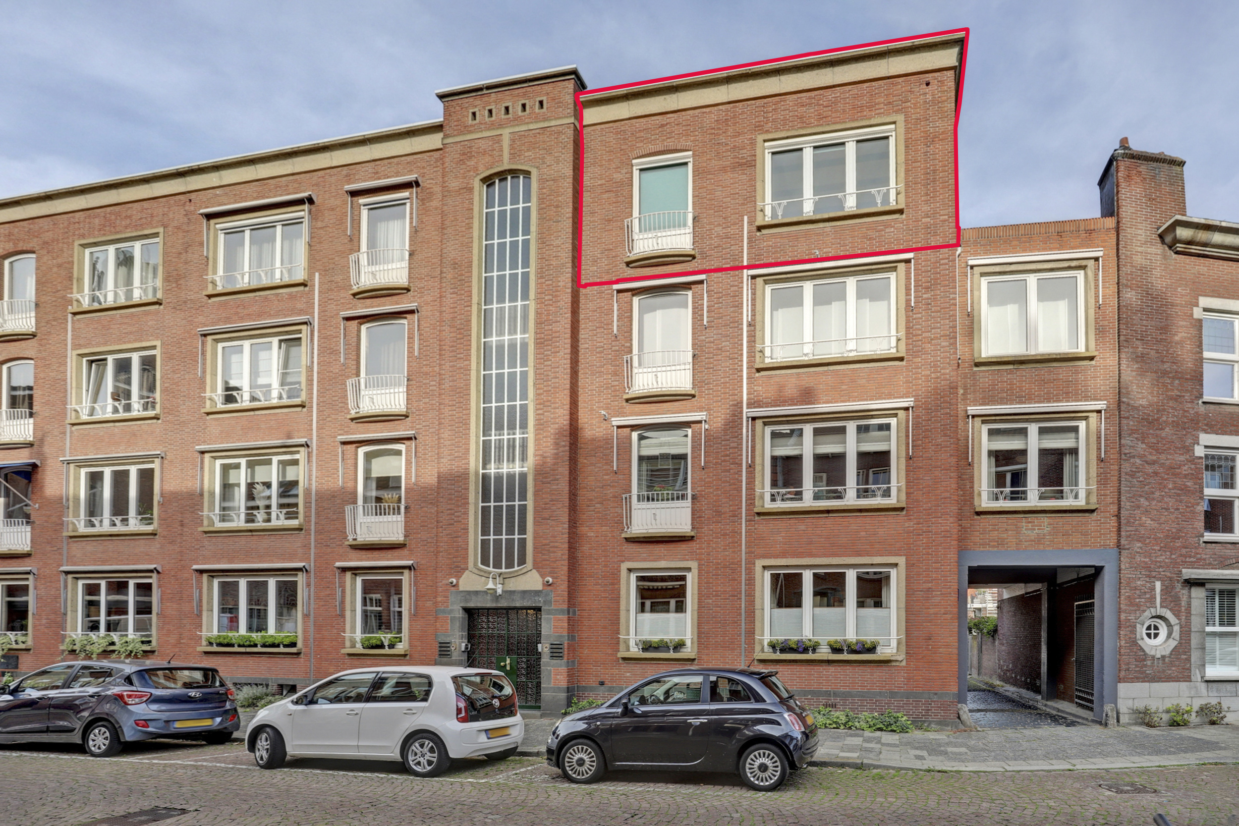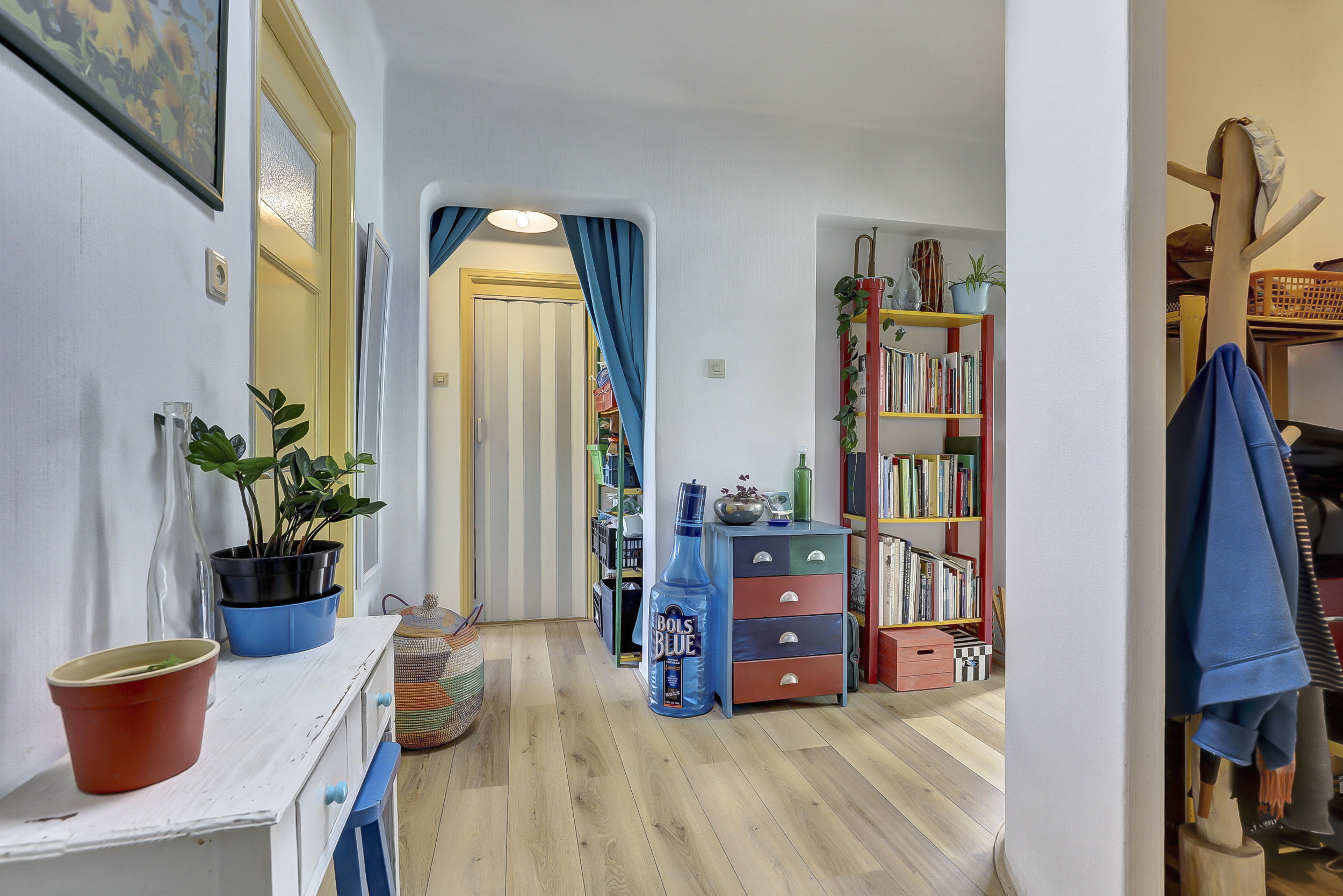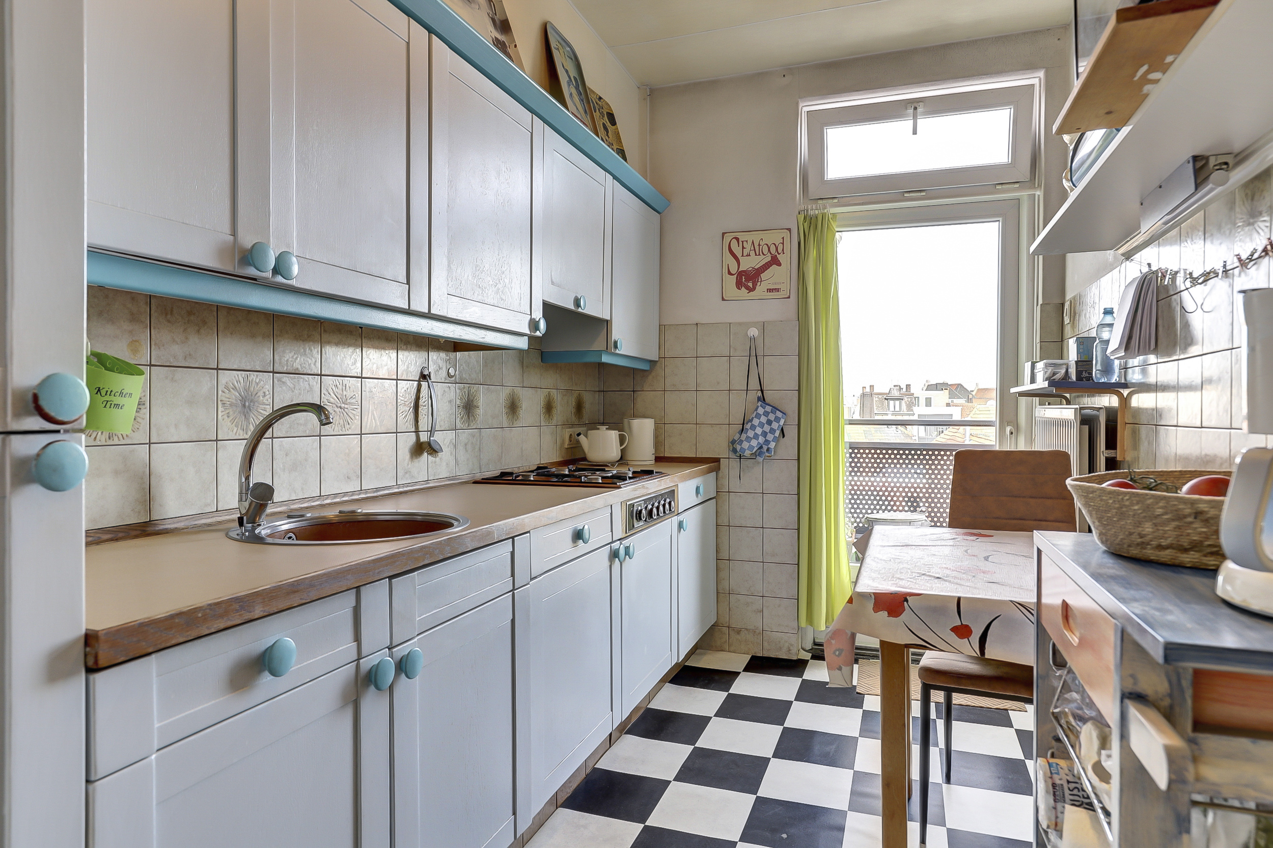 Ruim en licht hoekappartement op de 4e verdieping met 2 slaapkamers en ruim balkon op het westen (ca. 12m²). Prachtige entree, portiek en trappenhuis met postkasten en bellentableau. Fijne woning in de...