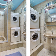 Via de hal te bereiken 2 slaapkamers (ca. 14 en 9m²) waarvan de grote slaapkamer met loopdeur naar het balkon en schuifwandkast op de kleinere slaapkamer. Aparte Cv-kast (HR cv-ketel Intergas, 2011, eigendom). De badkamer is voorzien van eenvoudige opstelling met douche, wastafel en wasmachine aansluiting.