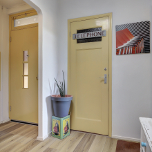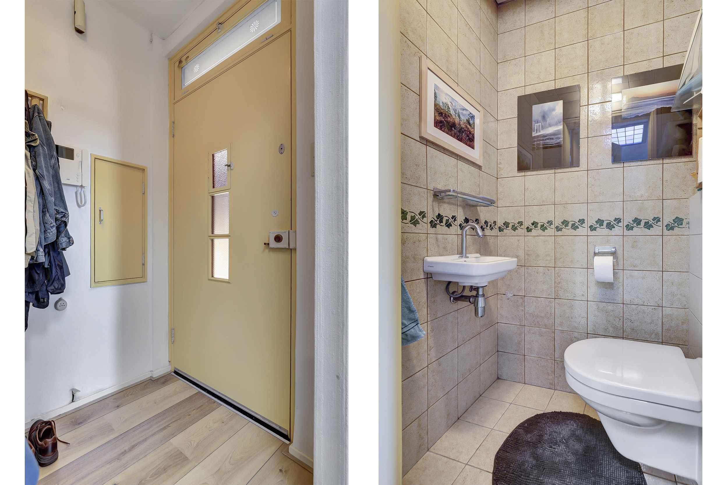 Entree, hal, bergkast, fraaie lichtkoepel, apart toilet met fonteintje.